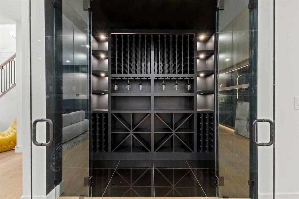The fully developed lower level features a spacious rec room, custom wet bar with quartz counters and island, built-in cabinetry, beverage fridge, and a walk-in wine room. A dedicated gym or flex space, an additional bedroom, and a full bathroom complete this level. Two furnaces provide efficient climate control for both upper levels and basement.