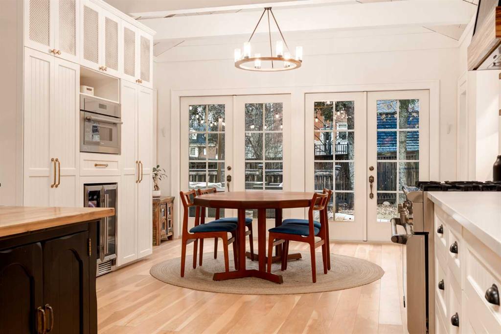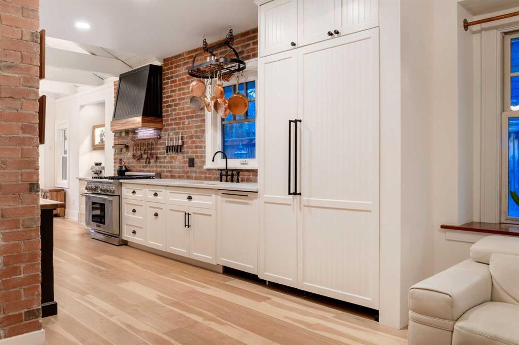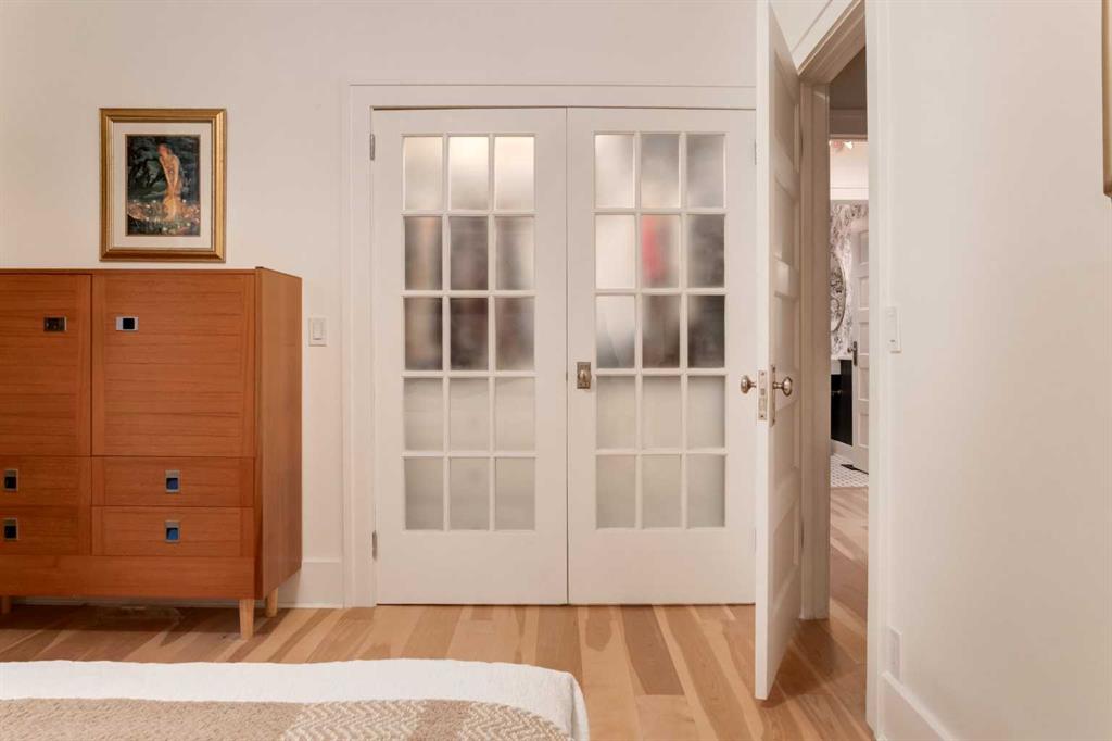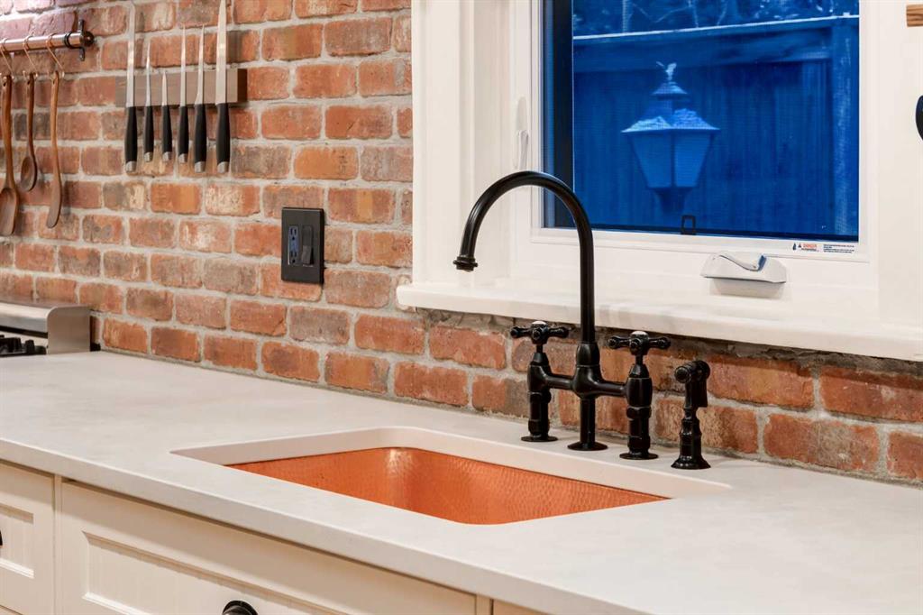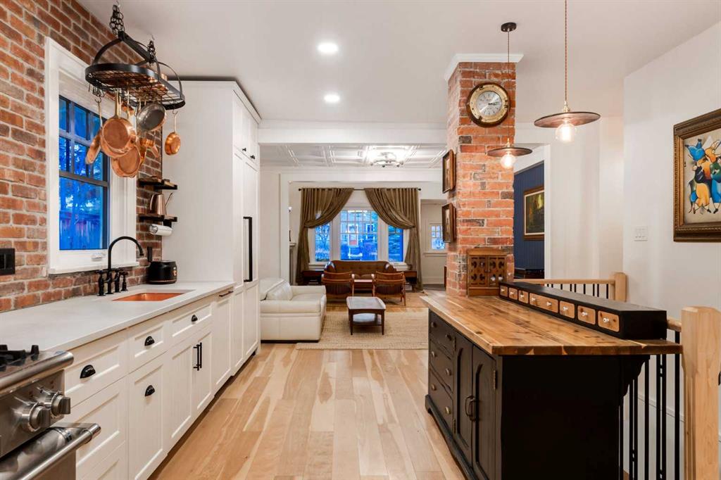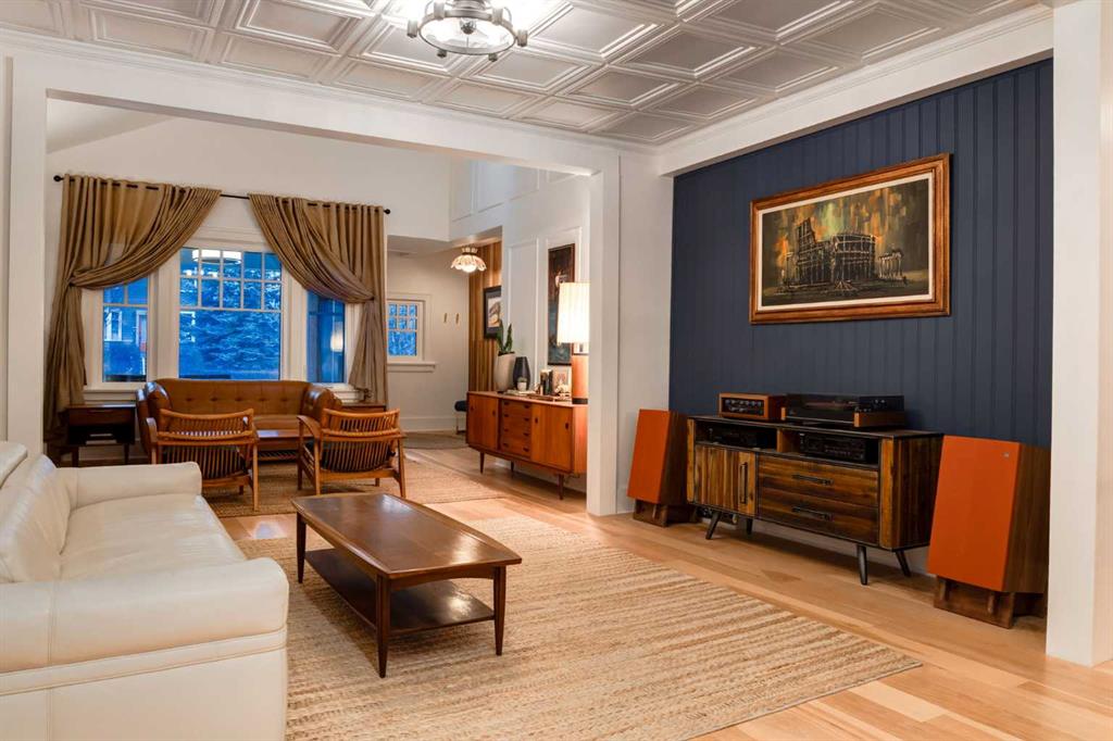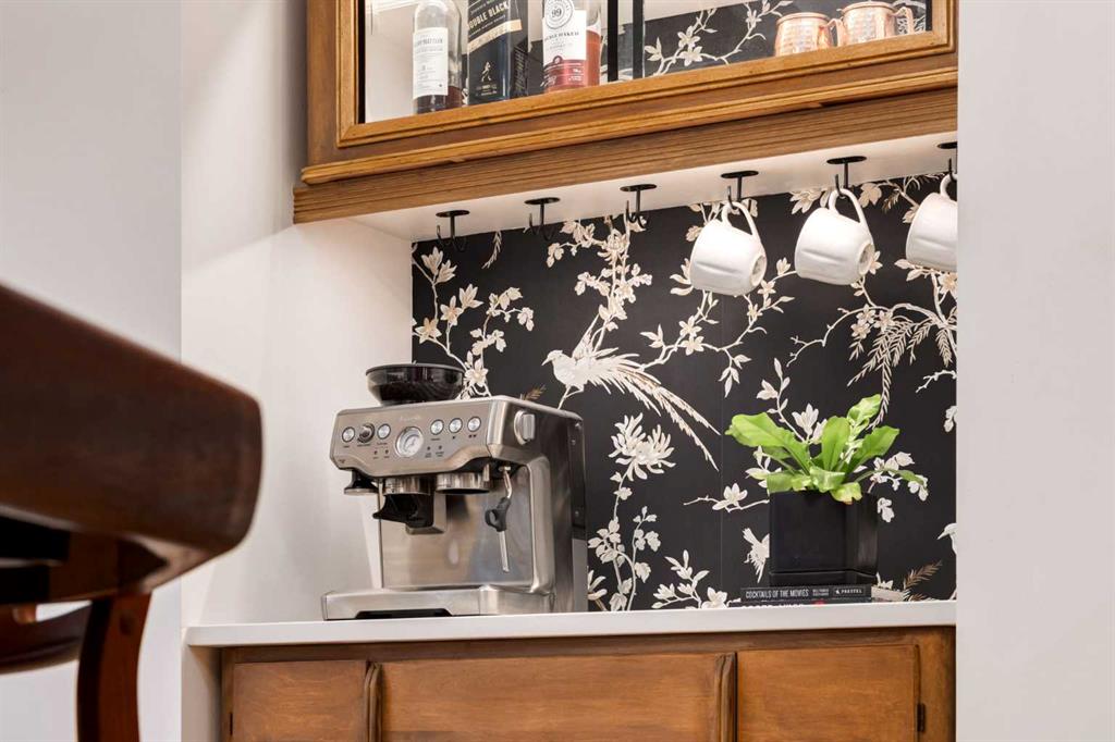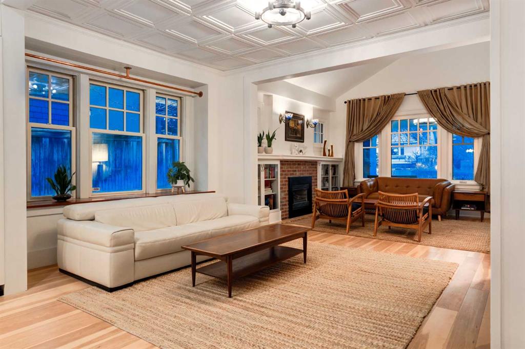 Set in Upper Mount Royal, this beautifully renewed Craftsman home offers an exceptional blend of architectural charm, bespoke finishes, and modern, high-performance upgrades. Surrounded by mature trees and framed by artful landscaping, the property rests on a quiet, private street just a short walk from 17th Avenue, yet feels worlds away in its tranquility. A covered front porch welcomes you into a residence defined by warmth and craftsmanship. The front gardens are meticulously designed with rock wall detailing, perennial plantings, and carefully placed rock borders with new sod installed in 2023. Established species anchor the outdoor spaces with year-round texture and colour, all maintained by a five-zone sprinkler system. At the rear of the home, double French doors open onto an expansive wraparound deck - a series of outdoor living and dining spaces that celebrate the home’s connection to nature. Inside, the residence unfolds with a curated blend of original detail and modern sophistication. Engineered hardwood floors span the main and upper levels, while custom wallpaper, stained glass sconces, coffered ceilings, vaulted ceilings—including one with a skylight—and built-in shelving create an atmosphere of timeless charm. The original brick chimney remains a focal point, preserving the home’s architectural story. The kitchen is both beautifully crafted and superbly equipped. Custom wood and beadboard cabinetry, Caesarstone countertops, and a brick backsplash are paired with a suite of premium appliances and a custom hood venting system. Details such as the copper sink, overhead potholder, and a dedicated coffee and scotch bar elevate both daily living and entertaining. The home’s bathrooms carry the same blend of history and refinement. The main bath features a classic clawfoot tub, while the primary ensuite is a true retreat, complete with a custom antique double vanity topped with hardwood counters, an oversized glass shower with gold-finished rain and hand-held fixtures, heated floors, and the original butler’s door connecting directly to the walk-in closet. The lower level offers extensive storage and a hidden room that lends itself beautifully to your own private “speakeasy”, music room, cigar and scotch lounge, or personal retreat. A new asphalt roof was installed in 2023, and a 21-panel, 8.91-kilowatt solar array added in 2025. Nearly all windows and the rear doors have been upgraded to Lux units, complemented by JELD-WEN windows in select spaces. The electrical service was upgraded to 200 amps in 2023, the furnace control board was replaced in 2024, and on-demand hot water is installed. The heated, oversized double attached garage offers exceptional utility with direct access to the home, easily accommodating two vehicles with extra space for other “toys”. This Upper Mount Royal residence embodies luxury in its truest form—not through excess, but through craftsmanship, character, and an enduring connection to place.
