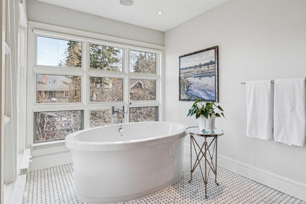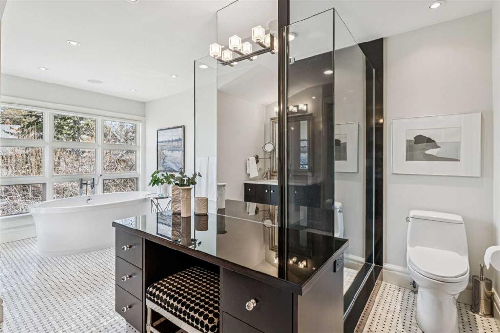 Discretely built into a Mount Royal hillside, this property is a jewel for those seeking a distinguished residence in an established neighbourhood.. The home was rebuilt to the highest standard using best quality finishing materials. . Interior design by Paul Levoie showcases outstanding features including Hidden Cabinetry, Distinctive Lighting, Interesting Fireplace Surrounds and Vaulted Ceilings.. The décor is a curated blend of Contemporary and Traditional elements with a design is Enduring and Timeless. . . The Main Level presents a 2 Story Foyer with a Gorgeous Chandelier, Open Plan Living/Dining Area, Kitchen with Top of Line Appliances, Sun filled Breakfast Nook over viewing the Garden, Full Bath and 2 Bedrooms. .( one bedroom is used as an office). A Cozy Den with Gas Fireplace complete this level. . .The Upper Level is devoted to the Primary Oasis, offering a spacious Bedroom, 2 Walk-In Closets and the most Amazing Ensuite: A true Luxury Spa with In-Floor Heat, Twin Vanities, Dressing Table, Glass Shower and a Free Standing Soaker Tub with Views that embrace Tree Tops and the City Center. . . The Lower Walk-Out Level provides great extra spaces: Access to the attached Heated Tandem 2 Car Garage, Media Room with Fitness Area, 4th Bedroom, Full Bath and Laundry. .Heated Floors are controlled by 4 separate zones. . .and lastly: Glass Doors that give way to the most Beautifully Landscaped Private Retreat: a Garden accentuated with Mature Deciduous and Fruit Trees, a wide assortment of Perennial Plantings, Patio, Lush Lawn and a Pond! . Buddha resides in the pond and hopes to remain in his Peaceful Retreat. . Lightly lived in, this notable home is a MOVE IN READY OPPORTUNITY.