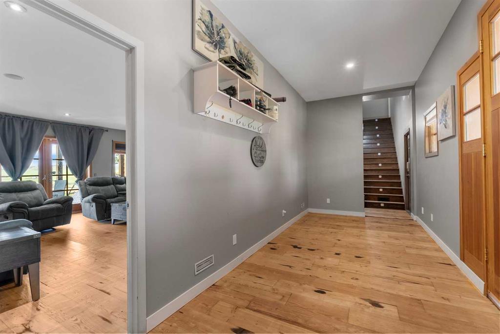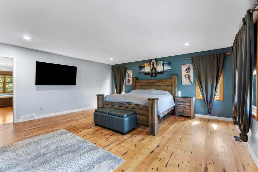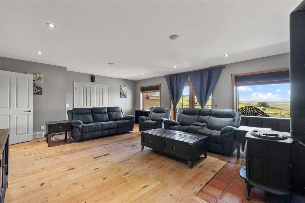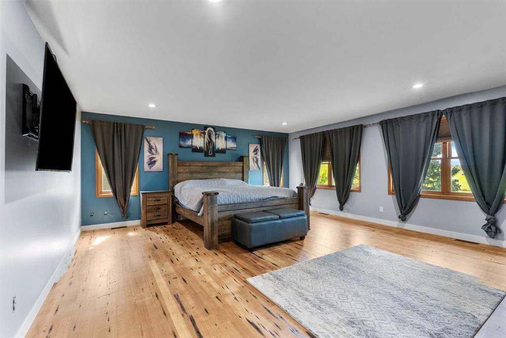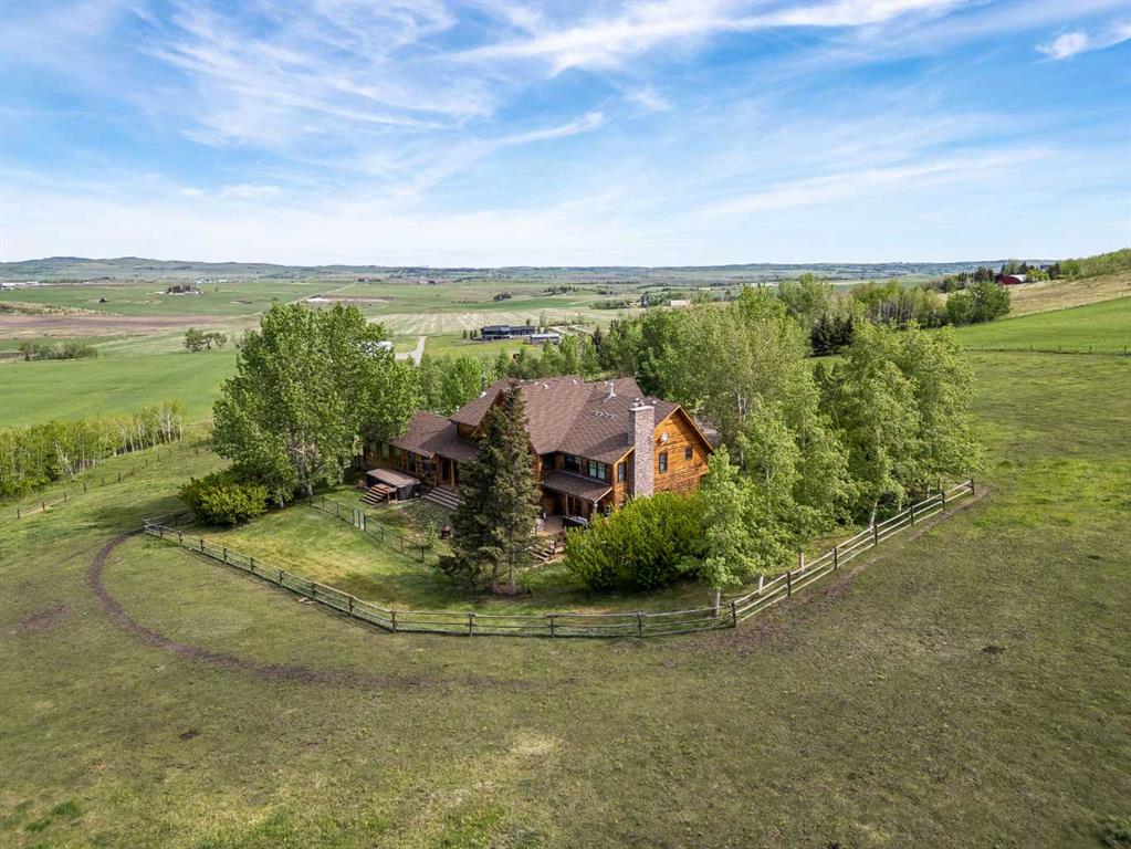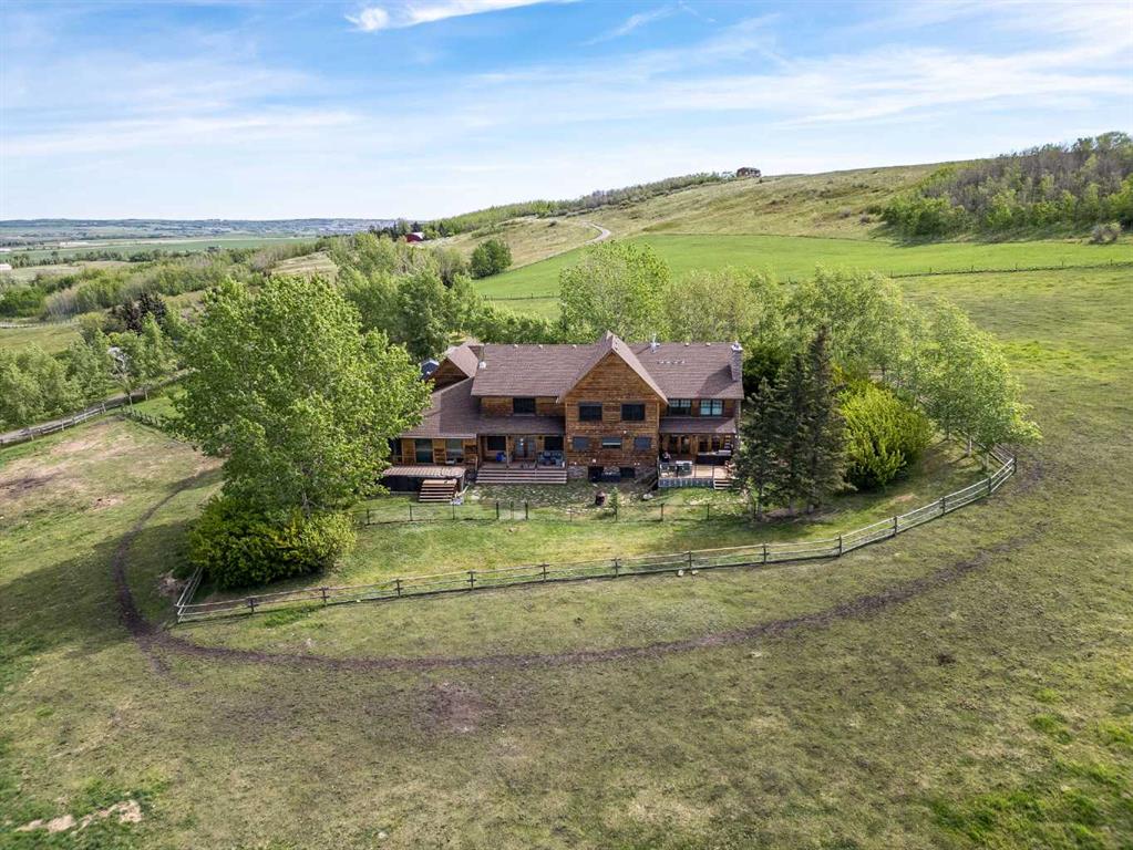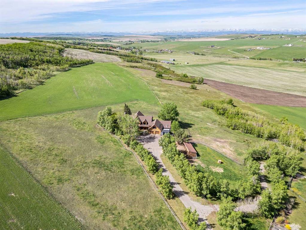 **OPEN HOUSE - SUN JAN 18th 1:00pm -4:00pm**. Discover the ultimate retreat at this secluded hilltop estate, boasting breathtaking mountain views and nestled on over 5 acres of lush land. YOU WILL NOT FIND A BETTER PRICE PER SQUARE FOOT HOME! This stunning cedar-wrapped residence features 8 spacious bedrooms and 8 bathrooms, offering nearly 8,200 square feet of beautifully developed space. Fully fenced and perfect for horses or family pets, this property provides ample room for a large family to thrive. Enjoy the serene surroundings, complete with mature trees and expansive views. The home includes two master bedrooms, a main floor bedroom, and a separate office space. A remarkable 1,363 square-foot recreation/flex room awaits, ideal for a dance or art studio, games room, or even converting back into an indoor pool. Step outside to unwind around the fire pit, take a dip in the new swim spa, or explore the picturesque walking and riding trails among the mature landscaping. With plenty of accommodations for out-of-town guests, including RV parking, this home is perfect for entertaining. Special features such as hand-scraped hardwood flooring throughout, granite countertops, upgraded appliances, a cozy wood-burning stove, and generously sized bedrooms and bathrooms enhance the appeal of this family haven. Conveniently located just a short 7-minute drive from Okotoks, this estate offers the perfect blend of privacy and accessibility.