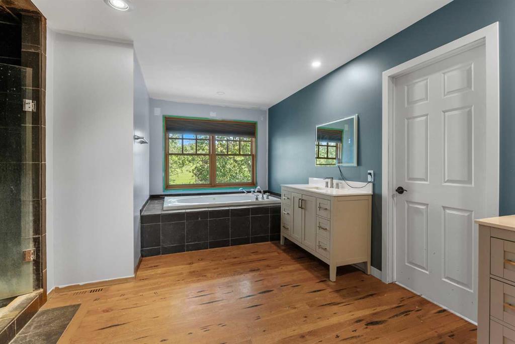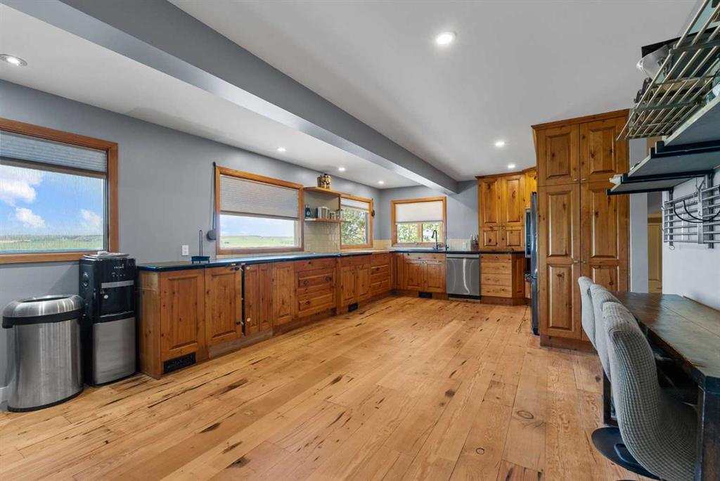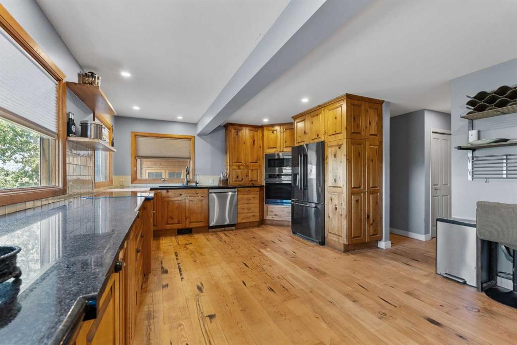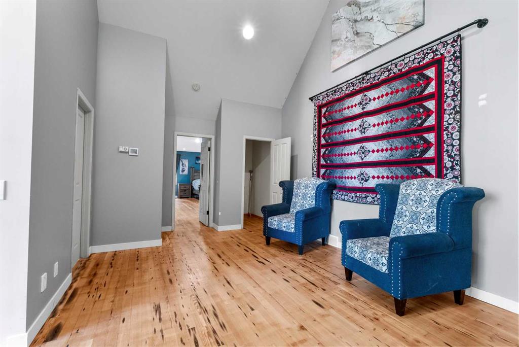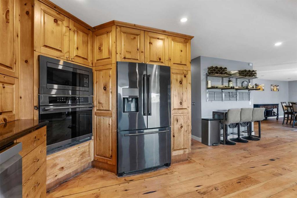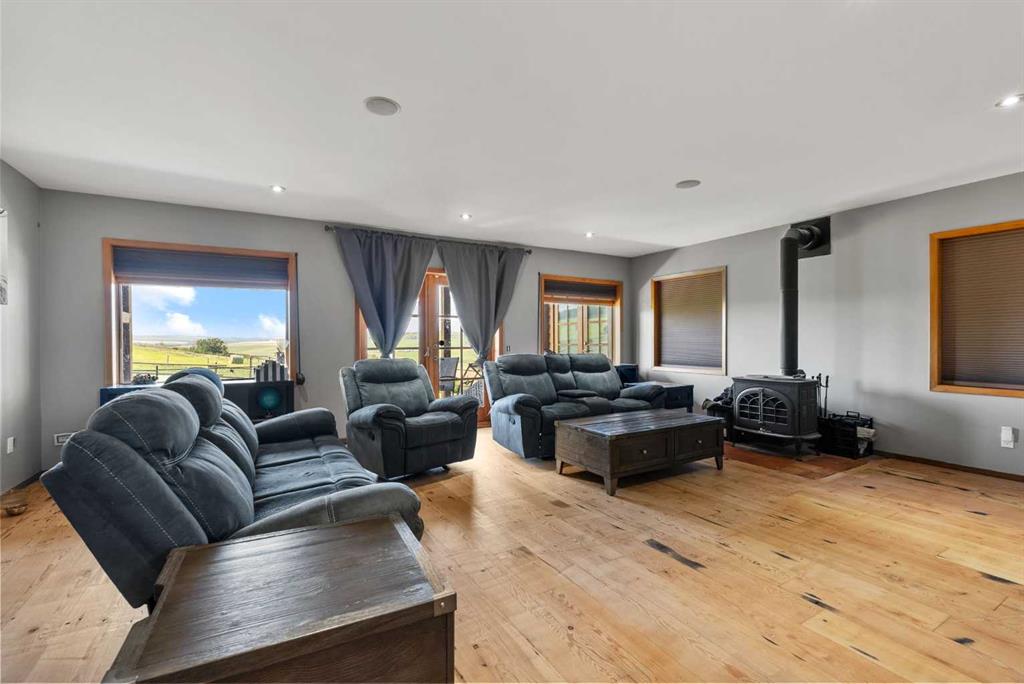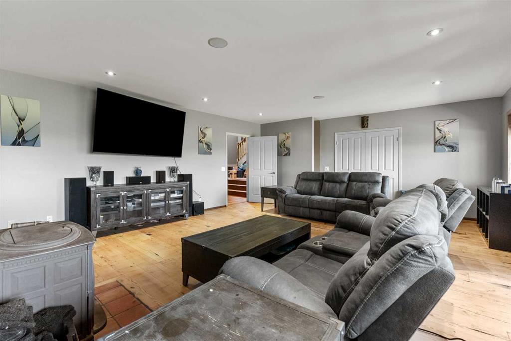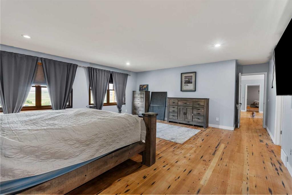 **OPEN HOUSE - SUN JAN 18th 1:00pm -4:00pm**. Discover the ultimate retreat at this secluded hilltop estate, boasting breathtaking mountain views and nestled on over 5 acres of lush land. YOU WILL NOT FIND A BETTER PRICE PER SQUARE FOOT HOME! This stunning cedar-wrapped residence features 8 spacious bedrooms and 8 bathrooms, offering nearly 8,200 square feet of beautifully developed space. Fully fenced and perfect for horses or family pets, this property provides ample room for a large family to thrive. Enjoy the serene surroundings, complete with mature trees and expansive views. The home includes two master bedrooms, a main floor bedroom, and a separate office space. A remarkable 1,363 square-foot recreation/flex room awaits, ideal for a dance or art studio, games room, or even converting back into an indoor pool. Step outside to unwind around the fire pit, take a dip in the new swim spa, or explore the picturesque walking and riding trails among the mature landscaping. With plenty of accommodations for out-of-town guests, including RV parking, this home is perfect for entertaining. Special features such as hand-scraped hardwood flooring throughout, granite countertops, upgraded appliances, a cozy wood-burning stove, and generously sized bedrooms and bathrooms enhance the appeal of this family haven. Conveniently located just a short 7-minute drive from Okotoks, this estate offers the perfect blend of privacy and accessibility.