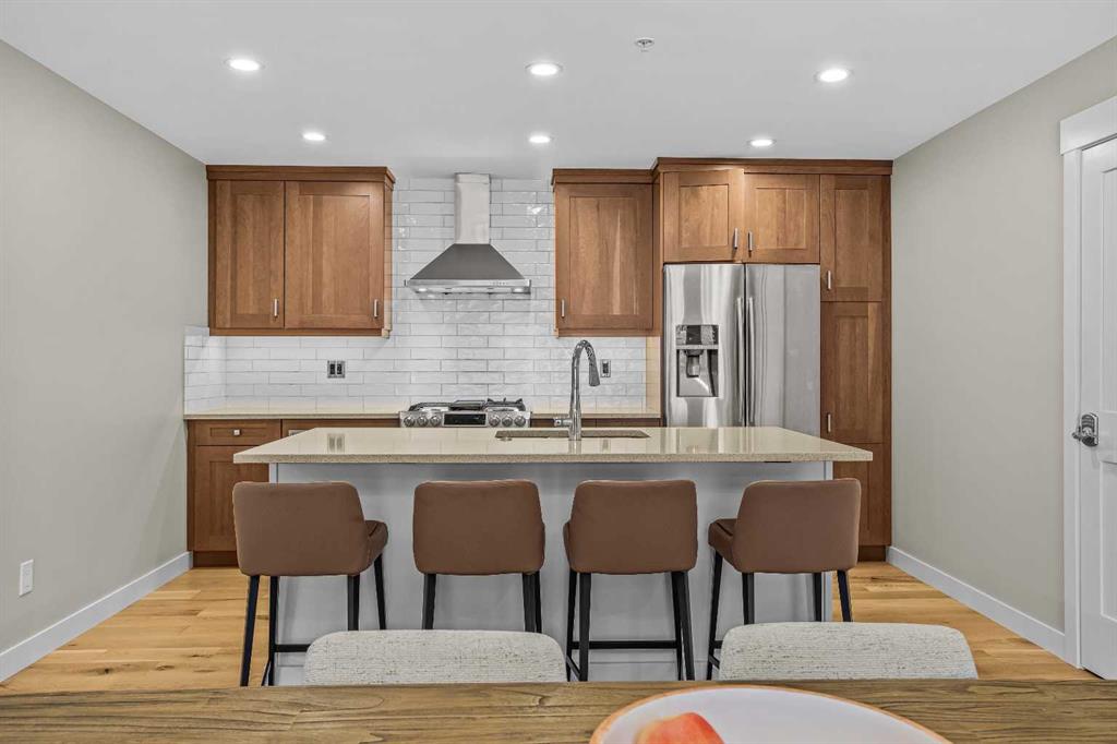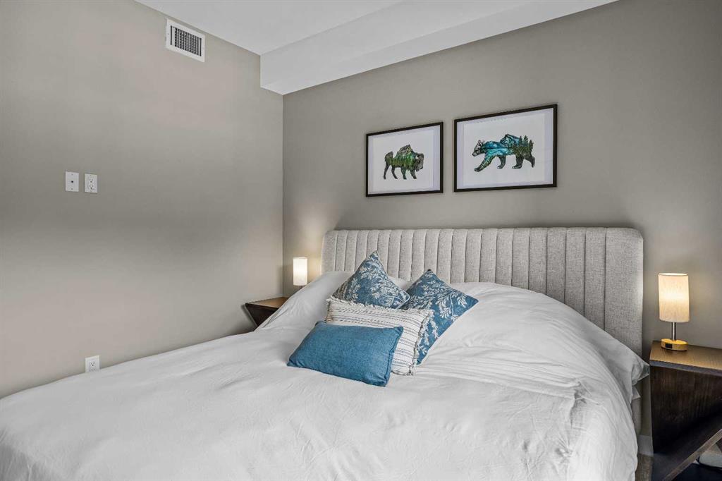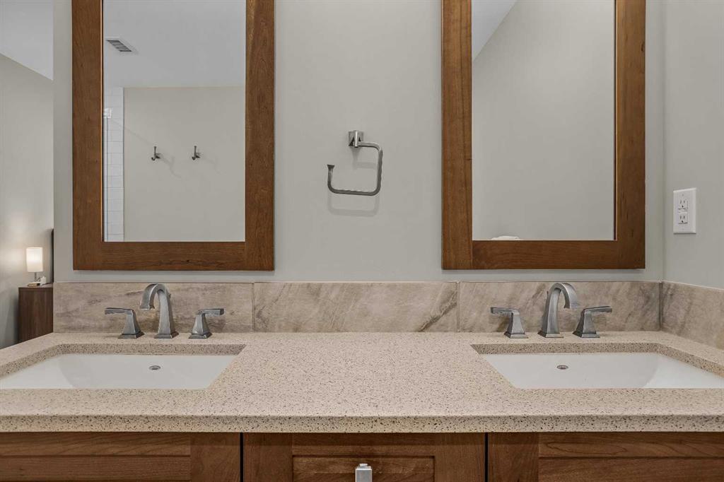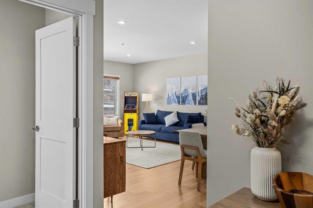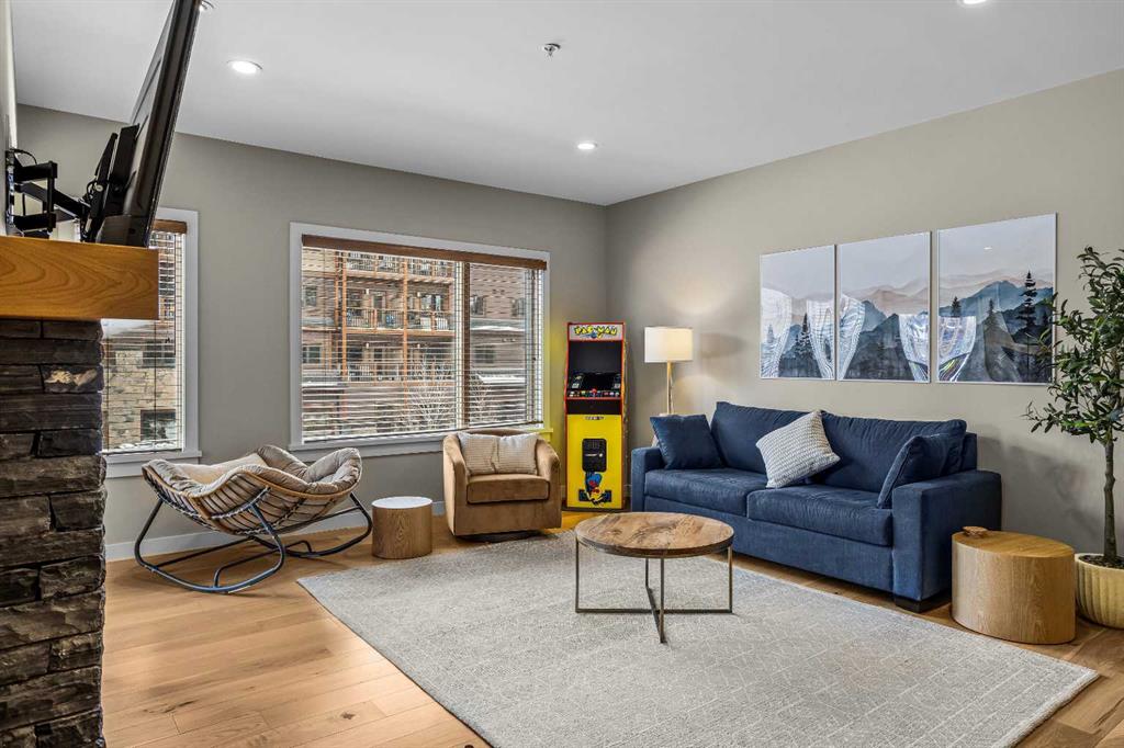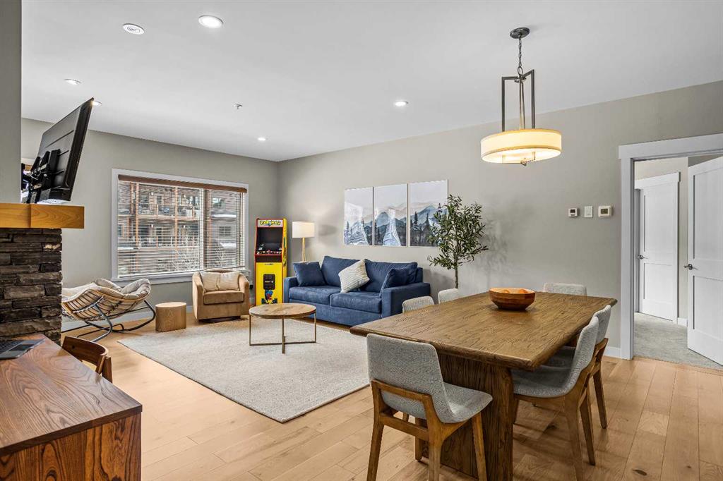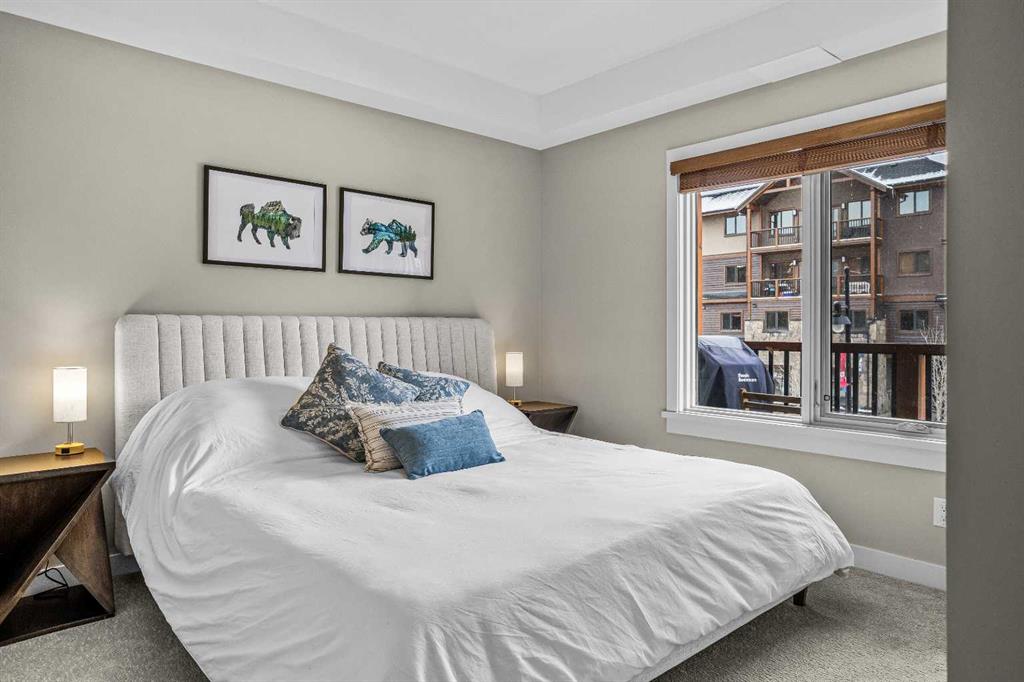 This exceptional 2-bedroom, 2-bath residence offers 1,250 sq ft of beautifully designed space in one of Canmore’s most desirable communities. Blending timeless elegance with modern comfort, it provides an unparalleled mountain lifestyle.Step into a bright, open-concept layout featuring hardwood floors and expansive windows that capture mountain views. The gourmet kitchen seamlessly connects to the dining and living areas, perfect for entertaining or relaxing.The spacious primary suite is a true sanctuary, complete with a private deck, walk-in closet, and a luxurious 5-piece ensuite featuring a soaking tub and glass-enclosed shower. The second bedroom is also generously sized, ideal for guests or a home office. A second deck extends your living space outdoors, perfect for morning coffee. Residents enjoy a fitness center, owner’s lounge, hot tub, and shared laundry facilities, all set within beautifully landscaped grounds. Whether for full-time living, a weekend escape, or an investment, this stunning home is a rare find in within the heart of Canmore. Walking distance to restaurants, coffee shops, Elevation Place, and many walking and biking trails.