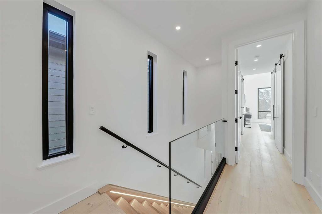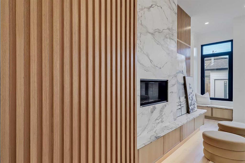 The fully developed basement features radiant in-floor heating, soaring 10-FT ceilings, and an expansive recreation area with a built-in media centre. A custom wet bar with sink & microwave drawer, dedicated home gym, fourth bedroom, three-piece bathroom, and a discreet pocket office with built-in workstation complete the level. Outside, the home is professionally landscaped and complemented by a fully finished garage with gas rough-in for a future heater. This is an exceptional opportunity to own a thoughtfully designed architectural home in one of Calgary’s most sought-after inner-city communities.