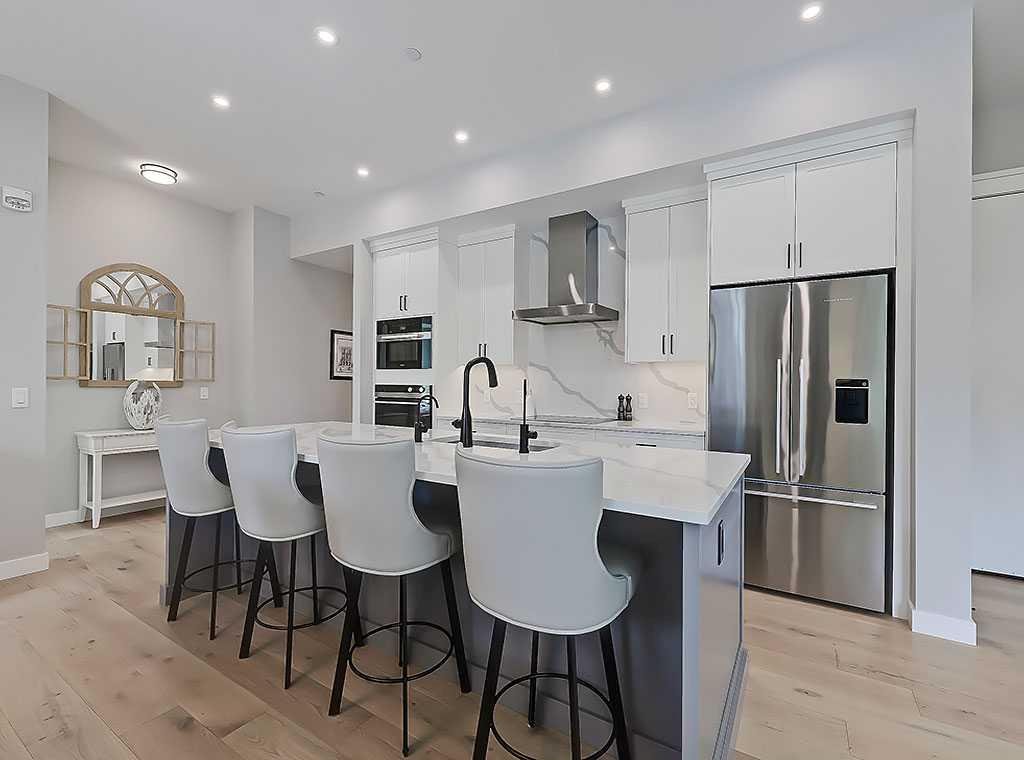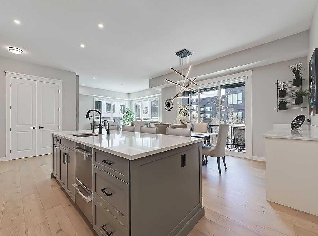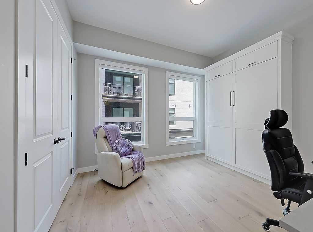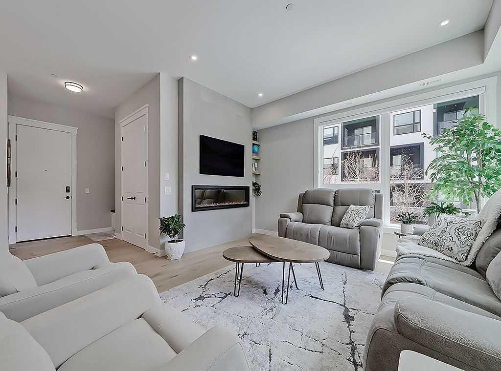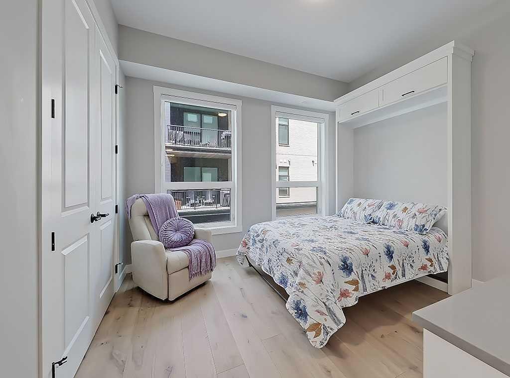 Welcome to this stunning 2-bedroom, 2-bathroom executive condo in the highly sought-after Capella building, offering 1,550 sq ft of refined living space in the heart of the University District. Thoughtfully designed with quality and comfort in mind, this LEED-certified development combines high-end finishes, a smart layout, and an unbeatable location. Step into the bright, open-concept living area where 10-foot ceilings and oversized windows flood the space with natural light from the south, west, and north exposures. The engineered hardwood floors flow seamlessly throughout, creating a sophisticated and cohesive feel. The kitchen is a true chef’s delight, featuring a spacious island, premium Miele and Fisher & Paykel appliances, a custom butler’s pantry with built-in cabinetry, and a beverage fridge—ideal for entertaining. The kitchen also features a Kinetico reverse osmosis drinking system and instant hot water tap. The dining area is generously sized, comfortably accommodating 8–10 guests, while the west-facing balcony overlooking the courtyard is perfect for relaxing evenings and comes equipped with an electric screen for added comfort. The primary bedroom also provides access to the balcony and features a custom walk-in closet and spa-like ensuite with a deep soaker tub, tiled shower with a bench, in-floor heat and added functional storage. The second bedroom is highly versatile, serving as an ideal office or guest space with a built-in desk, ample storage, and a convenient fold-down Murphy bed. Additional highlights include a private, oversized, heated garage finished with durable polyaspartic flooring—an exceptional feature rarely found in condo living. Capella’s Bungalows offer a boutique feel with just six units in the building and only one neighbour on the same floor, providing a quiet, private atmosphere while fostering a close-knit community. Each unit has its own heating, ventilation and air conditioning systems. University District is one of Calgary’s most vibrant and walkable urban communities. With a dynamic mix of green spaces, retail, restaurants, and pedestrian-friendly streets, it’s designed for modern living. Just steps away from the University of Calgary, Alberta Children’s Hospital, and Market Mall, residents enjoy easy access to everything they need in a thoughtfully planned, sustainable environment.