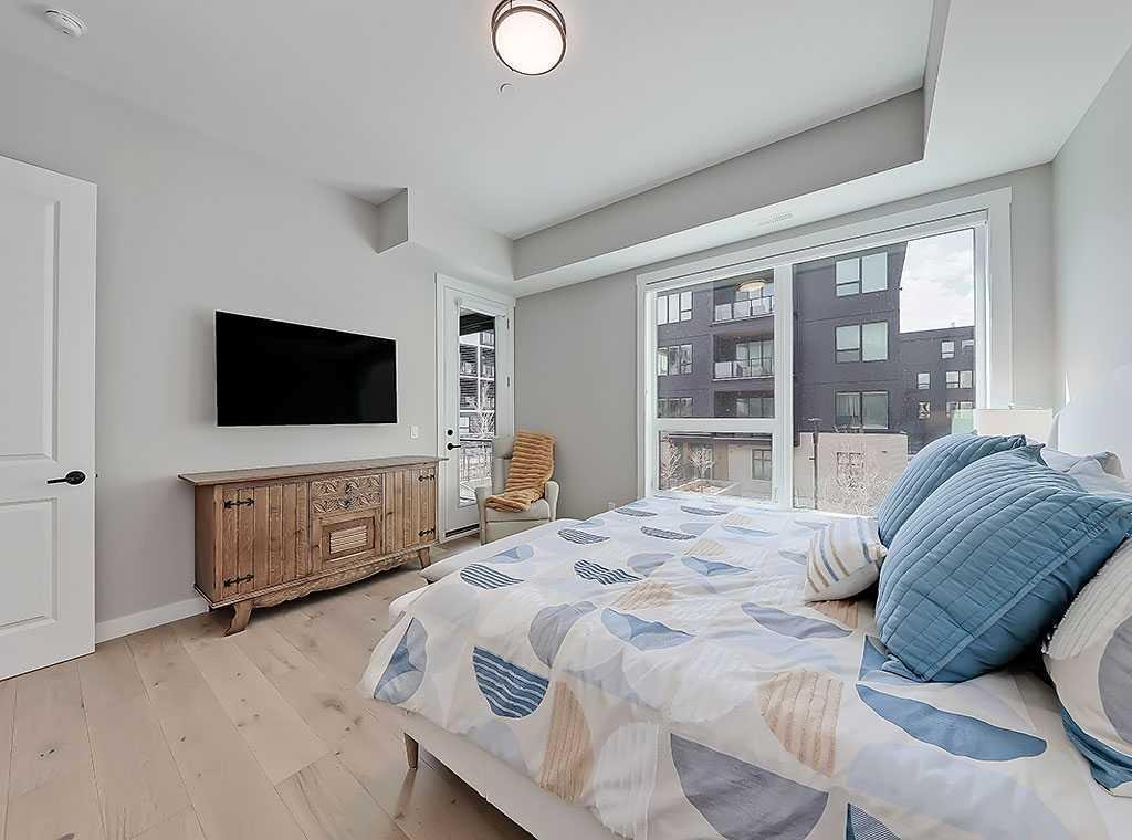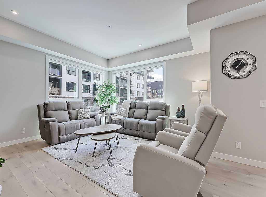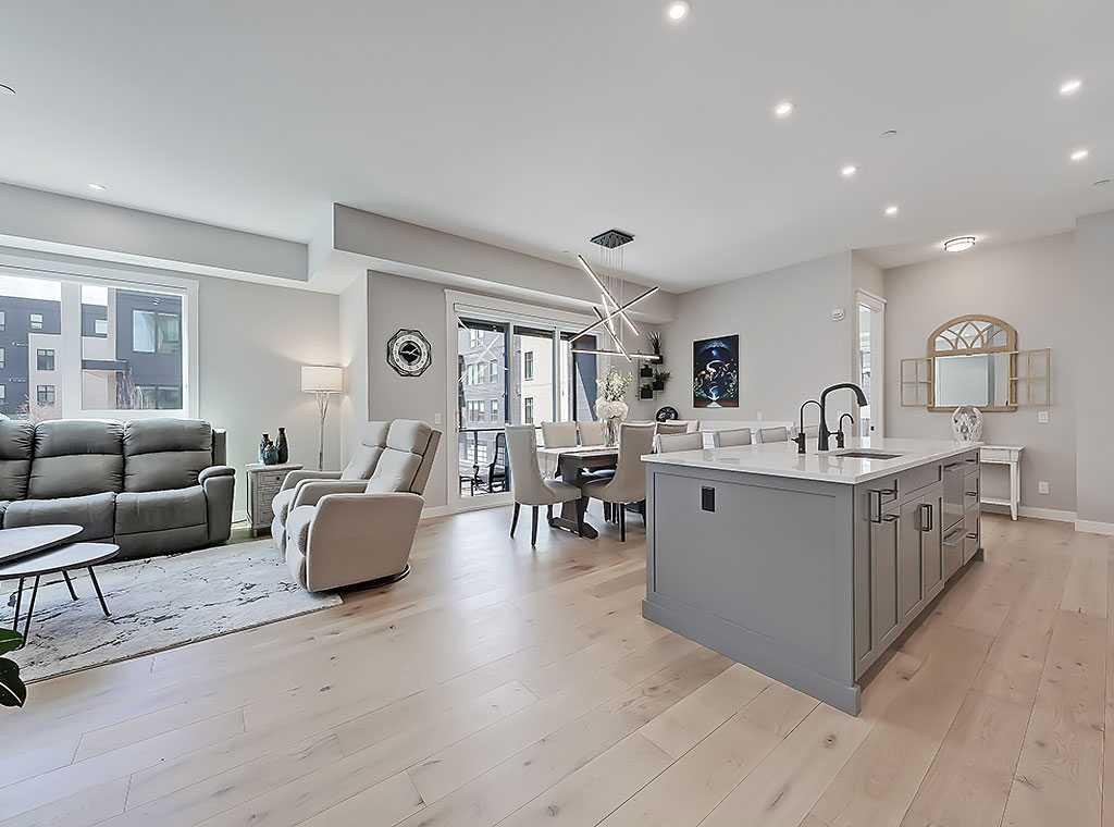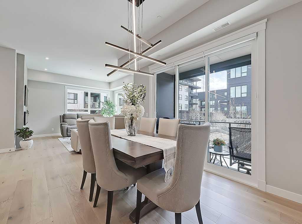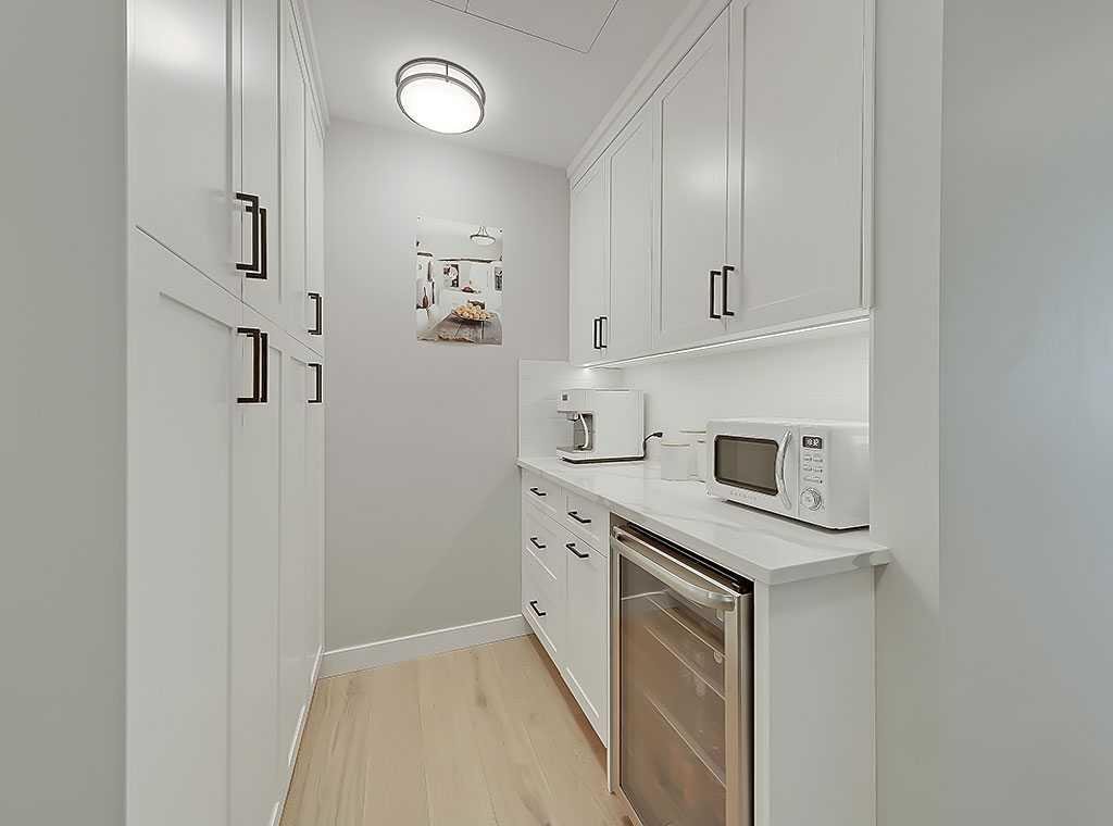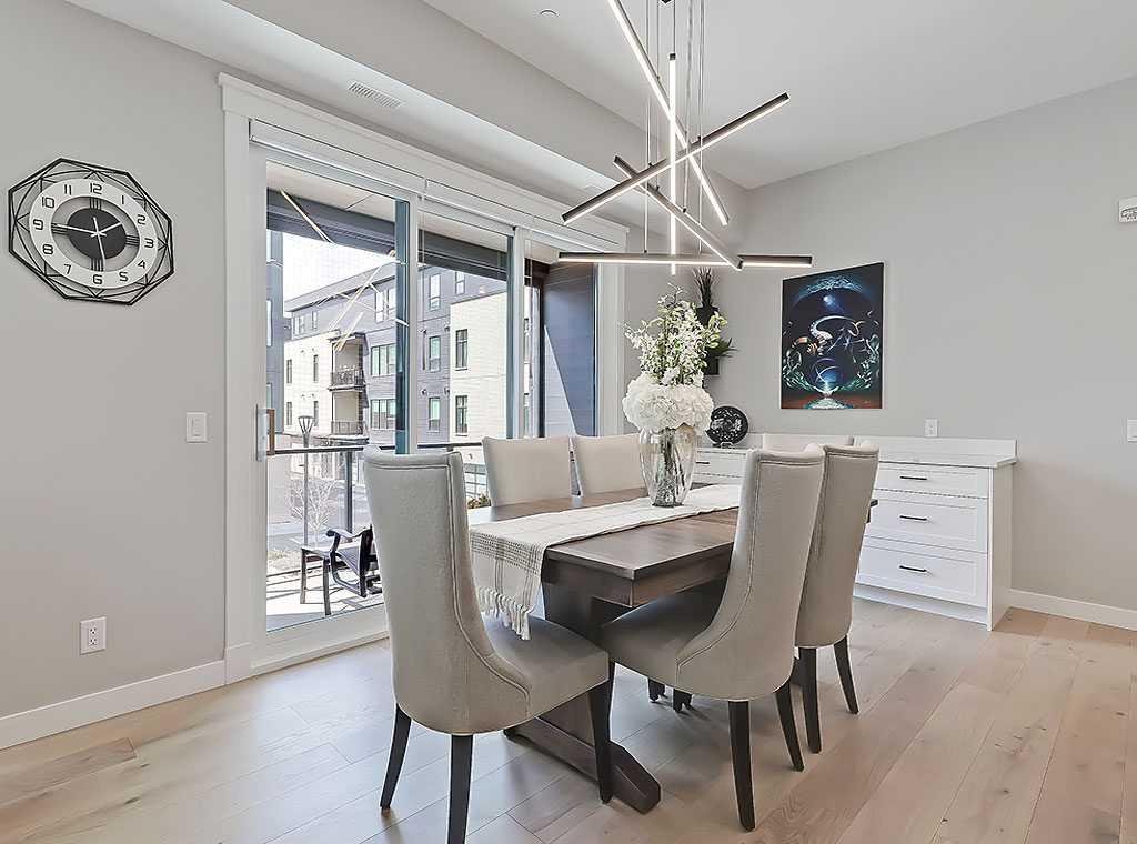 Welcome to this stunning 2-bedroom, 2-bathroom executive condo in the highly sought-after Capella building, offering 1,550 sq ft of refined living space in the heart of the University District. Thoughtfully designed with quality and comfort in mind, this LEED-certified development combines high-end finishes, a smart layout, and an unbeatable location. Step into the bright, open-concept living area where 10-foot ceilings and oversized windows flood the space with natural light from the south, west, and north exposures. The engineered hardwood floors flow seamlessly throughout, creating a sophisticated and cohesive feel. The kitchen is a true chef’s delight, featuring a spacious island, premium Miele and Fisher & Paykel appliances, a custom butler’s pantry with built-in cabinetry, and a beverage fridge—ideal for entertaining. The kitchen also features a Kinetico reverse osmosis drinking system and instant hot water tap. The dining area is generously sized, comfortably accommodating 8–10 guests, while the west-facing balcony overlooking the courtyard is perfect for relaxing evenings and comes equipped with an electric screen for added comfort. The primary bedroom also provides access to the balcony and features a custom walk-in closet and spa-like ensuite with a deep soaker tub, tiled shower with a bench, in-floor heat and added functional storage. The second bedroom is highly versatile, serving as an ideal office or guest space with a built-in desk, ample storage, and a convenient fold-down Murphy bed. Additional highlights include a private, oversized, heated garage finished with durable polyaspartic flooring—an exceptional feature rarely found in condo living. Capella’s Bungalows offer a boutique feel with just six units in the building and only one neighbour on the same floor, providing a quiet, private atmosphere while fostering a close-knit community. Each unit has its own heating, ventilation and air conditioning systems. University District is one of Calgary’s most vibrant and walkable urban communities. With a dynamic mix of green spaces, retail, restaurants, and pedestrian-friendly streets, it’s designed for modern living. Just steps away from the University of Calgary, Alberta Children’s Hospital, and Market Mall, residents enjoy easy access to everything they need in a thoughtfully planned, sustainable environment.