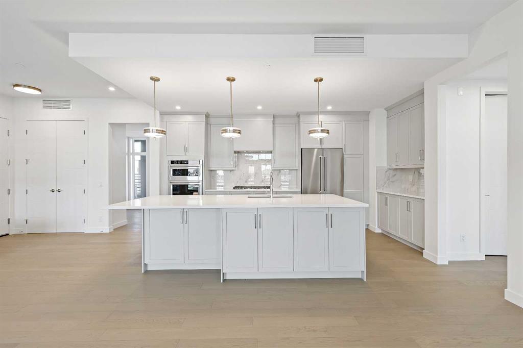 The Streams of Lake Mahogany present an elevated single-level lifestyle in our stunning Reflection Estate homes situated on the park Side on Mahogany Lake. Selected carefully from the best-selling, renowned Westman Village Community, you will discover THE CASCADE, a home crafted for the most discerning buyer, offering a curated space to enjoy and appreciate the hand-selected luxury of a resort-style lifestyle while providing a maintenance-free opportunity to lock and leave. Step into an expansive 1700+ builders sq ft stunning home overlooking a gorgeous greenspace adjacent to Mahogany Lake featuring a thoughtfully designed open floor plan inviting an abundance of natural daylight with soaring 10-foot ceilings and oversized windows. The centralized living area, ideal for entertaining, offers a Built-in KitchenAid sleek stainless steel package with French Door Refrigerator and internal ice maker and water dispenser, a 36" gas cooktop, a dishwasher with a stainless steel interior, and a 30-inch wall oven with microwave; all nicely complemented by an Elevated DRIZZLE Color Palette. All feature stunning Quartz countertops. You will enjoy two beautiful bedrooms, a generous central living area, with the Primary Suite featuring a spacious 5-piece oasis-like ensuite with dual vanities, a large soaker tub, a stand-alone shower, and a generous walk-in closet. The Primary Suite and main living area step out to a 39 ft x 15 ft terrace with a lovely view of the greenspace. Yours to enjoy and soak in every single day. To complete the package, you have a sizeable office area adjacent to the spacious laundry room, and a double-attached heated garage with a full-width driveway. Custom additions to this home include under-cabinet lighting, an upgraded Moen plumbing fixture package, air conditioning, a convenient laundry room with a folding table, a stunning electric fireplace, and an expansive covered terrace with access from the Living Room, Dining Room, and owner's suite. Jayman's standard inclusions feature their trademark Core Performance, which includes Solar Panels, Built Green Canada Standard with an Energuide rating, UVC Ultraviolet light air purification system, high-efficiency heat pump for air conditioning, forced air fan coil hydronic heating system, active heat recovery ventilator, Navien-brand tankless hot water heater, triple pane windows and smart home technology solutions. Enjoy Calgary’s largest lake, with 21 more acres of beach area than any other community.