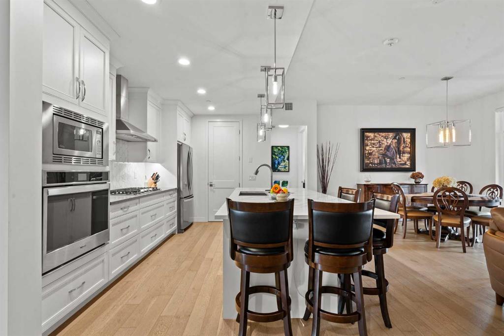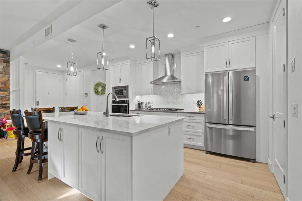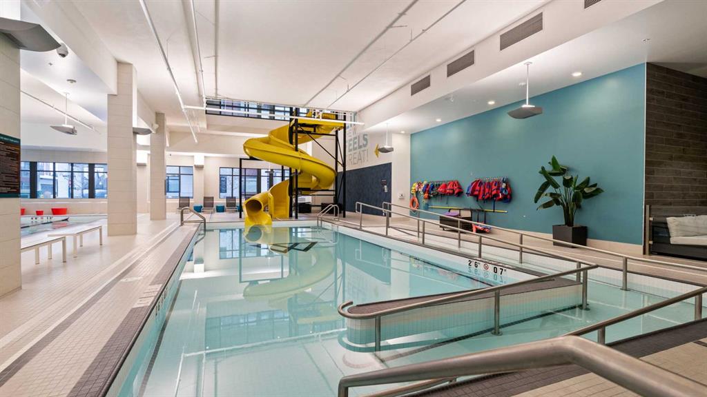 OPEN HOUSE THIS SUNDAY FEB. 1st FROM 2-4PM!! WELCOME TO WESTMAN VILLAGE – The Resort on Lake Mahogany. Discover elevated resort-style living at Reflection, where your home is a true extension of your lifestyle. This exceptional residence allows you to upsize your life without compromising how—or where—you live. The home showcases executive-level finishes throughout, including 10-foot ceilings, quartz countertops, LED lighting, and triple-pane windows. The designer kitchen features cabinet lighting, an upgraded pantry with custom wood shelving, and a built-in KitchenAid appliance package with a French-door refrigerator and gas cooktop. Additional highlights include a dedicated office space, air conditioning, premium heated toilets, and a heated double attached garage. Enjoy seamless indoor-outdoor living with dual-exposure outdoor terraces, offering views of Lake Mahogany and surrounding greenspace. A private elevator, secure front lobby with security cameras, and abundant visitor parking (both indoor and surface stalls) add comfort and peace of mind. At the heart of the community is the impressive 40,000 sq. ft. amenity centre, spanning three levels and offering something for every lifestyle. Amenities include a resort-style swimming pool with a two-storey waterslide, fitness centre, golf simulator, movie theatre, and countless spaces to relax or socialize. The grounds are beautifully landscaped with fountains, bridges, pathways, park benches, and raised planters—creating a picturesque backdrop right outside your door. Residents enjoy 24/7 security and concierge service. Built with Jayman Core Performance, Reflection homes feature thoughtful design and exceptional fit and finish, including forced-air heating, solar panels on every building, Vancouver-inspired architecture, oversized covered balconies, and durable Hardie Board siding with brick and stone accents. Winter is a non-issue with heated underground parking stalls, including 200 dedicated visitor stalls, extensive +15 skywalks, and underground passageways. Westman Village also offers short-term hotel suites, electric vehicle charging, and an unbeatable dining experience with three on-site restaurants, including the renowned Chairman’s Steakhouse and Alvin’s Jazz Club. This is more than a home—it’s a five-star, resort-style community where every day feels like a vacation.