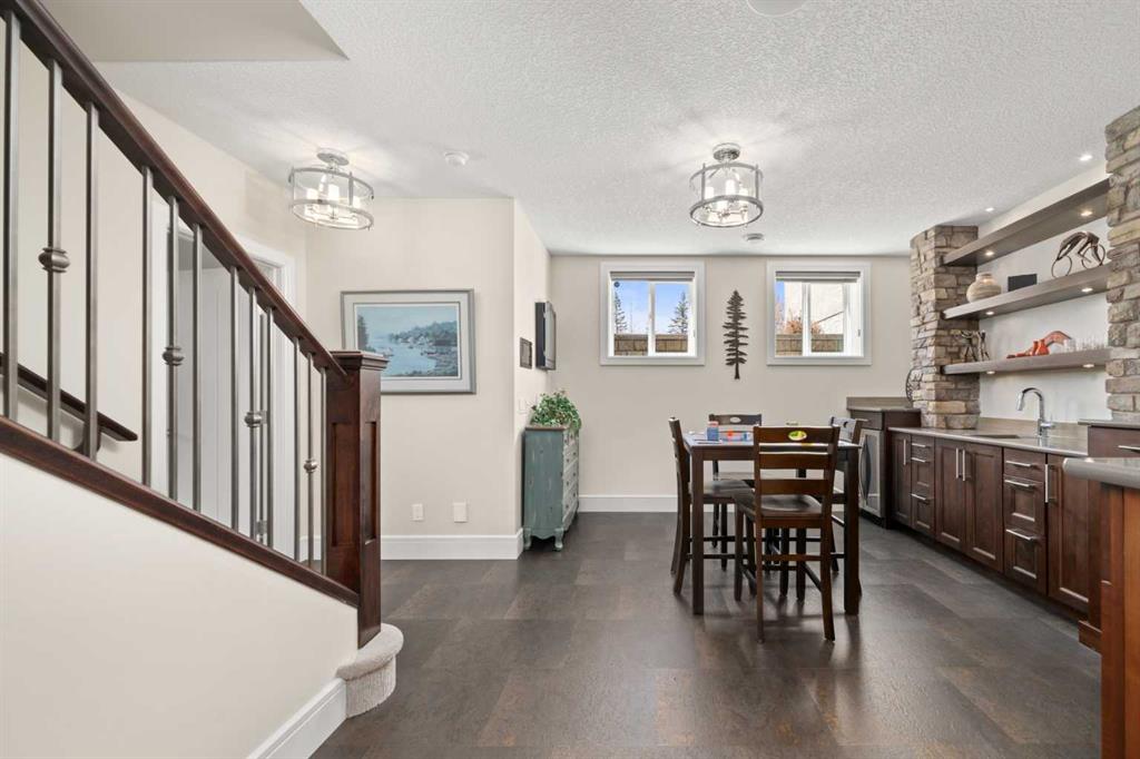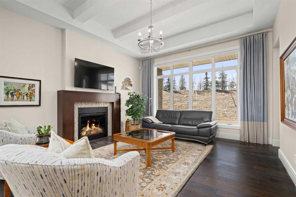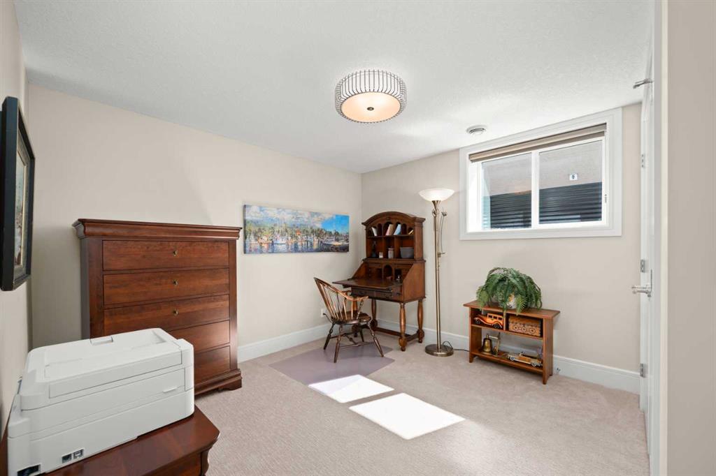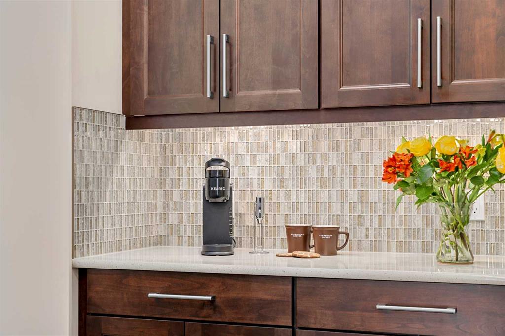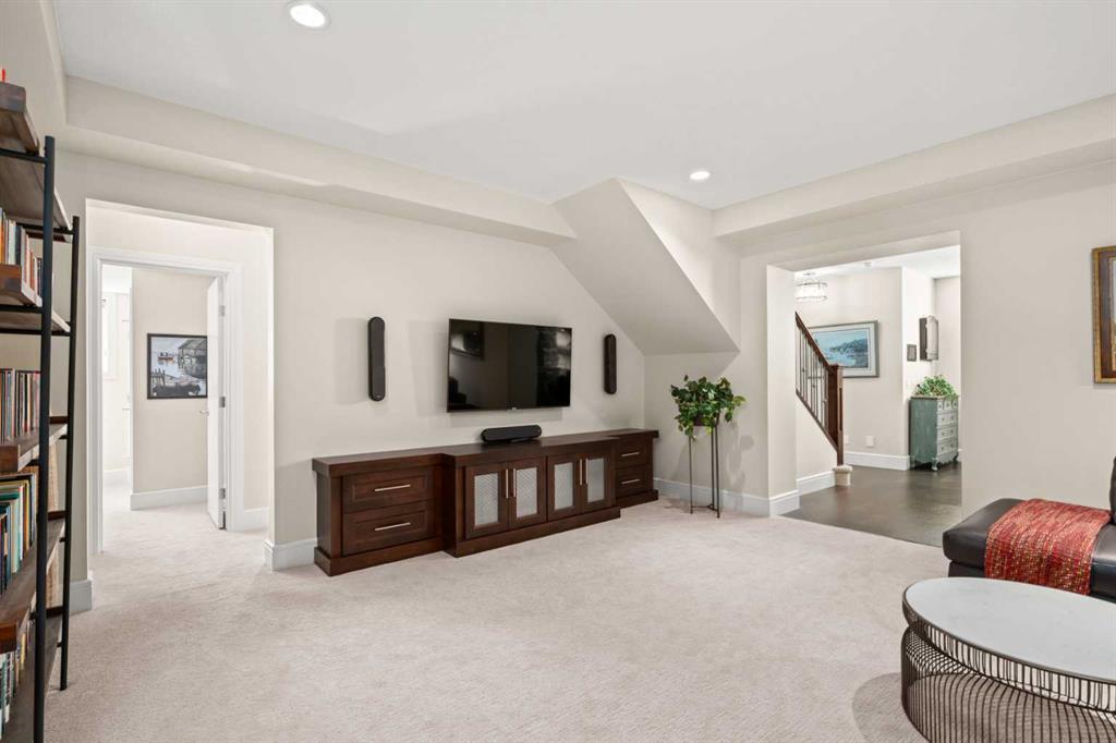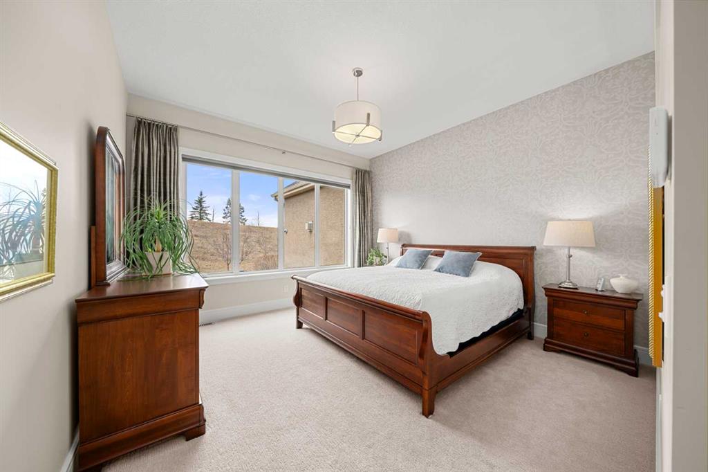 Nestled within an exclusive enclave of just 36 villas in Artesia at Heritage Pointe, this exceptional executive residence offers refined living in an impeccably maintained setting. As a former showhome, this residence stands apart with exceptional quality, thoughtfully curated upgrades, timeless design, and abundant natural light—reflected in its sophisticated finishes, pristine condition, and premium Hunter Douglas window coverings throughout. The main level strikes a perfect balance between elegance and functionality, anchored by a stunning custom kitchen with a large central island that serves as both breakfast bar & gathering place - ideal for everyday living and effortless entertaining. A discreet butler’s pantry adds convenience, while the elegant dining room, adorned with a wallpapered feature wall and framed by a tripartite of windows, offers a beautiful setting for both intimate dinners & larger gatherings. The living room impresses with its striking ceiling detail and fireplace, while a well-appointed wet bar provides a seamless transition to accommodate an indoor/outdoor lifestyle. Outside is a west-facing exposed aggregate patio, where sunshine and privacy abound, backing onto greenspace and a densely treed berm. The primary bedroom is a true retreat.. Generous in size and filled with natural light, it features an elegant, wallpapered accent wall and transom windows that beam sunlight into the spa-inspired ensuite bath. Featuring dual granite vanities, a corner soaker tub, a spacious walk-in shower with rain and multi-function heads, and a thoughtfully designed custom walk-in closet. A versatile flex room with a designer accent wall offers the perfect space for a home office, den, or guest bedroom, complemented by a powder room to complete the main floor. An open-railed staircase leads to the fully developed lower level, where the living space expands beautifully. Here, a custom wet bar with built-in cabinetry, stone columns, and wood shelving creates an inviting setting for entertaining, alongside a dedicated wine cellar for an added touch of luxury. The family room, warm and welcoming, features a built-in entertainment centre with Tannoy speakers and integrated Sonos sound system - perfect for movie nights or watching the game. Three additional bedrooms, one currently used as a home gym, and a full bathroom provide flexibility for guests or work-from-home needs. This level is further enhanced by an exceptionally spacious and immaculate utility room offering abundant storage, along with the efficiency of a tankless hot water system, in-floor heating, and a water softener. The double attached garage is equally well appointed, featuring in-floor heating, dual overhead doors, a workbench, and a convenient man door for easy access. Balancing comfort, craftsmanship, and understated luxury, this home is ideally suited to the discerning buyer seeking a lock-and-leave lifestyle with without compromise. Viewings by Appointment Only.