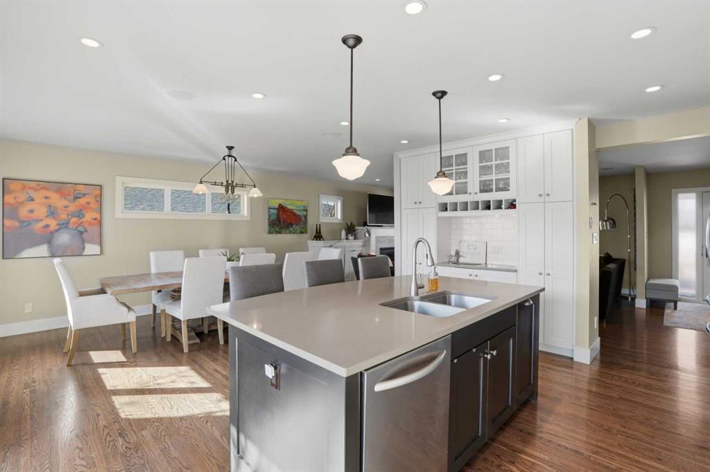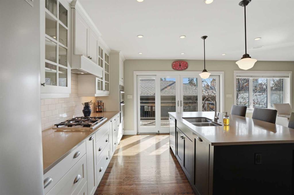 WOW! This one-of-a-kind raised bungalow is ideally situated on a quiet cul-de-sac in desirable Richmond, inner-city Calgary, on a generous 50 x 110 ft lot with south-facing backyard and quadruple heated garage! Offering over 2,400 sq. ft. of fully developed living space, this luxurious home features 2 bedrooms, 2 bathrooms, and a stylish illegal bachelor/studio basement suite with separate entry! Extensively renovated down to the studs (2011–2014), this residence blends modern efficiency with upscale finishings, including: oversized Low-E argon vinyl windows and doors, concrete board siding (with R24 upgraded exterior wall insulation), high efficiency furnace, central air conditioning, instant water on demand system, 200AMP electrical service, 30-year shingles, R60 attic insulation, central vacuum system, natural gas fireplace, quartz countertops throughout, top-of-the-line stainless steel appliances, steam shower, refinished oak hardwood floors, an in-ceiling speaker system, dimmable lighting, Hunter Douglas window treatment package, and thoughtful custom storage solutions throughout! Outside, enjoy a private south-facing backyard with a two-tier cedar deck, two natural gas hookups, and an exposed aggregate patio with hot tub.