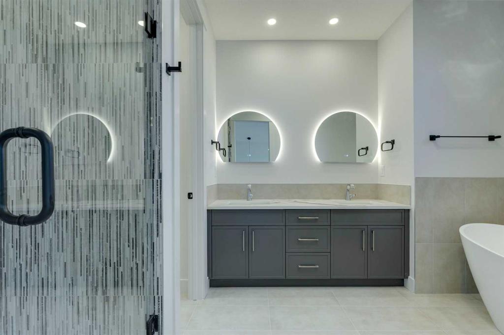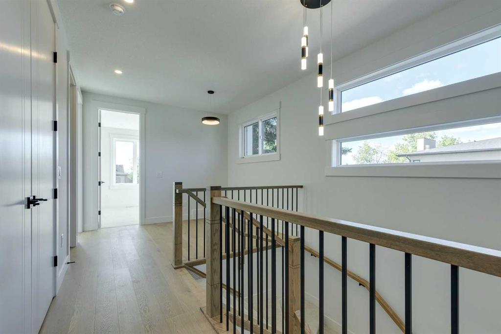 *** SEE THE VIRTUAL TOUR *** Welcome to this stunning brand-new side-by-side duplex located in the desirable community of Banff Trail. With its stylish mixture of Stucco and Hardie board exterior , a concrete walkway leading to the house, along with concrete stairs at both the front and back, a spacious concrete patio in the backyard and composite WPC fence between the two houses. For safe and easy access to the basement through side door, the side of the house is all concrete without any window well on the way. Step inside to find a welcoming foyer that opens into a large dining area. The modern kitchen is equipped with sleek cabinetry, stainless steel Bosch appliances, and a luxurious granite leather island and countertops. The large and spacious living area with a large window overlooking the sunny backyard. The main floor also includes a beautiful powder room and a convenient mudroom leading to the backyard. Upstairs, you'll discover a generously sized master bedroom complete with a walk-in closet and a stunning modern ensuite bathroom featuring a double vanity, standalone tub, tiled floors, quartz countertops, and a beautifully tiled shower. Additionally, the second floor hosts two other spacious bedrooms and a cozy loft, perfect for an office space or a play area for the kids. The laundry room is conveniently located upstairs, alongside the main bathroom, which also boasts a double vanity, tiled floors, and quartz countertops. Hardwood flooring graces the main floor and the hallway of the second floor and the master bedroom. The basement features a separate entrance leading to a legal suite with two bedrooms, a separate furnace, and LVP flooring throughout. This suite includes a full kitchen with quartz countertops and stainless steel appliances, as well as a complete laundry setup, making it an ideal income generator while you enjoy luxurious living upstairs. . In all vanities, LED mirrors are installed with 3 color temperatures selection (3000-4000 and 5000), all dimmable to 10% of the normal light and anti fog functionality. Some of the ceiling lights such as master bedroom have 3 color temperature option. Additional highlights include a double detached garage, 10-foot ceilings on the main floor and 9-foot ceilings on the second floor and basement, two furnaces, a 75-gallon hot water tank, rough-ins for AC and central vacuum, soundproof insulation, soundbar and fire rated drywall on the basement ceiling and a soundbar in the party wall.