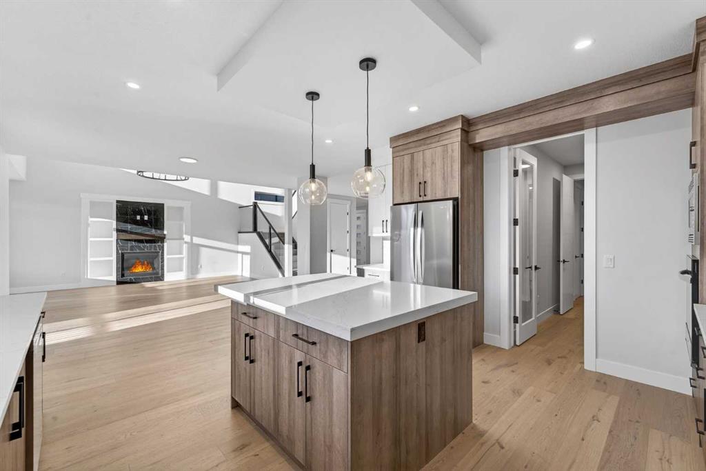 BRAND NEW HOME!! BACKING ONTO GREEN SPACE/POND!! WIDE LOT (66FT)!! IN KINNIBURGH SOUTH!! POND VIEWS!! TRIPLE ATTACHED GARAGE!! MAIN FLOOR BEDROOM & FULL BATH!! 5 BED 4 BATH!! SEPARATE ENTRANCE TO BASEMENT!! Step into a welcoming main floor featuring a formal dining area, spacious living room with GAS FIREPLACE and direct access to the backyard deck, plus a chef-inspired kitchen with OVERSIZED ISLAND, built-in appliances, tons of cabinetry, and a SPICE KITCHEN. The main floor bedroom and 3-pc bath offer ideal flexibility. Upstairs offers FOUR BEDROOMS including a luxurious PRIMARY BEDROOM with walk-in closet and 5-pc ensuite. A second bedroom features its own private 3-pc ensuite. The remaining two bedrooms share a Jack & Jill 4-pc bath. Enjoy the convenience of UPPER FLOOR LAUNDRY, a bright family area, and an OPEN-TO-BELOW design that adds to the grand feel of the home. Final touchups still needs to be done for both exterior and interior. Backing onto GREEN SPACE for added privacy and views, while the front of the home faces Main Street, this property delivers space, function, and luxury in one of Chestermere’s most desirable communities. DON’T MISS THIS INCREDIBLE NEW BUILD IN KINNIBURGH SOUTH — BOOK YOUR SHOWING TODAY!!