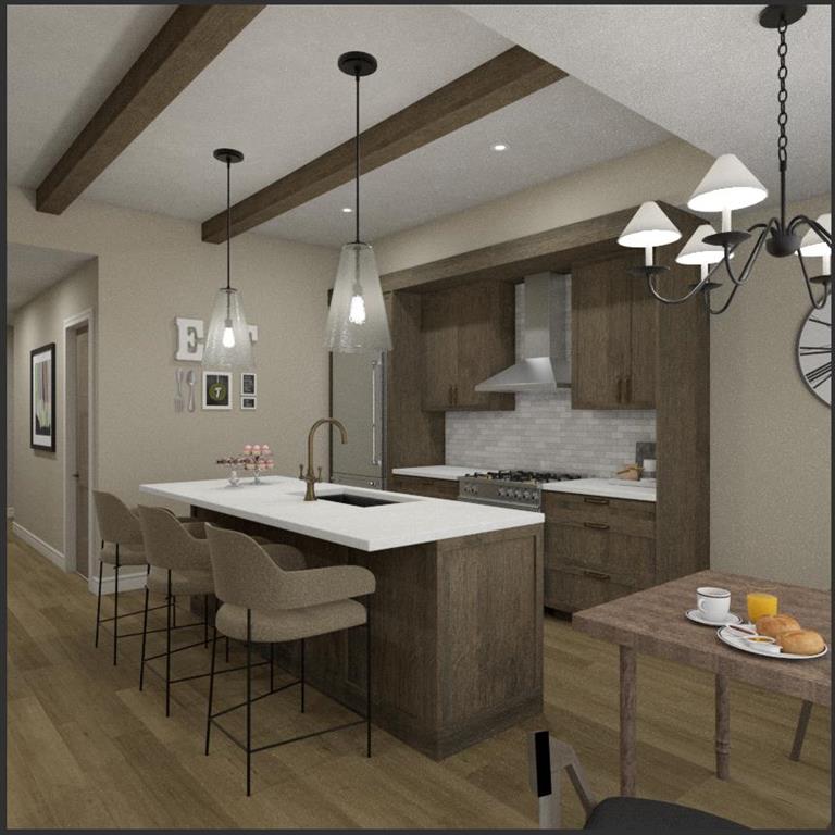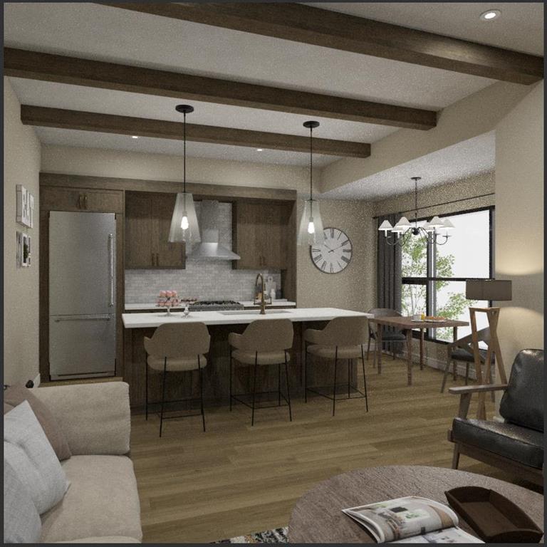 Welcome to Settler's Block. Canmore's only luxury steel and concrete building on main street. This 2 bed 2 bath 2nd floor corner unit in the heart of downtown is finished to the highest standard with ceiling beams and mantles constructed from reclaimed wood from the Canmore Engine bridge, hardwood and tile flooring, high end finishings, Bertazzoni stainless steel appliances with gas range, infloor heat, A/C, and a private patio with gas hookup with breathtaking mountain views. Elevator access to the 2500 sq ft rooftop patio provides BBQ's and a seating area for entertaining, and an Infra red Sauna for relaxing and enjoying the 360 degree, panoramic views of Canmore. Only 2 units Left!