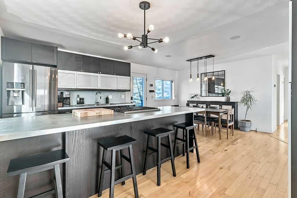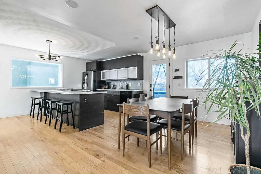 Situated on a quiet street in desirable North Glenmore Park you will find this spacious renovated 1962 bungalow with 1300 square feet of main floor living space!! Buyers looking for a single family home on a large lot (double lot R-CG zoning) with a big private yard and new oversized double garage(2022) will also love the location with walking distance to Glenmore Athletic Park, River Park, Sandy Beach, playgrounds, golf, shopping, restaurants and schools. Its inner city location has easy access to downtown, transit and major routes west and south. Lots of natural light brightens the main level of this home which consists of a large family room, a kitchen with eat-up bar, dining area, & lots of storage, a flex room that can be used as a den/office, 2 good-sized bedrooms and a renovated 5-pc bathroom. The lower level is comprised of 2 additional bedrooms, a 3-pc bathroom, lower family room, walk up bar and recreation area, storage cabinets and laundry/utility room. There have been many thoughtful upgrades to this home including most recently electrical panel (2023), staircase and railing (2024), new hot water tank (2024), back door and some windows. Great house for entertaining both indoors and out. Quick possession is possible!!