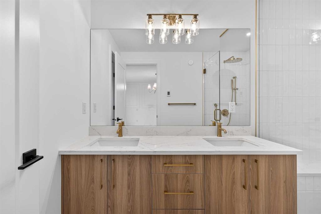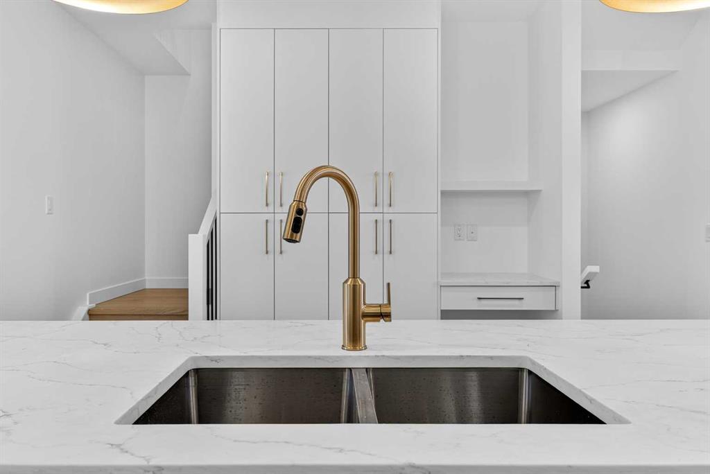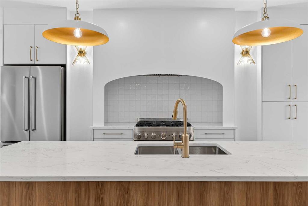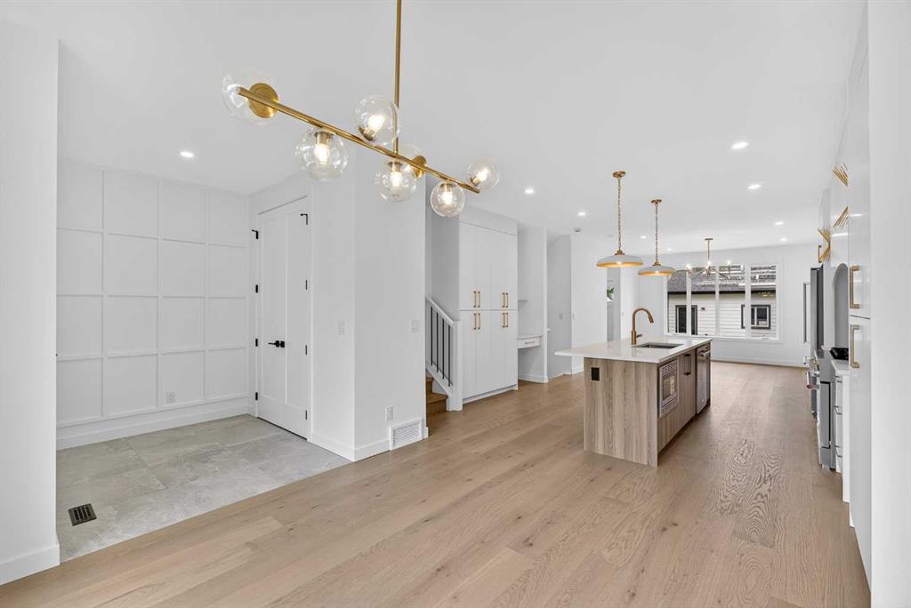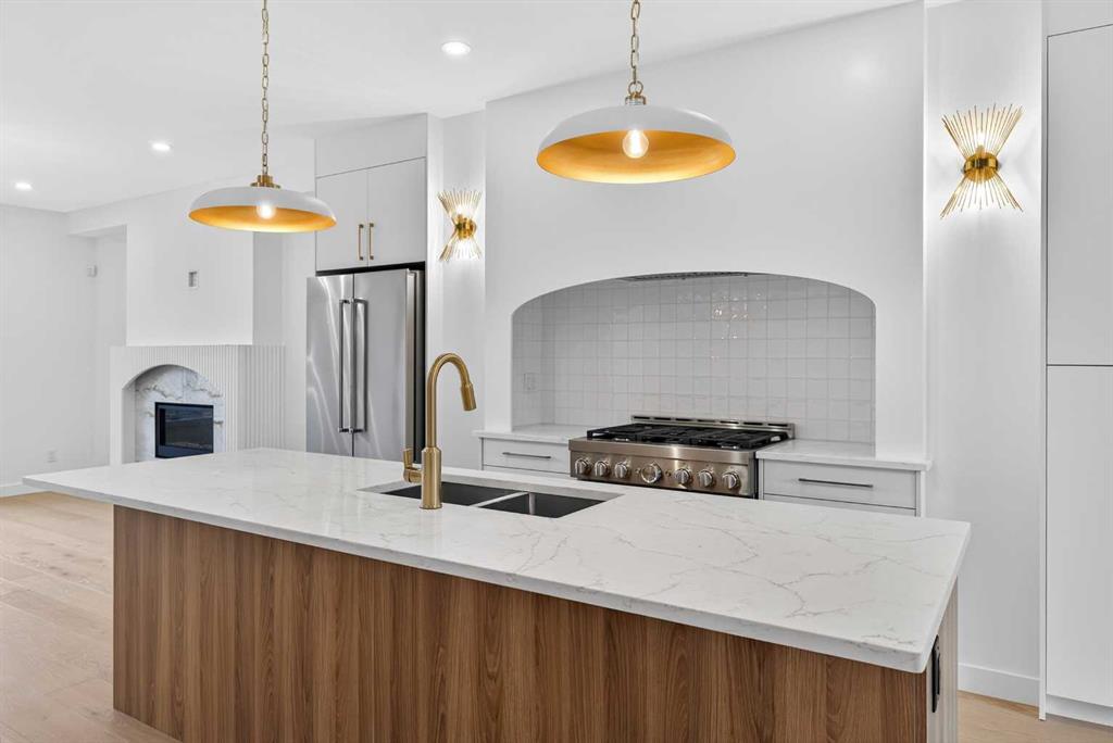 Ideally located in the wonderful community of North Glenmore Park, this 3 +1 bedroom custom built infill is beautifully appointed. The front door opens to a generous entrance way opposite a lovely dining room overlooking the fully landscaped front yard. The open concept floor plan flows smoothly from the dining room to the spacious kitchen with custom hoodfan and large island, perfect for entertaining. It then moves to the beautiful living room overlooking the fully fenced in and manicured backyard and porch. The adunance of natural light highlights the engineered oak hardwood floors, quartz counters and lovely light fixtures & plentiful cabinetry. The upper floor master bedroom is a true oasis with a lovely ensuite and spacious walk in closet. The other two bedrooms are generously sized with the main bath easily accessable to both. Upper laundry and nook finish off the upper level nicely. The basement is fully finished with a family room and wet bar, bedroom, bathroom, nook and storage. The oversized garage, fully fenced in & landscaped yard with underground sprinkler system finishes this property off very nicely. Hard to beat this amazing location which is close to a plethora of schools, bike pathways, public pool, running track, transit, hockey & curling arenas and be 7 min from DT. Book your appointment today!