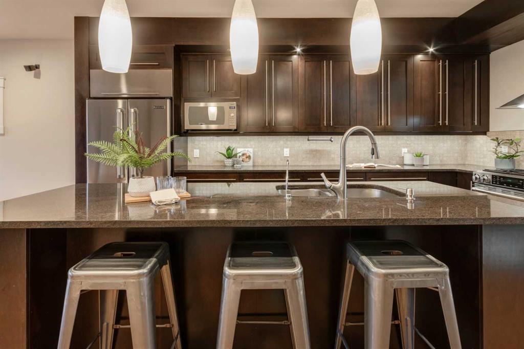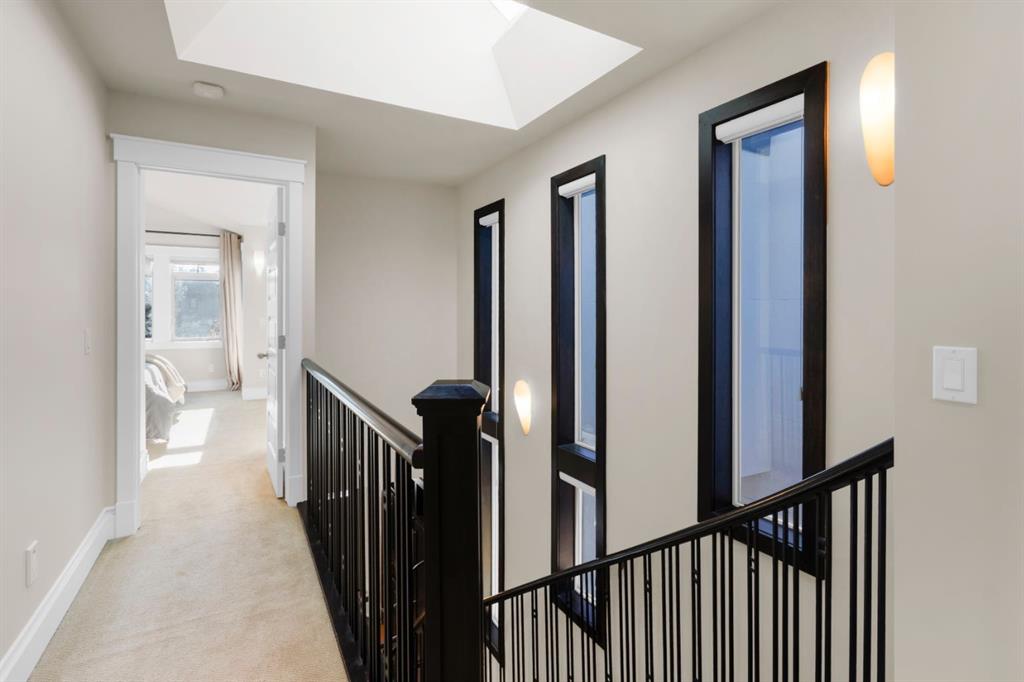 Beautiful family home located on a quiet tree-lined street in the sought after community of Altadore. This spacious 2-storey, 4 bedroom house has a great layout with many standout features including the elegant curved staircase with open risers, 3 gas fireplaces, 3 skylights, built-in cabinetry, built-in speakers, and Hunter Douglas blinds throughout. Brand new hot water tank (November 2025) and roof shingles replaced in 2024. Upon entering the home you will notice the natural light throughout, quality finishing details, and functional layout with spacious room sizes. The foyer has a custom built-in closet, and leads to the bright dining room, roomy enough to accommodate a large dining table along with additional space for a seating area or other dining room furniture pieces. The kitchen offers granite countertops, espresso-stained cabinetry including a built-in wine rack and end of island cabinetry, breakfast bar seating at the island, reverse-osmosis water system, and stainless steel appliances including a Jenn-Air gas range and refrigerator. The kitchen opens onto the living room featuring a gas fireplace, full built-in cabinetry wall, and large windows to enjoy the view of your private yard. The powder room completes the main level. On the upper level you will find the bright primary suite with vaulted ceiling, south-facing balcony, built-in cabinetry, dual-sided fireplace and elegant ensuite with heated floors, dual vanities, soaker tub, and full tiled shower with rain drop shower head and glass door. The two additional bedrooms upstairs are good sizes and are located near the 4-piece bathroom that has one of three skylights, fully tiled shower/tub combo and vanity with granite countertop. Convenient upstairs laundry with storage and a drying rod, and 2 large linen/storage closets complete the upper level. The fully finished basement includes the 4th bedroom, full bathroom with heated floor, family room with gas fireplace and built-in cabinetry, wet bar with beverage fridge and wine shelving, and utility room. Fully fenced private yard with landscaping, composite deck and a double garage with storage shelving. This location has so much to offer! Enjoy Glenmore Athletic Park, River Park, several schools within walking distance, all the amenities that Marda Loop has to offer and easy access in and out of the community. Homes like this do not come on the market in Altadore often so do not delay viewing this great property!