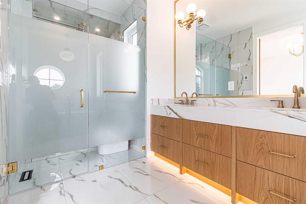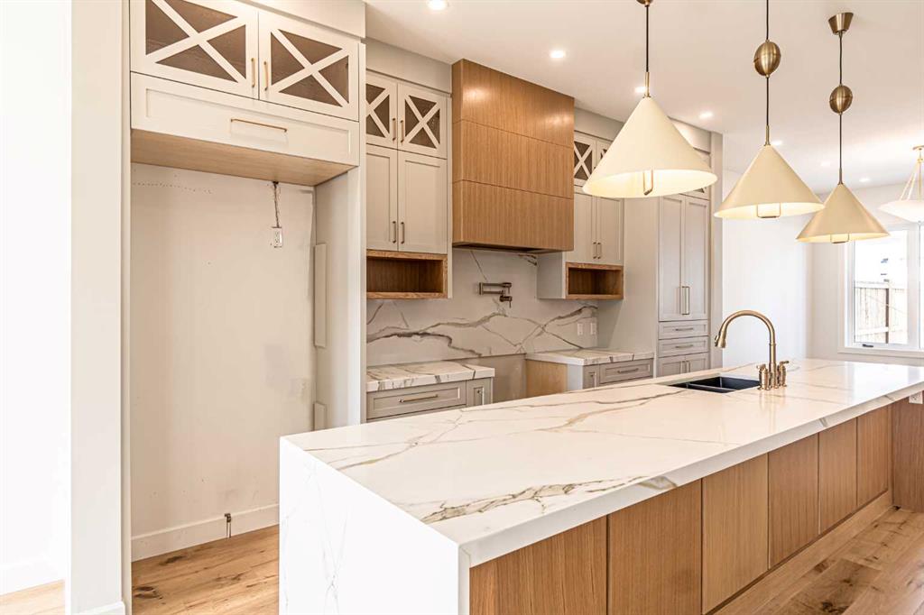 ** Open House: Friday, October 31st 1-3pm & Saturday, November 1st 12:30-2:30pm ** Welcome to 2048 41 Avenue SW — a stunning 4-bedroom, 3.5-bathroom luxury residence crafted by acclaimed inner-city builder Palatial Homes Ltd., perfectly situated on a premium corner lot in the heart of Altadore. Surrounded by some of Calgary’s best amenities, this home is just minutes from top-rated schools, playgrounds, parks, off-leash areas, boutique shopping, and vibrant Marda Loop dining — making it the ideal location for families and professionals alike. The home’s bold brick exterior, fully landscaped and fenced yard, and detached double garage make an unforgettable first impression while ensuring low maintenance and timeless curb appeal. Inside, you'll find a thoughtfully designed, light-filled interior with a bright front dining area and an open-concept layout perfect for entertaining and everyday living. Stunning wide plank hardwood flooring flows throughout the main level, complemented by 10-foot ceilings and designer finishes. The gourmet kitchen is a true showstopper, featuring quartz countertops, a full-size island, ceiling-height cabinetry, and a premium JennAir appliance package. The adjacent living room is anchored by a cozy gas fireplace with floating built-in shelves and large windows that flood the space with natural light. A custom mudroom and stylish powder room add everyday convenience and function. Upstairs, the primary suite is a luxurious retreat with a spacious walk-in closet, and a spa-like ensuite featuring heated tile floors, a freestanding soaking tub, walk-in shower, and dual vanities with quartz counters. Two additional well-sized bedrooms, a shared full bathroom, and an upper-floor laundry room complete this level.