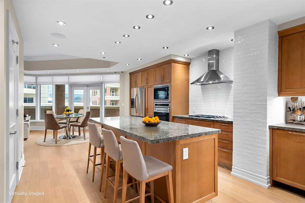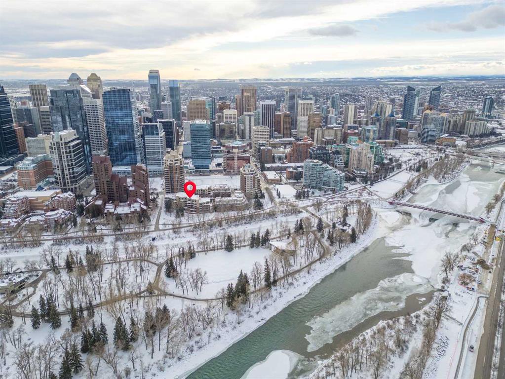 For those who value excellence, this distinctive executive residence in the Princeton Grand, a name synonymous with exclusivity, privacy, and luxury, is set amidst the most desirable residential enclave in Eau Claire. Your lifestyle will appreciate the opulent convenience of a private in-suite elevator coupled with exceptional amenities including 24 hour dedicated concierge, temperature controlled wine room with private storage lockers & tasting room, events area with full kitchen, TV’s and terrace, 2 private guest suites, a fully equipped fitness centre, yoga centre, steam room, dry sauna, showers, change room with lockers, full kitchen & bathroom, full service U/G car wash bay, bicycle storage, and a separate freight elevator. The beautifully manicured grounds create a private park-like setting, nestled along the south bank of the Bow River next to beautiful Prince's Island Park and incredible Pathway System! Walking distance to office towers, shopping, entertainment, restaurants, +15 skywalk system, transportation and the LRT, Peace Bridge, Kensington Shops and Calgary's vibrant City Center. Presenting a rare offering of 2892 sq.ft. of harmoniously appointed living space displaying the highest level of craftsmanship and luxurious interior tailoring, with pride of ownership complimenting the timeless prairie palette that flows seamlessly throughout the integrated floor plan that embraces the stunning backdrop of the Bow River. This exceptional luxury residence features a private elevator for the ultimate in convenience which opens to your stylish and spacious foyer, and then presents an exceptionally open entertaining floor plan, large floor to ceiling windows that provide exceptional natural light, with the open concept living/dining areas overlooking the private treed views to the Bow River. The master quarters overlooks the river and offers a large walk-in closet, relaxing, sensual 5 piece spa inspired ensuite with heated floors, a convenient office area and direct access to the expansive north terrace overlooking the Bow River and Prince's Island. The very private second bedroom is totally secluded from the living areas. The bright professional-grade gourmet kitchen was designed as the epicenter of the space with direct access to the south terrace, coupled with the north terrace can accommodate gatherings of all sizes. This peaceful and park-like setting offers two spectacular and spacious outdoor living spaces, a stunning 680 sq ft covered deck overlooking the mature trees and Bow River to the north, and a second sunny south facing covered balcony off the kitchen and family room, great for year round BBQs. An exceptional floor plan that's perfect for entertaining. Home includes built-in speaker system, vacuum system, a wine fridge, 1 gas fireplace, high ceilings, lge bright windows, 2 titled parking stalls and titled storage locker. Enjoy your refined lifestyle against a backdrop of luxury services, finishes and accoutrements in the Princeton Grand.