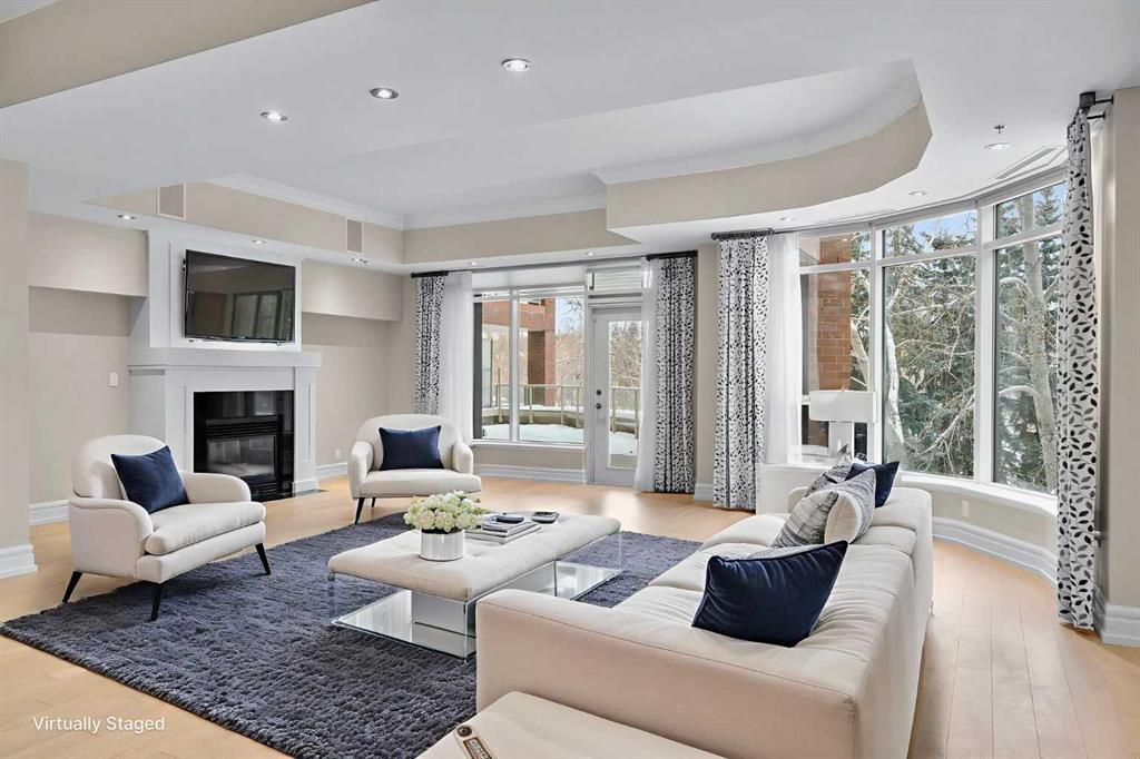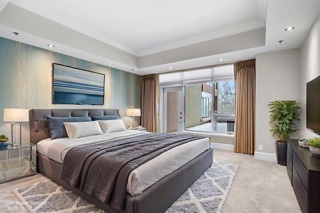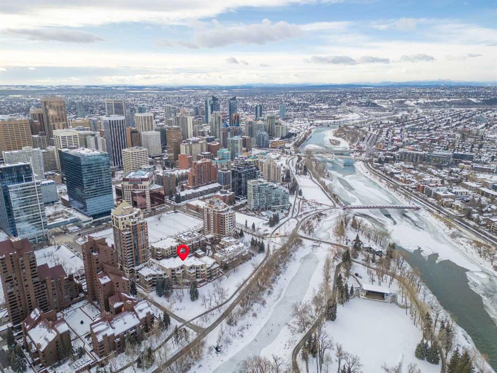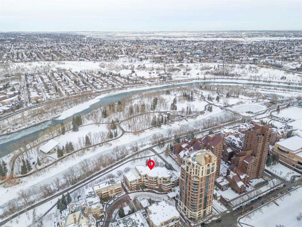 For those who value excellence, this distinctive executive residence in the Princeton Grand, a name synonymous with exclusivity, privacy, and luxury, is set amidst the most desirable residential enclave in Eau Claire. Your lifestyle will appreciate the opulent convenience of a private in-suite elevator coupled with exceptional amenities including 24 hour dedicated concierge, temperature controlled wine room with private storage lockers & tasting room, events area with full kitchen, TV’s and terrace, 2 private guest suites, a fully equipped fitness centre, yoga centre, steam room, dry sauna, showers, change room with lockers, full kitchen & bathroom, full service U/G car wash bay, bicycle storage, and a separate freight elevator. The beautifully manicured grounds create a private park-like setting, nestled along the south bank of the Bow River next to beautiful Prince's Island Park and incredible Pathway System! Walking distance to office towers, shopping, entertainment, restaurants, +15 skywalk system, transportation and the LRT, Peace Bridge, Kensington Shops and Calgary's vibrant City Center. Presenting a rare offering of 2892 sq.ft. of harmoniously appointed living space displaying the highest level of craftsmanship and luxurious interior tailoring, with pride of ownership complimenting the timeless prairie palette that flows seamlessly throughout the integrated floor plan that embraces the stunning backdrop of the Bow River. This exceptional luxury residence features a private elevator for the ultimate in convenience which opens to your stylish and spacious foyer, and then presents an exceptionally open entertaining floor plan, large floor to ceiling windows that provide exceptional natural light, with the open concept living/dining areas overlooking the private treed views to the Bow River. The master quarters overlooks the river and offers a large walk-in closet, relaxing, sensual 5 piece spa inspired ensuite with heated floors, a convenient office area and direct access to the expansive north terrace overlooking the Bow River and Prince's Island. The very private second bedroom is totally secluded from the living areas. The bright professional-grade gourmet kitchen was designed as the epicenter of the space with direct access to the south terrace, coupled with the north terrace can accommodate gatherings of all sizes. This peaceful and park-like setting offers two spectacular and spacious outdoor living spaces, a stunning 680 sq ft covered deck overlooking the mature trees and Bow River to the north, and a second sunny south facing covered balcony off the kitchen & family room, great for year round BBQs. An exceptional floor plan that's perfect for entertaining. Home includes built-in speaker system, vacuum system, a wine fridge, 1 gas fireplace, high ceilings, large bright windows, 2 titled parking stalls and titled storage locker. Enjoy your refined lifestyle against a backdrop of luxury services, finishes and accoutrements in the Princeton Grand.