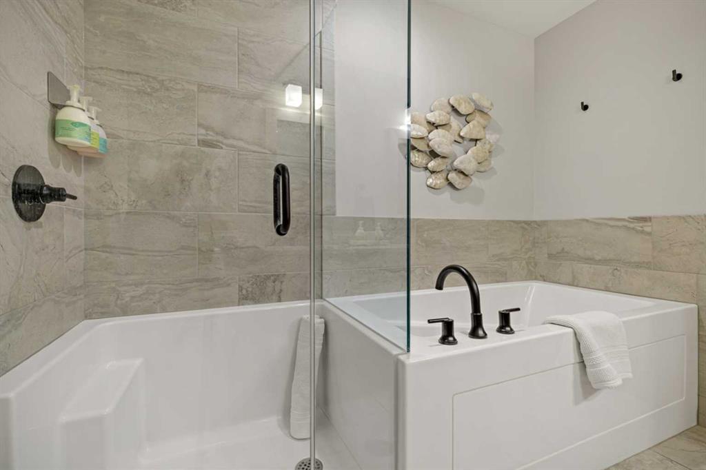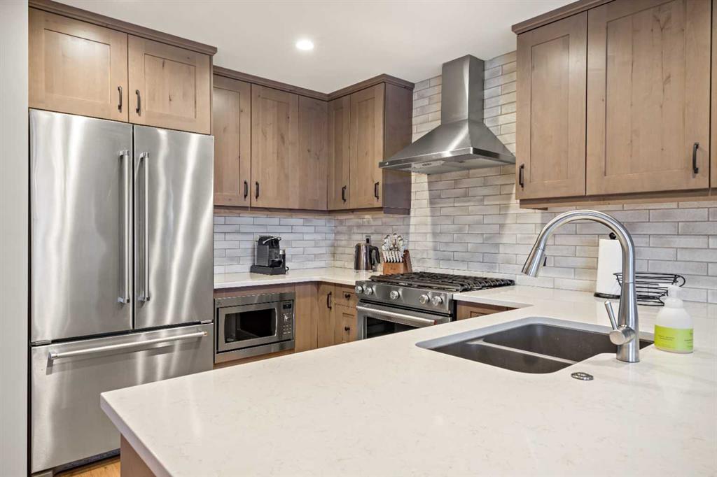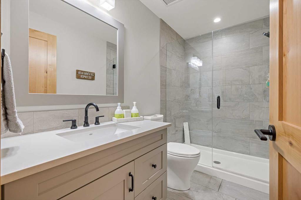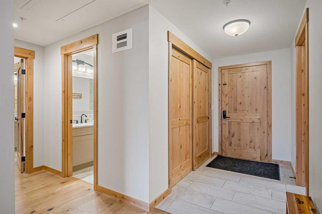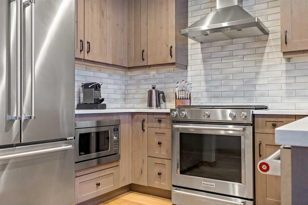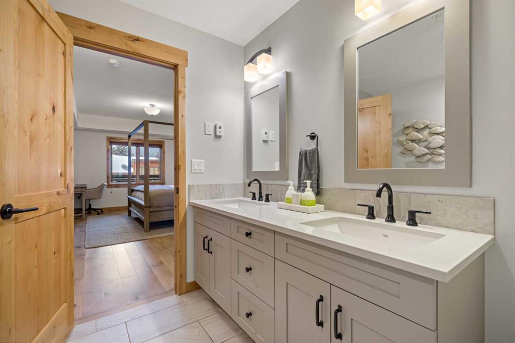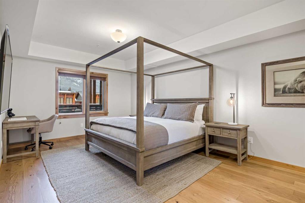 Immaculate and rare 2-bedroom plus den (functions as 3rd bedroom) luxury condominium in White Spruce Lodge in the heart of Spring Creek. This property carries the "tourist home" designation permitting short-term vacation rentals. Sold fully furnished and turn-key for immediate rentals, with many reservations already on the books for 2026! Owners and rental gusts will enjoy the open concept living with spacious living areas ideal for families or gatherings with a large gourmet kitchen complete with stainless appliances, quartz counters and plenty of cabinet space, a large dining area and living room, perfect for entertaining. Enjoy outdoor living with 2 large covered decks, facing SW/W with great views of Ha Ling Peak and the entire Rundle Range. The den has two full size built in bunk beds, perfect for the kids! The large primary bedroom features king, a walk-in closet and 5 piece ensuite. White Spruce Lodge has an inviting courtyard hot tub with fantastic views and an exercise room on the main level. White Spruce Lodge is located adjacent to the Plaza in Spring Creek with shops, Bridgette Bar restaurant and is just a short stroll to Main Street Canmore along the lovely creek paths to downtown.
