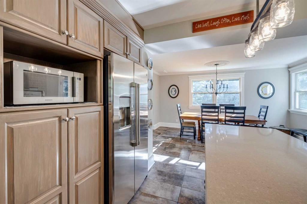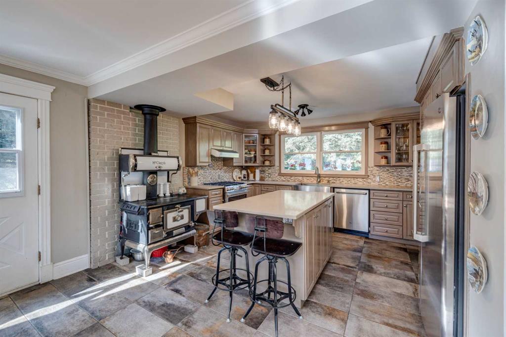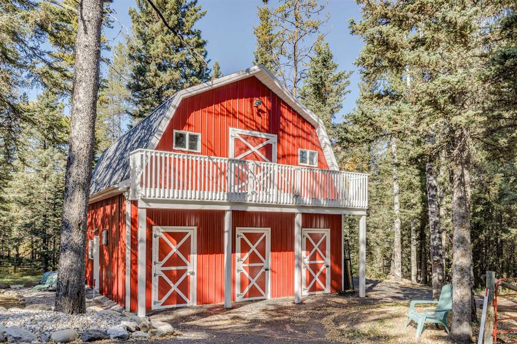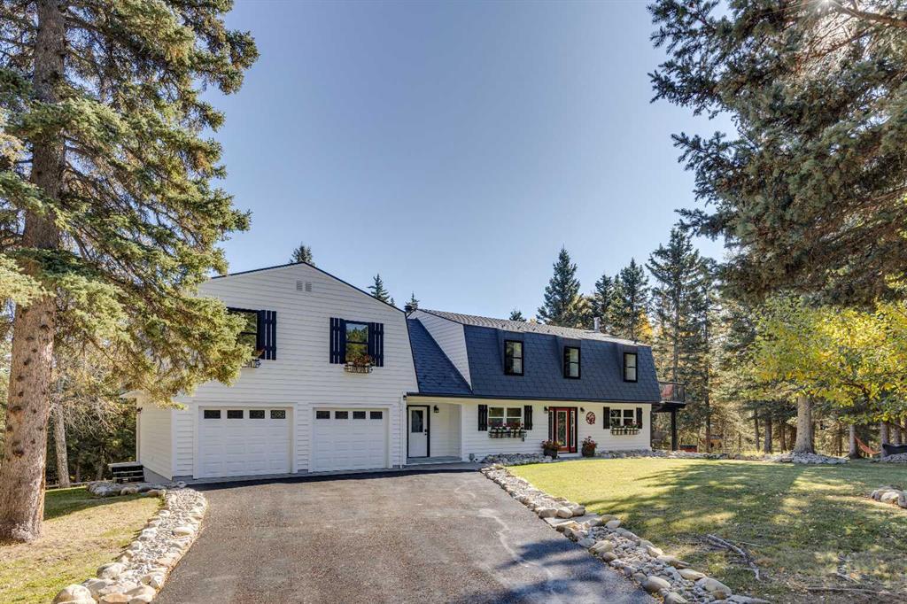 Experience the best of country living on nearly six beautiful acres of mixed forest and open yard. This inviting two-storey home combines rural charm with thoughtful modern updates, offering comfort, character, and versatility for today’s lifestyle. Inside, the heart of the home is the updated kitchen featuring Caesarstone counters, abundant cabinetry, and a refurbished 1922 McClary’s stove, a true conversation piece. A hidden pantry tucked behind a bookshelf adds both charm and practicality. The cozy dining area and spacious living room with a wood-burning fireplace create a warm and welcoming atmosphere for family and friends. Upstairs, you’ll find three bedrooms, bright living spaces, and peaceful views of the surrounding trees and property from every window. The attached double garage includes a developed upper level that can function as a self-contained living space, (POTENTIAL MORTGAGE HELPER) complete with its own kitchen, living and dining areas, full bathroom, and bedroom. With adjoining doors, this flexible space can serve as a one or two-bedroom suite, ideal for extended family, guests, or even a private rental or nanny suite. The unfinished basement under the garage, already complete with an epoxy floor, offers potential for a home gym or storage. Outdoors, the paved driveway leads to a charming two-storey red barn featuring horse stalls, a tack room, office, and an upper-level space perfect for hobbies, gatherings, or movie nights. Two storage sheds and horse-fenced areas with paddocks and a water system are ready for your equestrian pursuits. Surrounded by mature trees and the tranquility of nature, this property offers privacy and space to breathe, while keeping you CLOSE TO BRAGG CREEK'S SHOPS, EXTENSIVE TRAILS, and an EASY COMMUTE TO THE CITY. A truly special property where comfort, creativity, and country living come together.