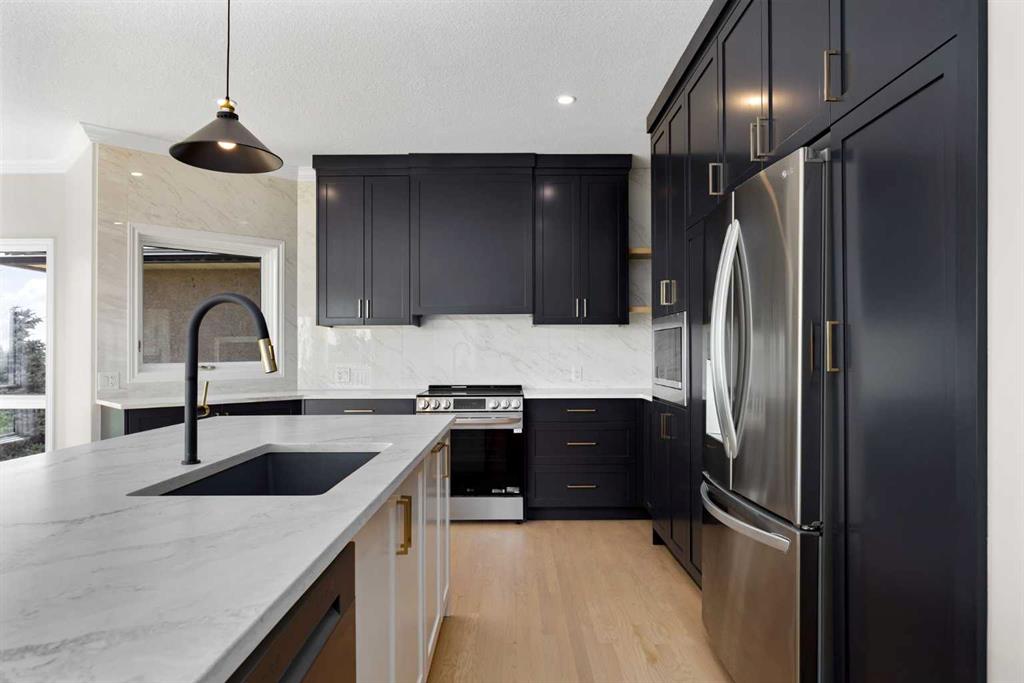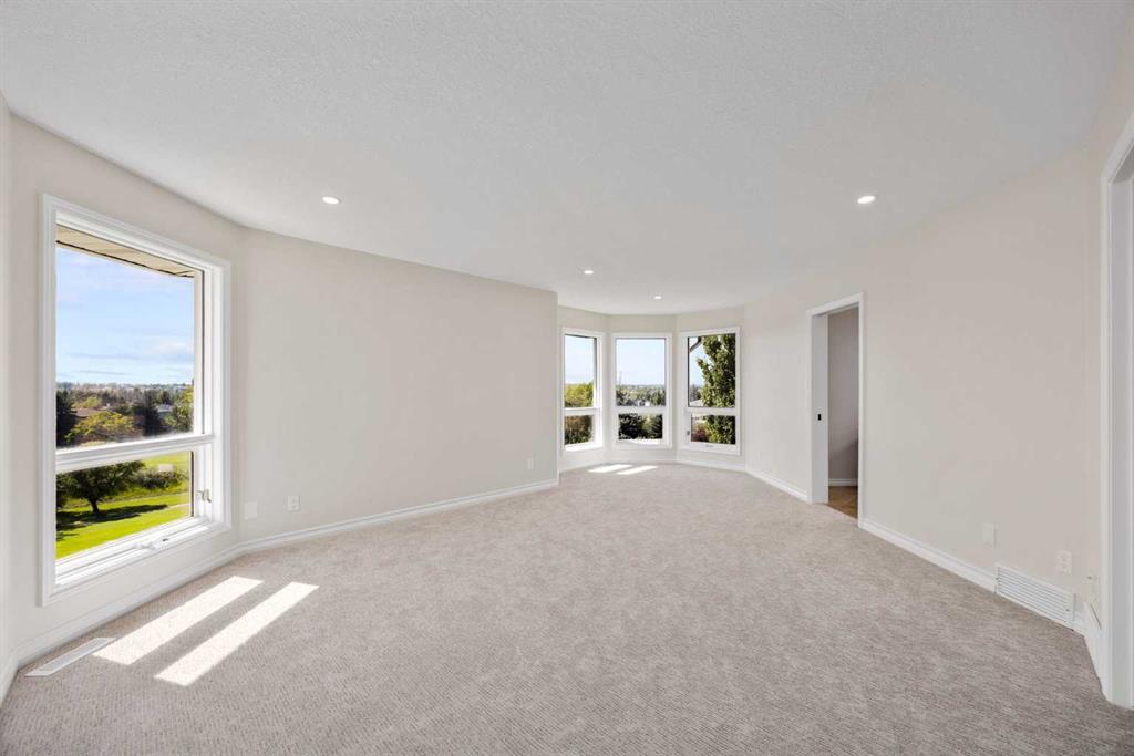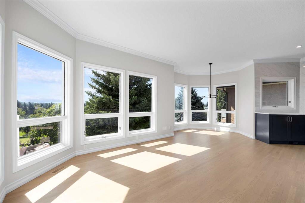 Where Calgary meets the romance of the foothills, this Douglas Woods retreat redefines what it means to “live on the course.” Backing directly onto Eaglequest Golf Course, every sunset here feels like a painting—an unbroken canvas of western skies and the full Rocky Mountain range as your backdrop. From the very first step, this home makes an impression. Brick planters frame the double-wide front doors, welcoming you into a grand open foyer where a dramatic living room with 12-foot ceilings unfolds before you. At its center, a commanding open staircase rises like sculpture—an architectural focal point that ties the entire home together. Three expansive living room windows flood the space with natural light, while automatic rolling shutters offer instant shade (and privacy) at the touch of a button. Inside, 2,800 sq.ft. above grade + a fully developed 1,700 sq.ft. walkout basement have been completely reimagined, blending modern refinement with Alberta’s rustic soul. The custom kitchen is a showpiece—white quartz counters, sleek new stainless steel appliances, and cabinetry that feels as crafted as it is functional. Refinished hardwood glows underfoot, while plush new carpets (think clouds, but softer) run through the private spaces upstairs. Two brick, wood-burning fireplaces anchor the home, casting a golden warmth that feels unmistakably “Alberta”—whether it’s a winter evening curled up with a glass of wine or a spring morning with coffee and the paper. Downstairs, the walkout basement offers another world entirely: almost 1,700 square feet of entertaining space, wrapped in the original stained wood trim and built-ins—a deliberate nod to cabin charm and the Western heritage that defines this province. Swing open the doors and you’re hosting friends by the firepit, the golf course rolling out behind you like your own private acreage. Beyond the walls, the property is equipped for the heart and soul of a gardener—with a wooden shed and greenhouse ready for the next season’s plantings. This is the home that catches your breath, then slows it. The one that gives you mountains at dinner, golf course greens at dawn, and a lifestyle that feels both elevated and rooted. Welcome to Douglas Woods. Where Calgary meets the West.