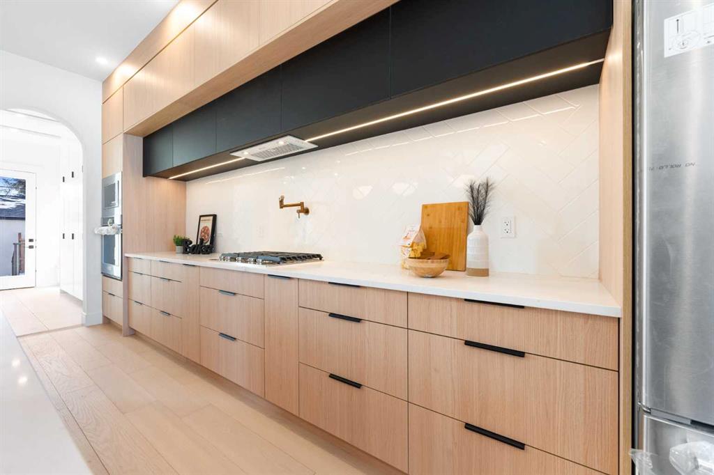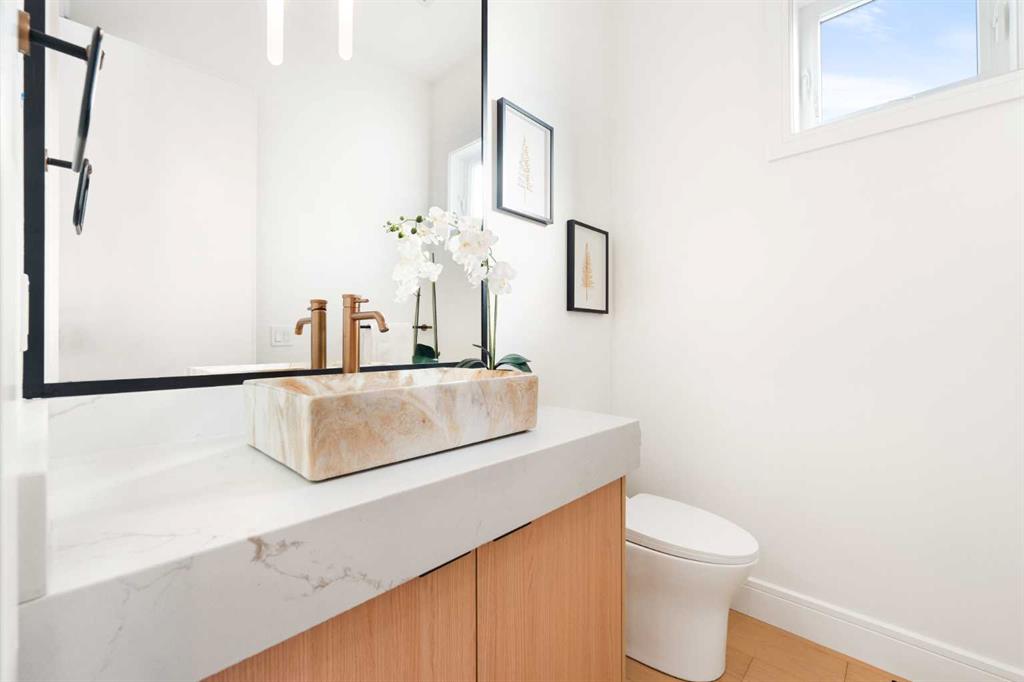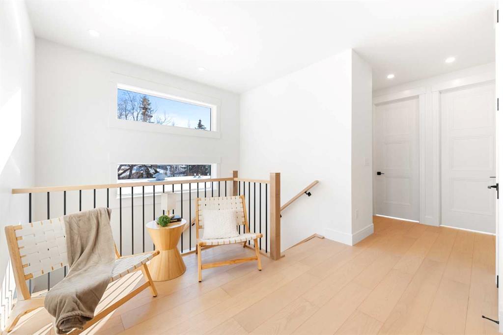 Discover this stunning, highly UPGRADED DESIGNER SEMI-DETACHED infill offering over 2,900 sq ft of meticulously designed living space, including 5 BEDROOMS and a fully developed LEGAL 2-BEDROOM BASEMENT SUITE with private entrance and separate laundry perfect for extended family, a live-in nanny, or generating rental income. Ideally located within walking distance to the WINSTON GOLF CLUB, this home seamlessly blends upscale finishes, thoughtful functionality, and an unbeatable inner-city lifestyle. Step inside to an open, airy main floor featuring soaring 10’ CEILING, 8’ DOORS, and rich HARDWOOD FLOORING throughout the main and upper levels. The spacious dining area, framed by large windows, creates the perfect setting for both elegant entertaining and everyday family meals. The DESIGNER KITCHEN is a true showpiece complete with a HIGH-END APPLIANCE PACKAGE, POT FILLER, gas cooktop, built-in oven/microwave, massive quartz island with breakfast bar seating, and sleek full-height custom cabinetry. A walk-through PANTRY with built-in shelving connects directly to the rear mudroom, adding everyday convenience and smart storage. At the rear of the home, the inviting living room is anchored by a cozy fireplace and oversized 10-foot sliding door that open to the WEST-facing backyard, flooding the space with natural light. A stylish designer powder room completes the main level. Upstairs, you’ll find three generously sized bedrooms designed with comfort in mind. The primary retreat offers a spa-inspired ensuite featuring HEATED FLOOR, a deep soaker tub, glass-enclosed shower, dual vanities, and a spacious walk-in closet. Two additional bedrooms, a modern 4-piece bathroom, a tiled laundry room with sink, and a versatile BONUS AREA ideal as a home office, reading nook, or kids play space complete the upper level. The fully developed LEGAL 2-BEDROOM LOWER SUITE (subject to city approval) offers exceptional flexibility and income potential. With its own private side entrance, this bright suite includes a contemporary KITCHEN with quartz countertops and full-height cabinetry, stainless steel appliances, a spacious living area, modern 4-piece bath, separate laundry, and two generous bedrooms. Outside, enjoy your private west-facing backyard oasis featuring a WOODEN DECK and full fencing perfect for relaxing evenings or entertaining guests. A double DETACHED GARAGE provides ample space for vehicles, storage, and tools. Situated in the vibrant community of WINSTON HEIGHTS, residents enjoy access to top-rated schools, grocery stores, recreation and aquatic centre, golf, soccer fields, tennis courts, and off-leash parks. Scenic walking and cycling pathways are just steps away, while shopping, dining, and downtown Calgary are only minutes away with convenient access to 16 Ave and Deerfoot Trail.