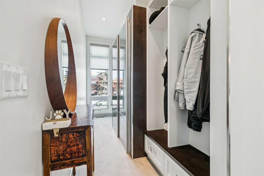 Front attached garage in the inner City!! Rare find. This high end custom executive home features; Kohler sinks and toilets throughout, Riobel faucets throughout, granite in all bathrooms and laundry room, flat ceiling throughout, locker system in the front hall, feature stone wall in the living room and stairwell, built in sound system, frosted privacy windows in the living room, 6 burner gas stove, wine fridge, shadow boxes in the kitchen, walk in closets with wood builtins in all bedrooms, central air conditioning, epoxy flooring in the garage, exposed aggregate driveway and walkways, gas fireplace on the rear deck, rooftop deck with all day sun and views of downtown.........Wow. The floorplan is open and bright with floor to ceiling windows. The dining room and living room areas could be reversed depending on the buyers preference. Large gourmet kitchen with a huge island and feature backsplash and hoodfan. Three large bedrooms upstairs all with walkin closets with wood built in organizers. The basement offers a 13x18 flex room with a 3pc bath and walkin closet. Ideal for a home gym, gear room or dream teenager bedroom. Two outdoor living spaces, one in the rear yard and the other is a rooftop deck. Great access to downtown, river pathway system and the mountains.