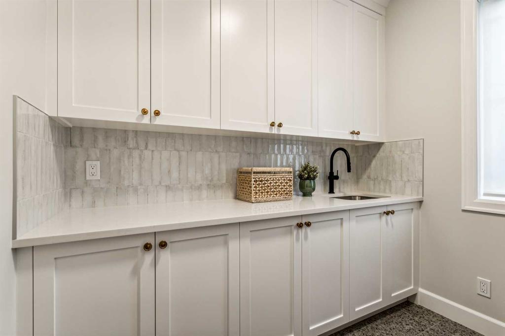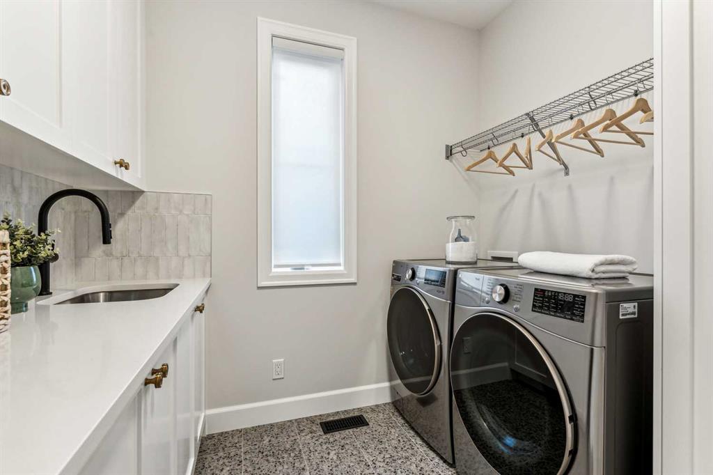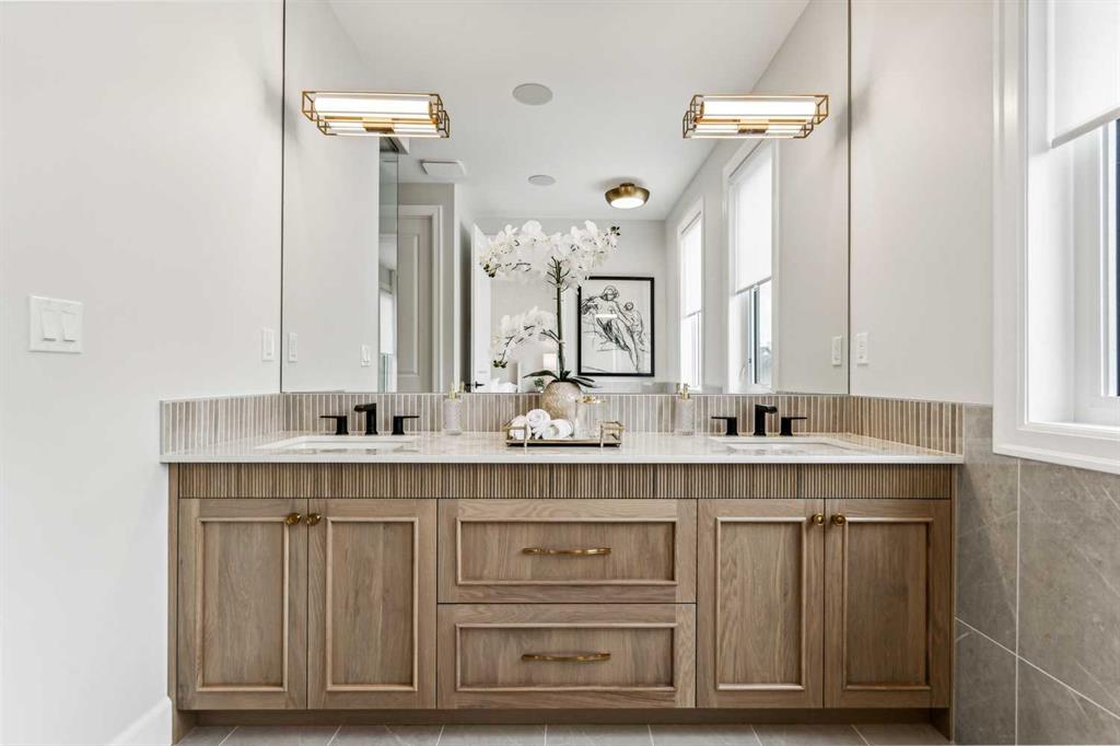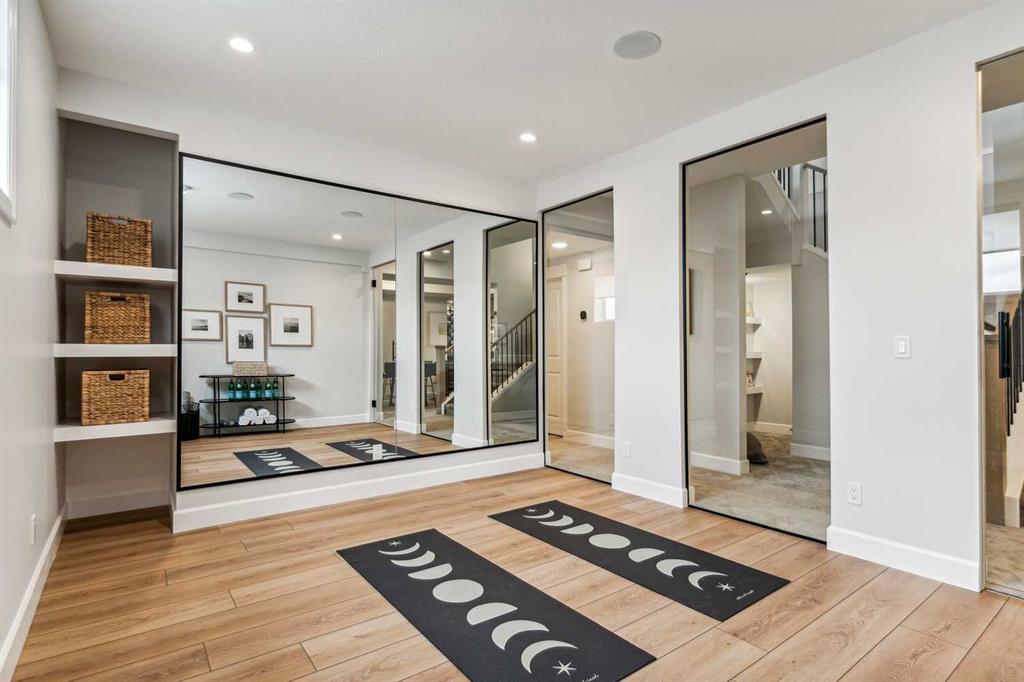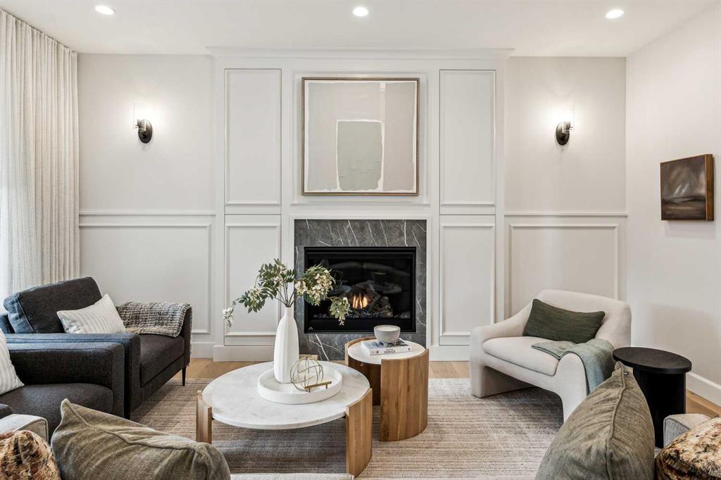 Welcome to this exquisitely crafted residence by Homes By Us, where timeless design meets modern luxury. Located in the highly sought-after community of Currie Barracks, this home presents a rare opportunity to invest in both elevated living with a whole extra level which is ideal for multigenerational living, office space, or a private guest retreat. Inside, every detail has been thoughtfully curated. The gourmet kitchen is a chef’s dream, anchored by striking Dekton countertops and full-height backsplash, combining refined aesthetics with superior durability. The powder room exudes contemporary elegance with a bold apron sink and wall-mounted toilet, creating a sleek, minimalist look. Full height glass walls accent the den on the main floor as well as the fitness space in the basement, allowing natural light to flow while maintaining separation and style. Upstairs, you’ll find three generous sized bedrooms, including a sophisticated primary suite designed for relaxation and function. The fully developed basement expands your living options with an additional bedroom—perfect for guests or a home office. This home is complete with full landscaping and fencing, offering a private outdoor space without maintenance. Enjoy more time living in this vibrant area by stepping outside your door and into one of Calgary’s most walkable, park-filled communities. Whether it’s a stroll through nearby green spaces, a visit to local cafés, or a quick commute downtown, Currie offers urban living at its finest. This is more than just a home—it’s a lifestyle investment, combining architectural excellence, and everyday ease. Don’t miss your chance to make it yours! Please note this is a showhome, with regular showhome hours. Come by and visit Monday-Thursday 2PM-8PM or Sat/Sun Noon-5PM.