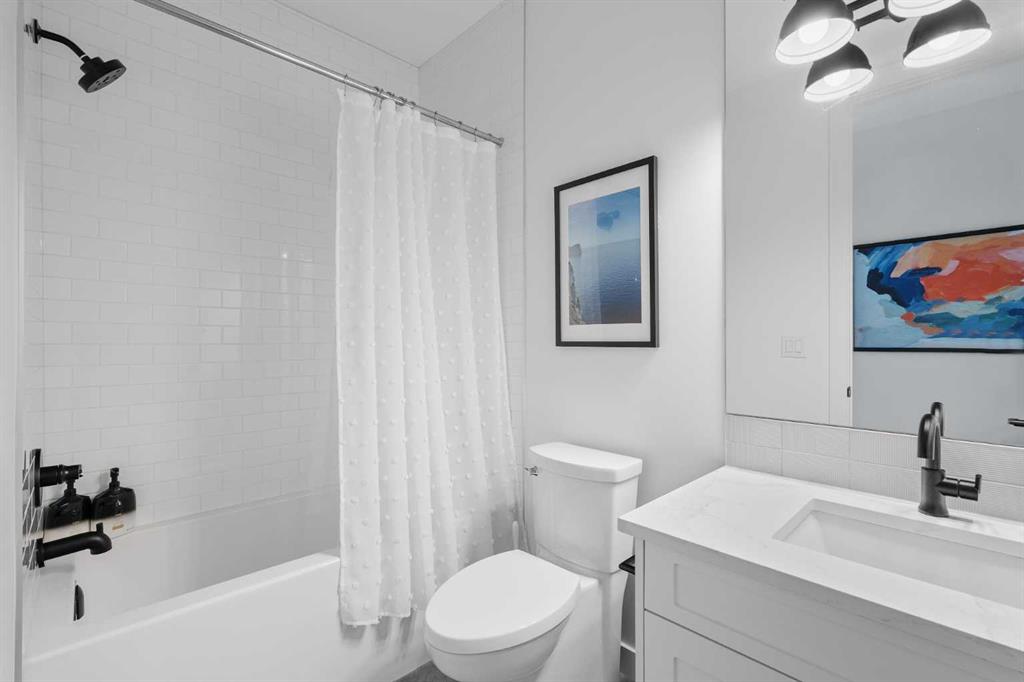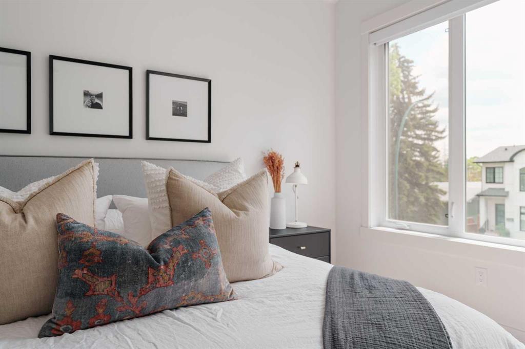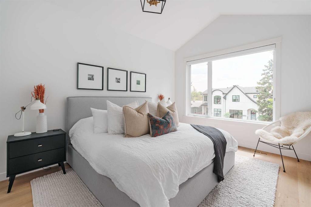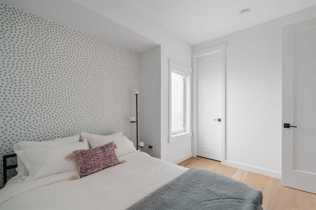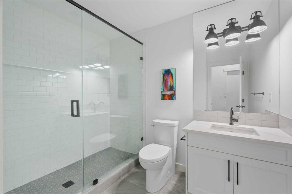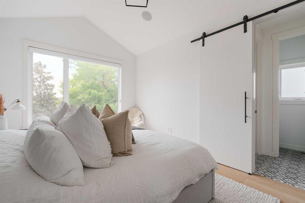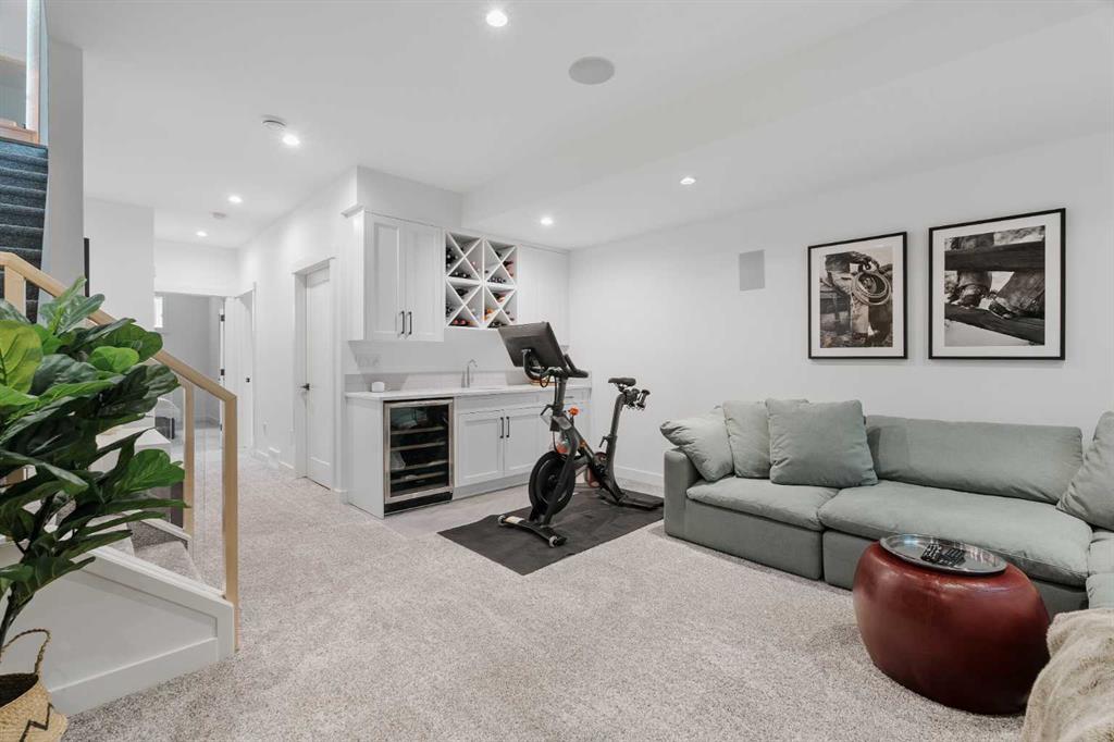 From the moment you step inside, this beautifully appointed and impeccably finished semi-detached home offers an elevated sense of style, comfort, and understated luxury, with beautiful natural light that pours through the open-concept main floor and Hunter Douglas blinds throughout. Just off the front entry is the formal dining room, offering a refined space for hosting and everyday gathering alike. From there, the main floor unfolds into a stunning central kitchen, thoughtfully designed to balance beauty and practicality. Crisp white cabinetry is paired with quartz countertops, striking geometric backsplash, and stainless-steel appliances including a gas range, while the large centre island with seating creates an inviting focal point for casual dining, conversation, and culinary creativity. An upgraded wood plank ceiling detail adds architectural interest, and pendant lighting paired with recessed lighting brings a polished, elevated finish to the space. At the rear of the home, the living room feels both inviting and sophisticated, centred around a gas fireplace and panelled feature wall, with views extending into the backyard. Near the back entry, a built-in bench with hooks creates a stylish everyday drop zone. An elegant staircase with glass and wood railings draws the eye upward, and as you ascend, you’ll discover a full bath, and three bedrooms with hardwood flooring throughout. The primary suite is a true retreat, beautifully appointed with a vaulted ceiling, a spacious walk-in closet with custom organizers, and a beautifully curated ensuite hidden behind a barn door. Finished with patterned tile floors, a freestanding soaker tub, a glass-enclosed walk-in shower, and a skylight, the space feels both serene and beautifully elevated. Hunter Douglas blinds continue on this level, including blackout blinds, add comfort and quality throughout the upper level. The fully developed basement offers exceptional additional living space, anchored by a spacious rec room with upgraded built-ins and a beautifully enhanced wet bar area, perfectly suited to entertaining or unwinding at the end of the day. A fourth bedroom, a full bathroom, and ample storage complete this lower level with both style and practicality. Outside, the backyard has been thoughtfully upgraded with premium artificial turf, creating a polished, low-maintenance outdoor setting, while the insulated garage adds further convenience. Additional upgrades include central air conditioning, a new roof (2024), a new hot water tank (2025), repainted fence and front shingles, dimmers throughout, HRV, and roughed-in speakers. Tucked into the heart of North Glenmore Park, the home enjoys a wealth of nearby recreation and proximity to schools. Close to the Glenmore Athletic Park, Lakeview and Earl Grey Golf course, reservoir pathways and Weaselhead Flats.