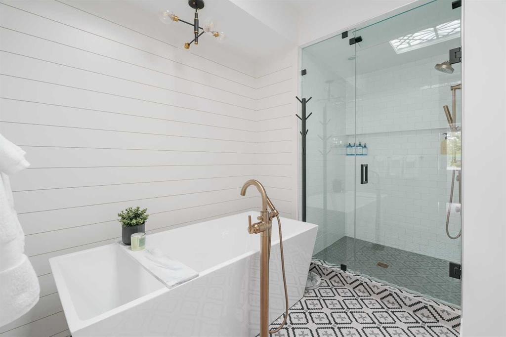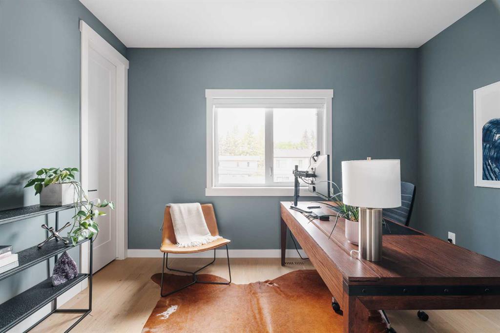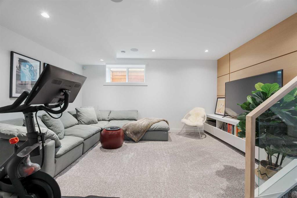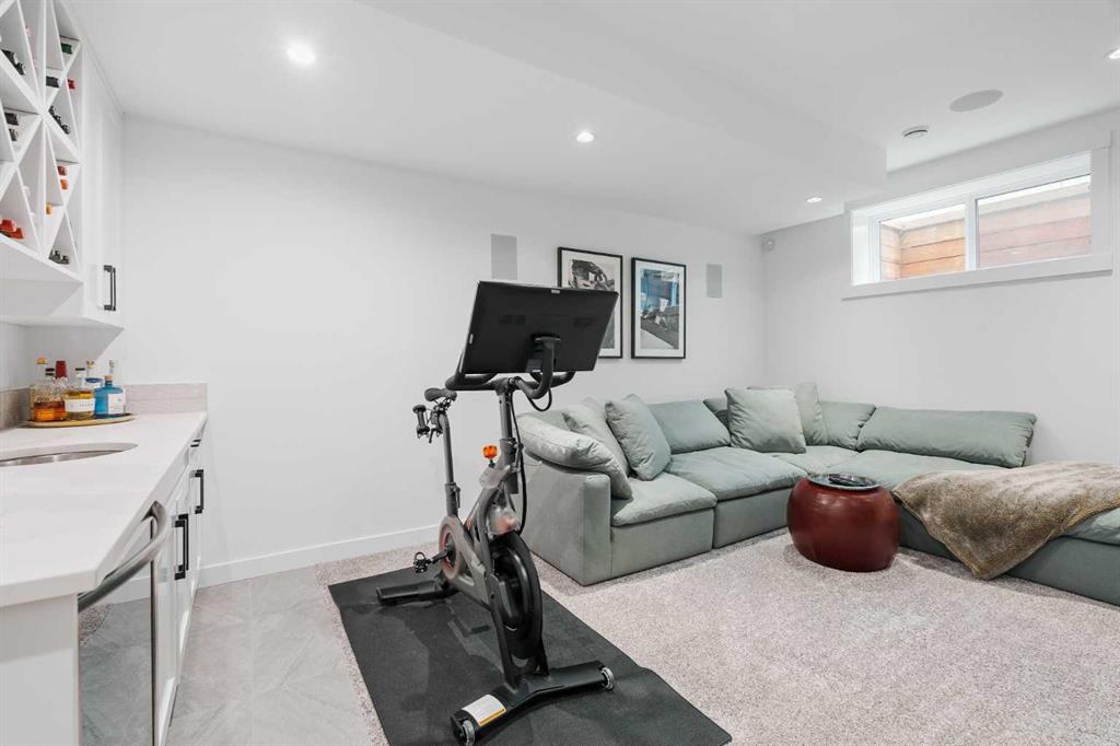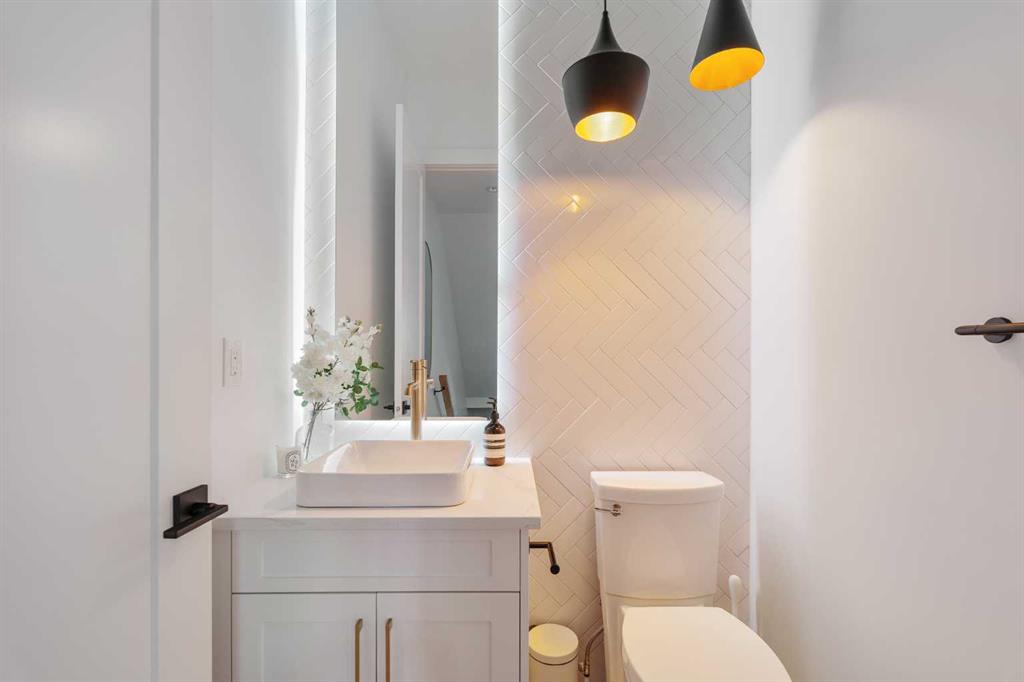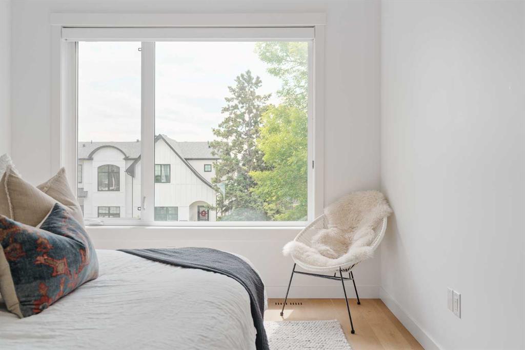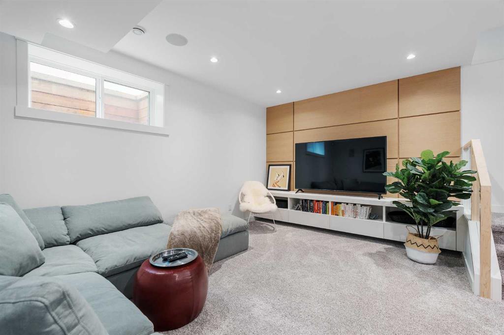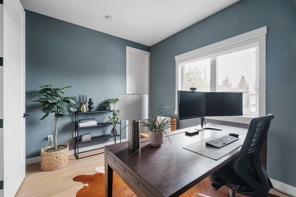 From the moment you step inside, this beautifully appointed and impeccably finished semi-detached home offers an elevated sense of style, comfort, and understated luxury, with beautiful natural light that pours through the open-concept main floor and Hunter Douglas blinds throughout. Just off the front entry is the formal dining room, offering a refined space for hosting and everyday gathering alike. From there, the main floor unfolds into a stunning central kitchen, thoughtfully designed to balance beauty and practicality. Crisp white cabinetry is paired with quartz countertops, striking geometric backsplash, and stainless-steel appliances including a gas range, while the large centre island with seating creates an inviting focal point for casual dining, conversation, and culinary creativity. An upgraded wood plank ceiling detail adds architectural interest, and pendant lighting paired with recessed lighting brings a polished, elevated finish to the space. At the rear of the home, the living room feels both inviting and sophisticated, centred around a gas fireplace and panelled feature wall, with views extending into the backyard. Near the back entry, a built-in bench with hooks creates a stylish everyday drop zone. An elegant staircase with glass and wood railings draws the eye upward, and as you ascend, you’ll discover a full bath, and three bedrooms with hardwood flooring throughout. The primary suite is a true retreat, beautifully appointed with a vaulted ceiling, a spacious walk-in closet with custom organizers, and a beautifully curated ensuite hidden behind a barn door. Finished with patterned tile floors, a freestanding soaker tub, a glass-enclosed walk-in shower, and a skylight, the space feels both serene and beautifully elevated. Hunter Douglas blinds continue on this level, including blackout blinds, add comfort and quality throughout the upper level. The fully developed basement offers exceptional additional living space, anchored by a spacious rec room with upgraded built-ins and a beautifully enhanced wet bar area, perfectly suited to entertaining or unwinding at the end of the day. A fourth bedroom, a full bathroom, and ample storage complete this lower level with both style and practicality. Outside, the backyard has been thoughtfully upgraded with premium artificial turf, creating a polished, low-maintenance outdoor setting, while the insulated garage adds further convenience. Additional upgrades include central air conditioning, a new roof (2024), a new hot water tank (2025), repainted fence and front shingles, dimmers throughout, HRV, and roughed-in speakers. Tucked into the heart of North Glenmore Park, the home enjoys a wealth of nearby recreation and proximity to schools. Close to the Glenmore Athletic Park, Lakeview and Earl Grey Golf course, reservoir pathways and Weaselhead Flats.