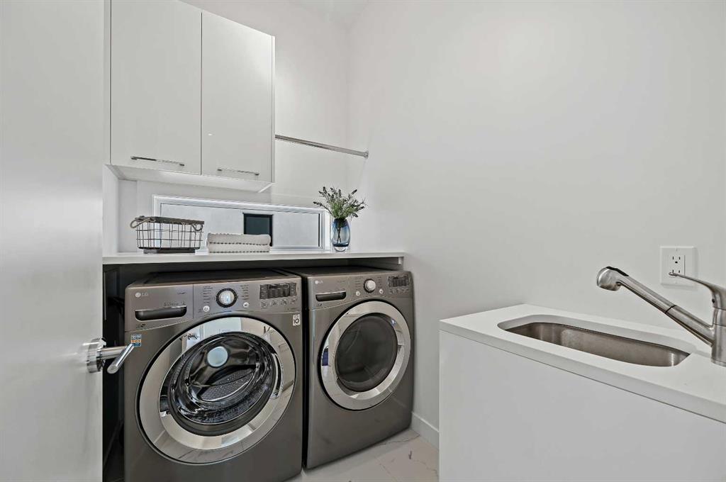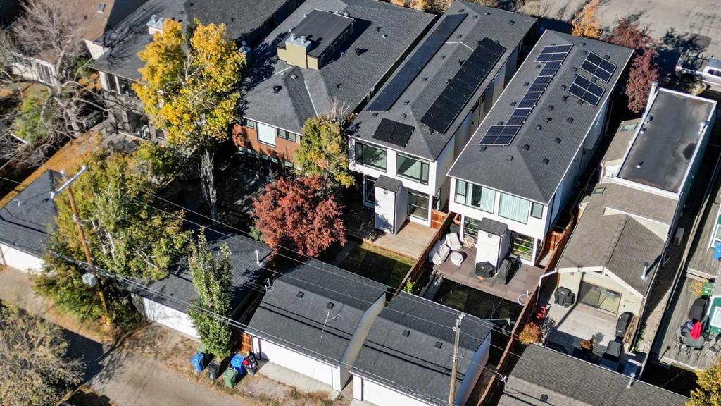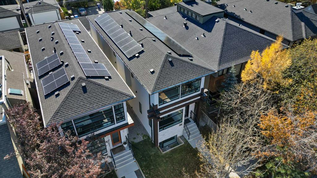 This stunning modern home in West Hillhurst, designed and built by Deanmark Custom Homes, blends European-inspired architecture with the comforts of luxurious urban living. Every detail reflects quality, comfort, and thoughtful design — from the creative open-concept layout that maximizes space and natural light, to the oversized ceiling heights and use of modern, natural, and durable finishes throughout. The main floor features gleaming hardwood and a centerpiece kitchen with a gas cooktop, built-in convection oven, quartz countertops, custom cabinetry, and a large island perfect for hosting. The kitchen opens into a bright, south-facing family room with a tile-wrapped gas fireplace and flows effortlessly to the low-maintenance south backyard. A detached garage includes an EV fast charger, ideal for eco-conscious city living. Upstairs, the spacious primary suite is a serene escape with a walk-in closet and luxurious 5-piece ensuite featuring in-floor heating. Two more bedrooms, a 4-piece bath, and a laundry room with a sink complete the upper level. The fully finished basement is great for guests and entertaining — enjoy the wet bar with fridge and microwave, a 4th bedroom, and a spa-style bathroom with steam shower. Additional features include A/C, vacuflo, water softener, filtration system, and roughed-in basement in-floor heat. Energy-efficient 9.8 kW solar panels make this home future-ready. All of this in a prime location just minutes to downtown, the Bow River, and endless walking and biking paths. This home is a must see to appreciate the quality of the home.