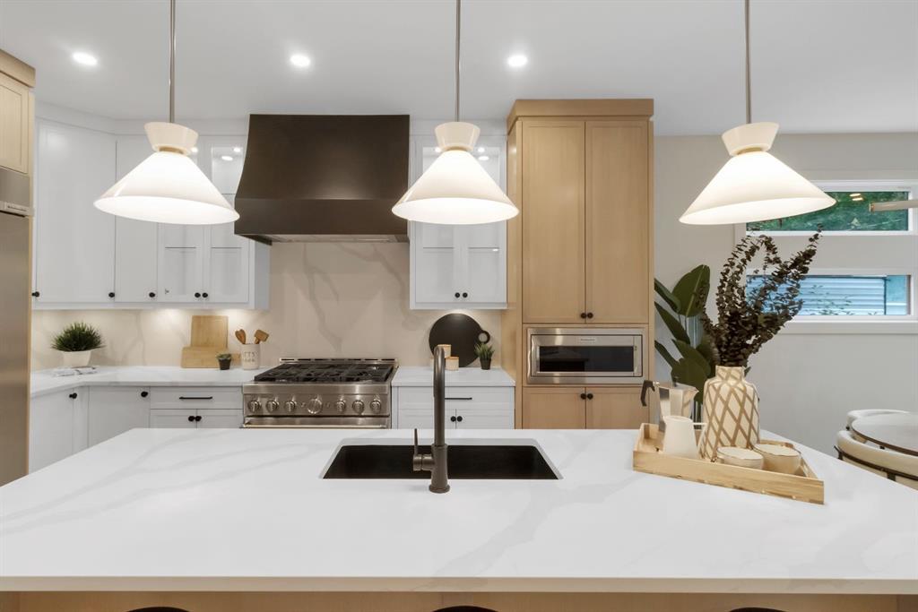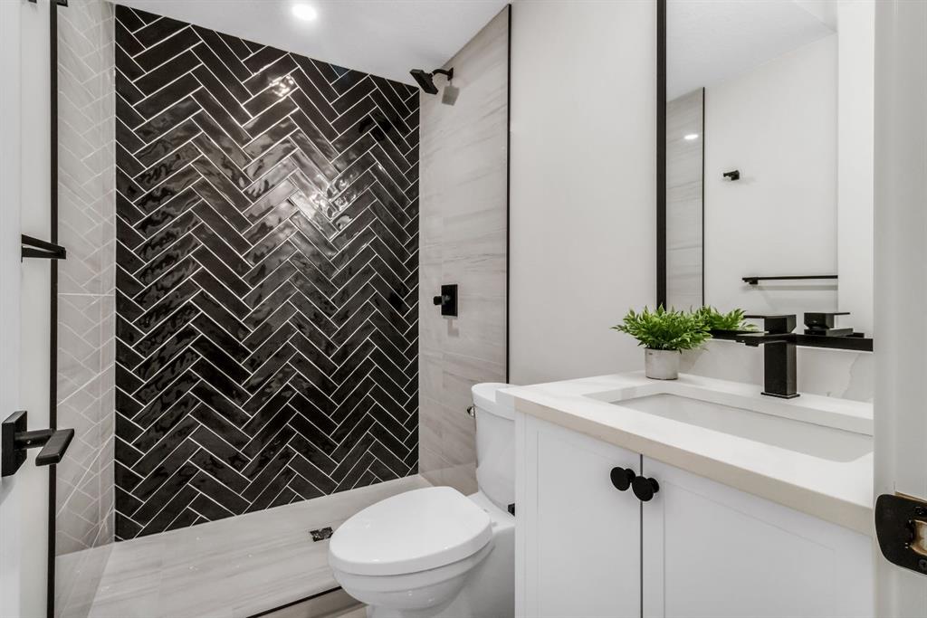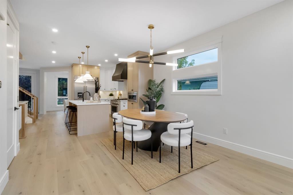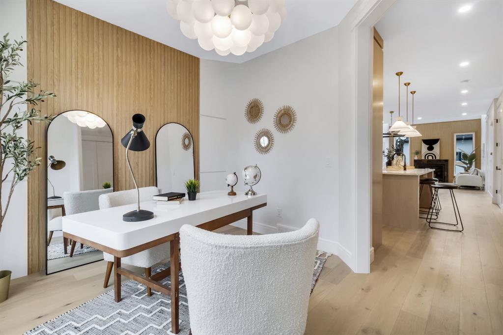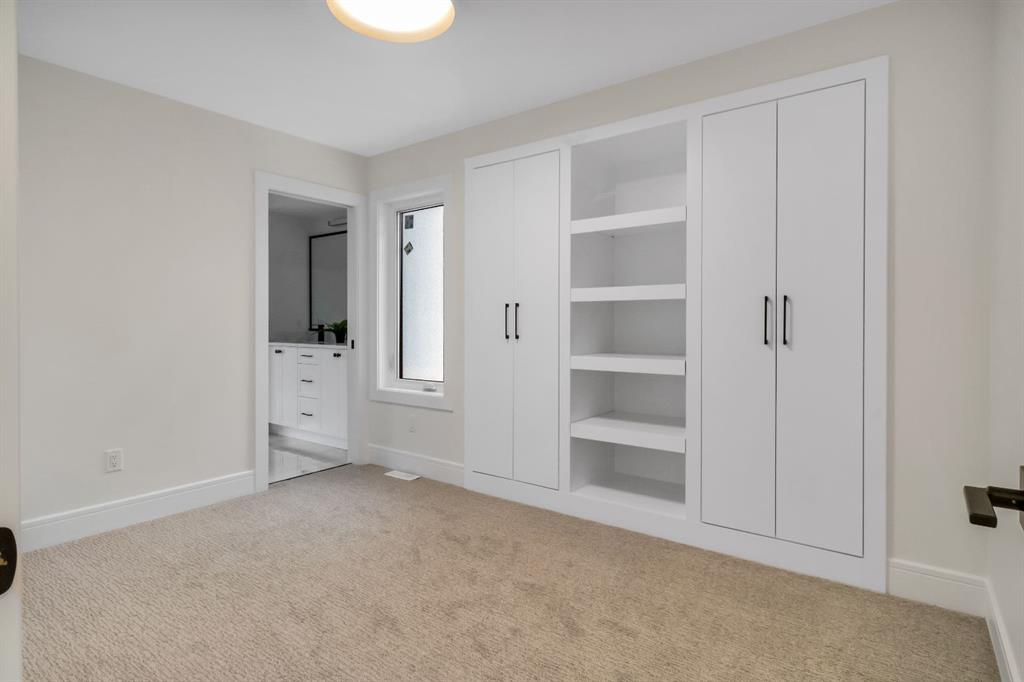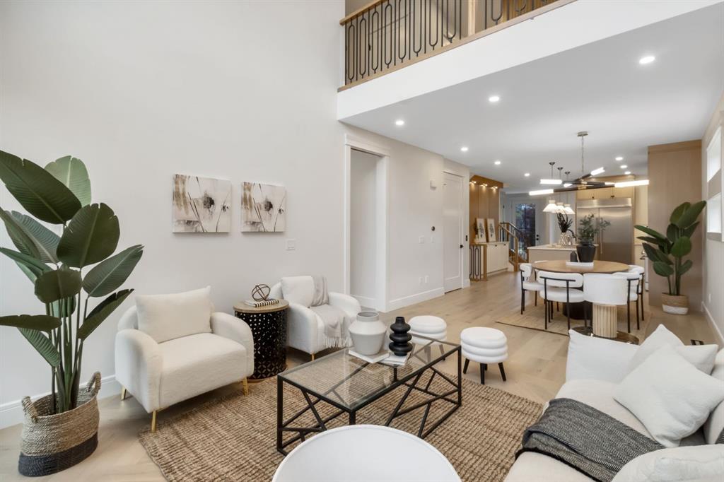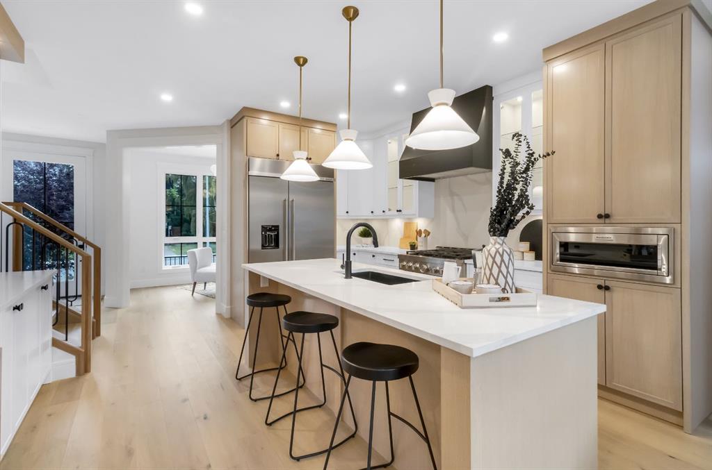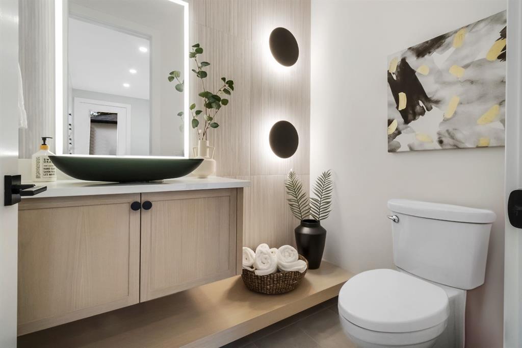 Welcome to this exceptional modern home nestled on a quiet, mature street in the heart of desirable Banff Trail, with a charming park right at your doorstep. Boasting over 3,800 square feet of thoughtfully designed living space across four levels—and serviced by a private elevator—this home seamlessly blends contemporary luxury with everyday comfort. Step into the elegant front den, where custom lighting and a statement feature wall offer a stylish first impression. The main level showcases wide-plank hardwood flooring and a soaring open-to-above layout that brings a dramatic sense of space to the living area. The gourmet kitchen is a true showstopper, equipped with premium appliances, including a 6-burner gas range, and framed by sleek finishes that will delight any culinary enthusiast. A chic powder room, complete with a standout vanity and playful designer lighting, adds personality, while the rear mudroom provides functional storage and access to the backyard. The second level is thoughtfully laid out with two large bedrooms, each featuring a built-in closet, and connected by a spacious Jack-and-Jill bathroom—perfect for family or guests. This floor also includes a cozy bonus room with a built-in bar and a large laundry area with everything you need for convenience. Ascend to the third floor to discover a private primary retreat spanning the entire level. This sanctuary features a generous bedroom, a coffee/wet bar, and a sunny balcony with peaceful views over the backyard and adjacent park. The custom walk-in closet is outfitted with high-end built-ins, and the spa-inspired ensuite is a true retreat, showcasing a dramatic black soaker tub, a double vanity, a stunning tile-clad steam shower, and floor-to-ceiling tile details. Downstairs, the fully finished basement continues to impress with a fourth bedroom, a stylish full bathroom with bold black tile accents, a dedicated home gym, and a spacious media room complete with a wet bar—ideal for movie nights or entertaining friends. Outside, the striking architectural is complemented by a welcoming front patio. With quick access to major routes, top schools, and nearby amenities, this home is a rare combination of style, functionality, and unbeatable location.