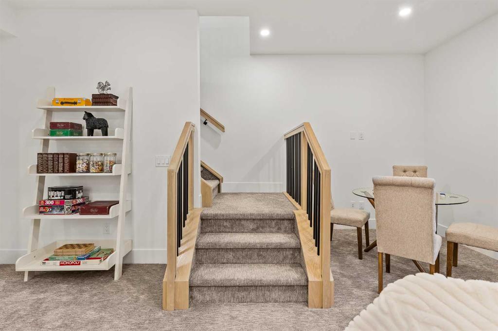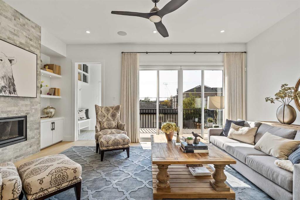 Built in 2022, this highly upgraded home in the heart of Marda Loop offers over 2,900 sq. ft. of thoughtfully designed living space (2,081 sq. ft. above grade plus 848 sq. ft. developed down).Inside, soaring 10 ft. ceilings, oversized windows, designer lighting, built-in speakers, and hardwood flooring create a bright and modern atmosphere. The gourmet kitchen impresses with industrial-sized appliances, a massive quartz island with breakfast bar, and a beverage centre and loads of built-ins. The living room features full-height cabinetry, a sleek linear fireplace with built-ins, and access to a spacious deck through oversized doors with custom privacy blinds. A dramatic dining room with extensive millwork and ripple-fold drapery completes the main floor, along with a custom mudroom designed for style and function. Upstairs, the luxurious primary retreat boasts a grand tray ceiling, LED feature wall, a walk-in closet with extensive built-ins, and a spa-inspired ensuite with in-floor heating, dual sinks, steam shower, and soaker tub. Two additional bedrooms, a full bathroom, and a large laundry room with sink and storage round out the level. With hardwood flooring and tile in the bathrooms, the only carpet is in the two bedrooms . The fully developed basement offers a large rec room with wet bar and cabinetry, a glass-enclosed gym, a spacious fourth bedroom with walk-in closet, and a stylish 4-piece bath.