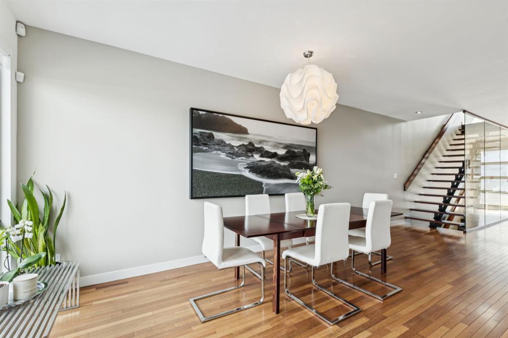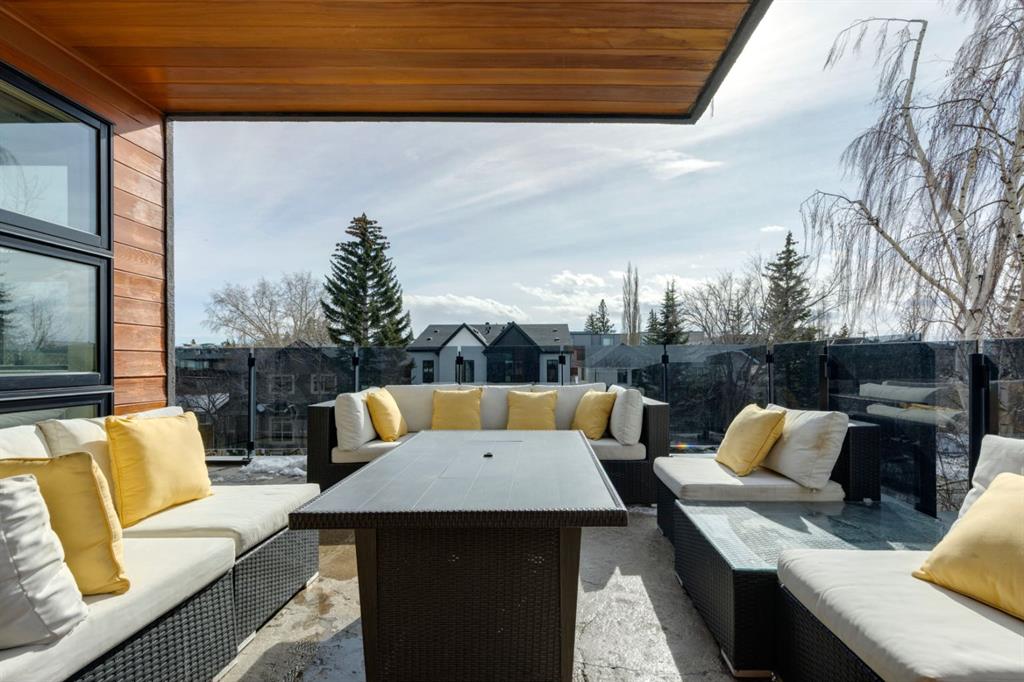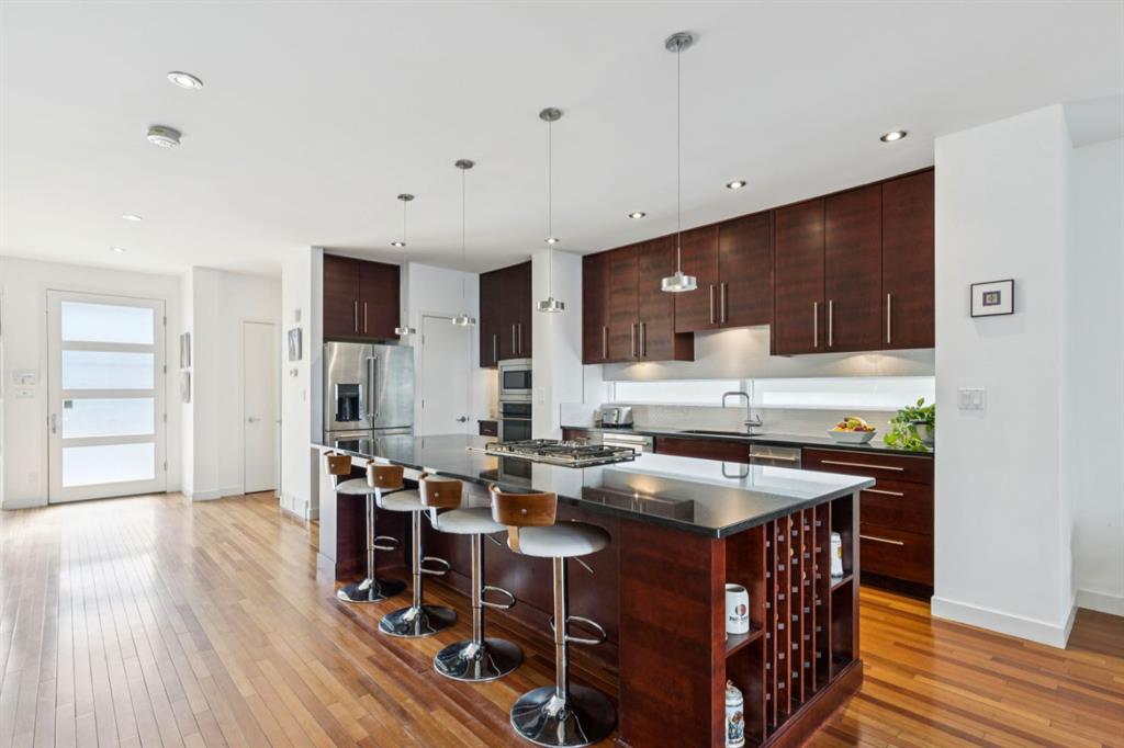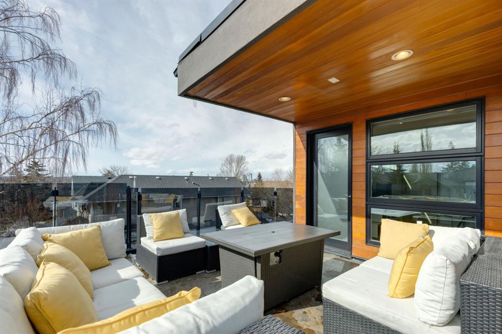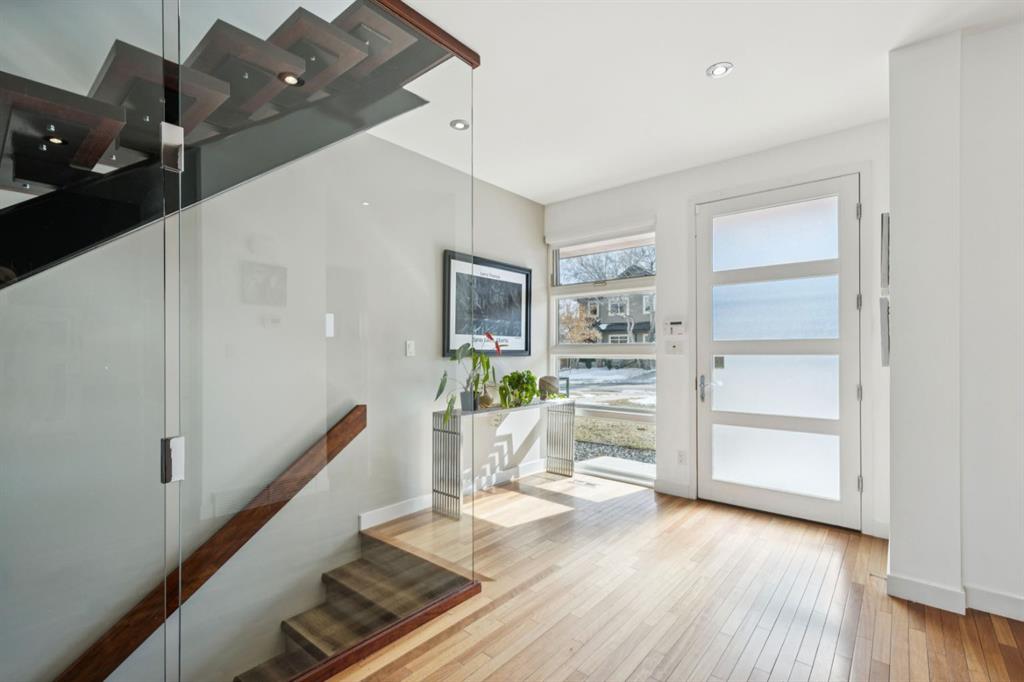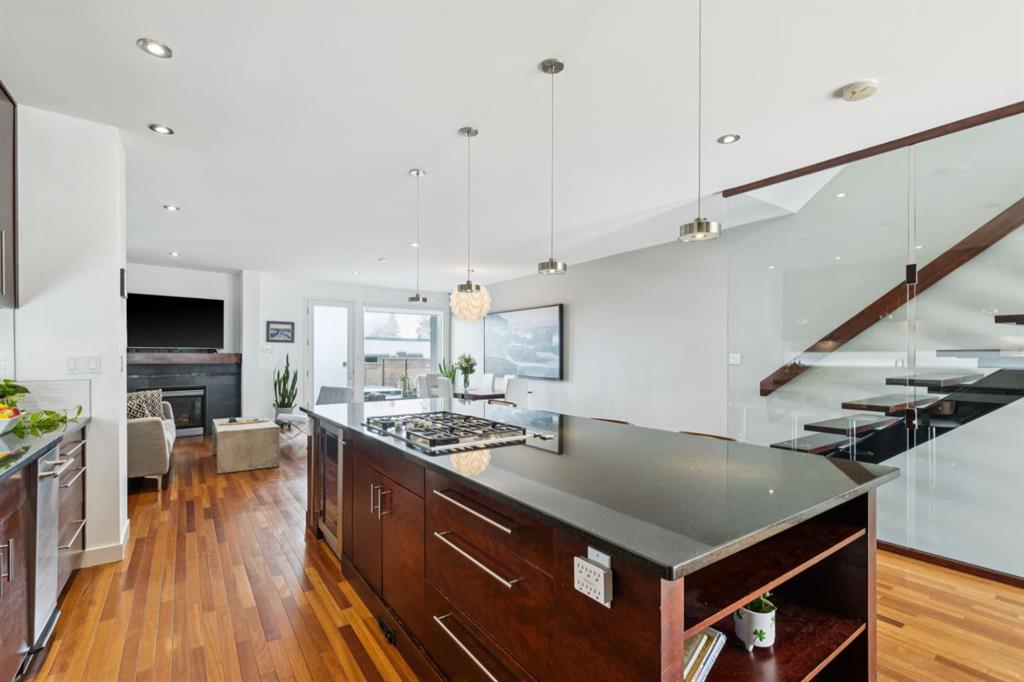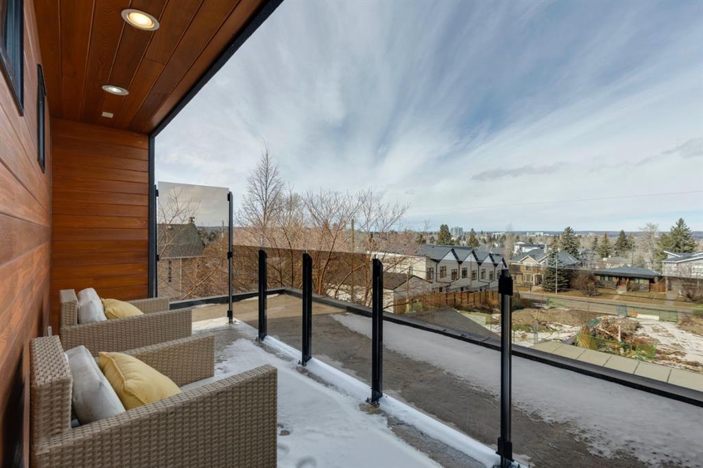 OPEN HOUSE – Sun March 15 (2:30-4:30pm) STRIKING architectural elements, a great location on the quiet side of Marda Loop, a three storey home with a SW terrace with MOUNTAIN VIEWS and a NW terrace with CITY VIEWS… where should we cocktail this evening? This home offers over 3400 sq ft of living space over FOUR levels… 3+1 beds and 4 en suites – FANTASTIC. On arrival you will be struck by 9 foot ceilings on the main, a broad open plan, maple hardwoods and a STRIKING open riser staircase, wrapped in glass – BEAUTIFUL! On the main there is a large, open living space, dining space and of course a fantastic kitchen. The kitchen features an over-sized center island/breakfast bar, s/s appliances including a gas cooktop, wall oven and compactor. The staircase leads to the second level where you will find a generous primary retreat and a second bedroom, each with FULL EN SUITES. The third level leads to the two terraces – WONDERFUL! This space presents as a Bonus/Rec Room but could easily convert to a 3rd bedroom up… with a full bath. The lower level has been fully developed offeringa warm and inviting family room with custom built-ins, another bedroom and full en suite. This home is ideally located atop the Richmond Knoll, offering wonder full VIEWS to the SW and NW, Mountains or city view… what are you feeling tonight?