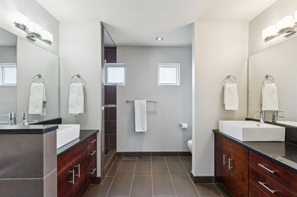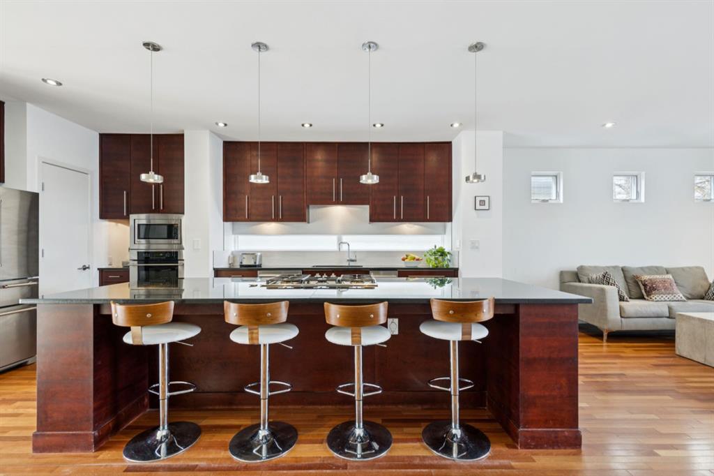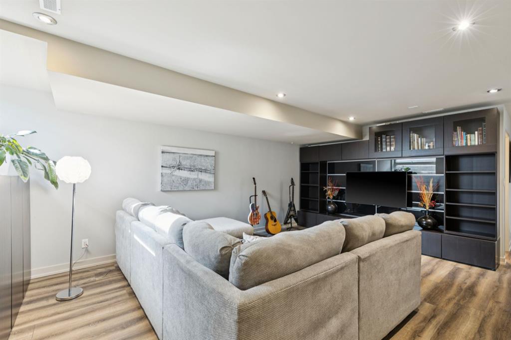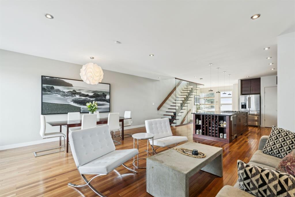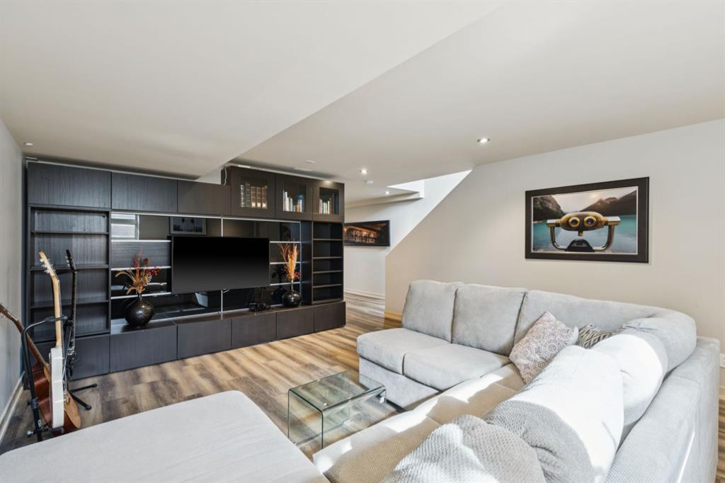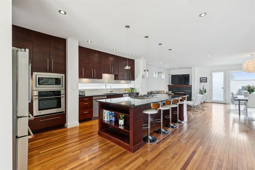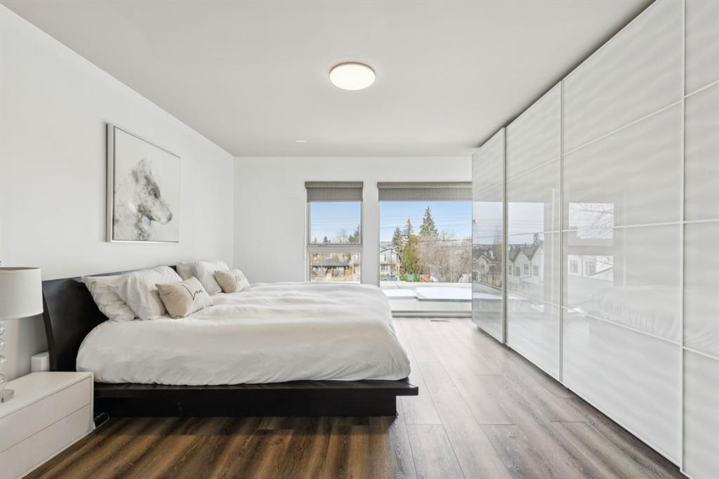 OPEN HOUSE – Sun March 15 (2:30-4:30pm) STRIKING architectural elements, a great location on the quiet side of Marda Loop, a three storey home with a SW terrace with MOUNTAIN VIEWS and a NW terrace with CITY VIEWS… where should we cocktail this evening? This home offers over 3400 sq ft of living space over FOUR levels… 3+1 beds and 4 en suites – FANTASTIC. On arrival you will be struck by 9 foot ceilings on the main, a broad open plan, maple hardwoods and a STRIKING open riser staircase, wrapped in glass – BEAUTIFUL! On the main there is a large, open living space, dining space and of course a fantastic kitchen. The kitchen features an over-sized center island/breakfast bar, s/s appliances including a gas cooktop, wall oven and compactor. The staircase leads to the second level where you will find a generous primary retreat and a second bedroom, each with FULL EN SUITES. The third level leads to the two terraces – WONDERFUL! This space presents as a Bonus/Rec Room but could easily convert to a 3rd bedroom up… with a full bath. The lower level has been fully developed offeringa warm and inviting family room with custom built-ins, another bedroom and full en suite. This home is ideally located atop the Richmond Knoll, offering wonder full VIEWS to the SW and NW, Mountains or city view… what are you feeling tonight?