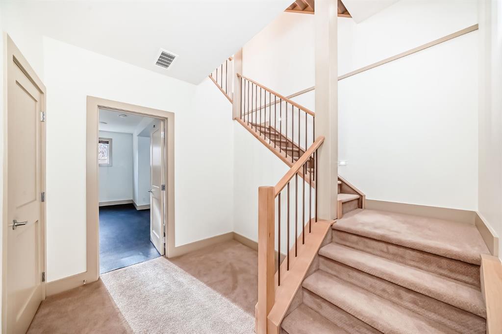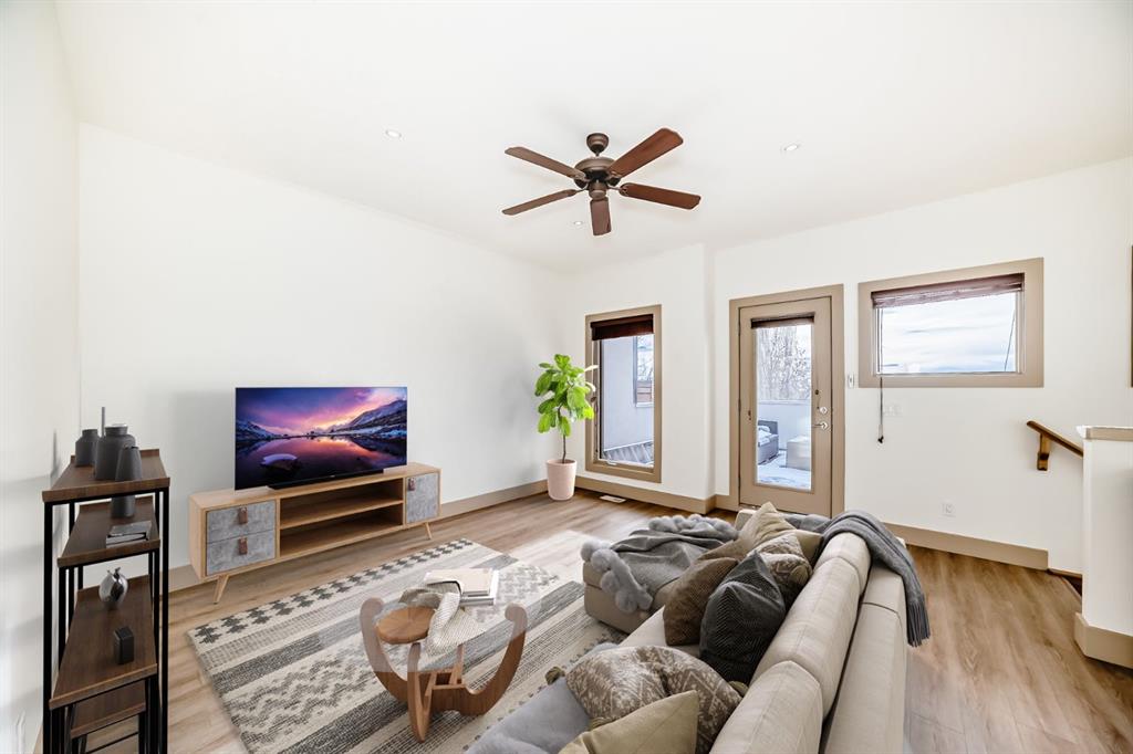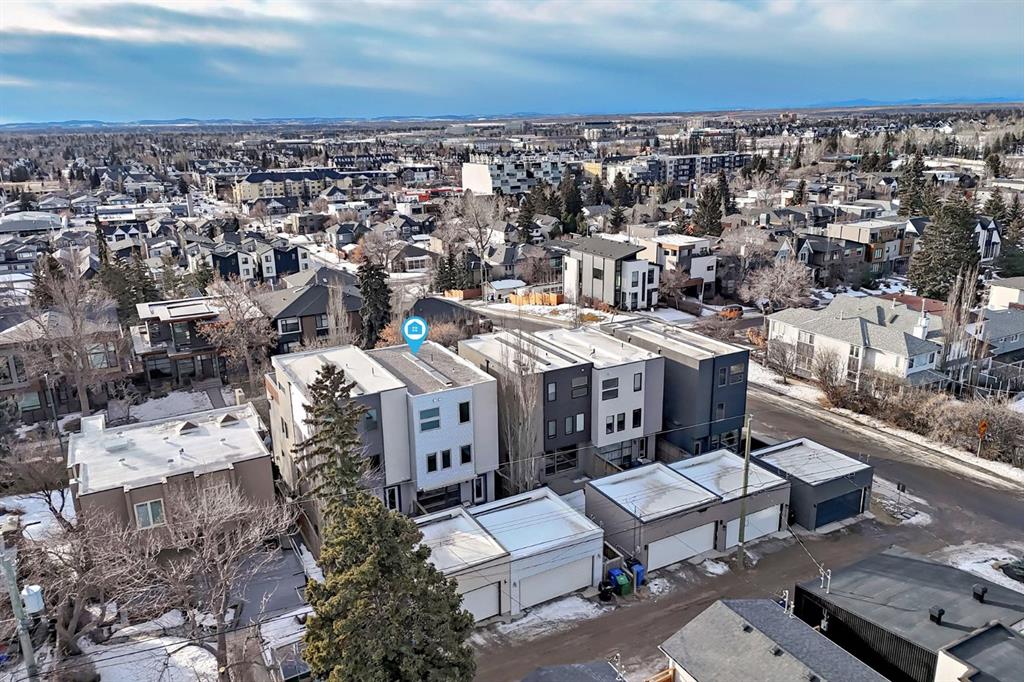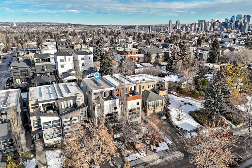 OPEN HOUSE SATURDAY & SUNDAY NOON - 3pm. Experience the perfect blend of striking design, sunshine-filled spaces, &unbeatable urban convenience in this exceptional residence located in the heart of the vibrant Marda Loop District. Instantly captivating, the modern corrugated metal exterior & beautifully landscaped front yard deliver standout curb appeal in this highly sought-after neighbourhood. Step inside with an airy open-concept layout, gleaming re-finished satin hardwood floors, & fresh contemporary paint throughout. The sunny living room makes a great impression with its soaring 18-foot open-to-below ceiling and expansive south-facing windows. Cozy evenings await around the gas fireplace, accented by a stylish metal feature wall that echoes the home’s exterior design. The chef-inspired kitchen is both sleek & functional, featuring a generous island with new pendant lighting, undermount sink, filtered water, quartz countertops, stainless steel appliances, & a gas cooktop. Endless cabinetry and abundant seating make this space ideal for entertaining, whether hosting intimate dinners or lively gatherings. The adjacent dining room with contemporary lighting fixture is bathed in natural light and opens directly to a private courtyard patio—an inviting outdoor retreat tucked between the home and the convenient double garage. A chic powder room nearby adds a playful touch with its statement bowl-mounted sink. An open-riser staircase draws you upward, flooding the home with natural light. The second level offers two spacious bedrooms, along with a versatile loft & den—perfect for a home office, reading nook, or family lounge. A dedicated laundry room with sink adds everyday ease. The entire third level is a true showstopper, designed as a private primary retreat with an additional bonus space & wet bar, both finished with new luxury vinyl plank flooring. Step outside to the spectacular south-facing rooftop patio & take in sweeping Rocky Mountain views. The primary bedroom is thoughtfully appointed with custom closet organizers & a spa-like ensuite featuring a built-in tiled tub, dual sinks, makeup vanity, in-floor heating, and a glass-enclosed shower with bench and niche. The fully finished LOWER LEVEL expands your living space with 9-foot ceilings, radiant in-floor heating, & a large recreation area complete with custom rubber gym flooring and full height wall mirror. Thoughtful upgrades throughout the home, rigid styrofoam insulation & gravel on the torch-on roof, water softener, , built-in speakers, Toto toilets, undermount sinks, & a tankless NAVIEN hot water system. All west & north facing windows were replaced with UV-protected triple-glazed windows. Rebuilt furnace in 2022. Over $100,000 worth of upgrades over the past five years. Two outdoor spaces, this home delivers privacy, comfort, & exceptional style. With over 3,500 sq. ft. of livable space, it is ideally located in the popular community of Marda Loop. Some of the photos have been virtually staged.