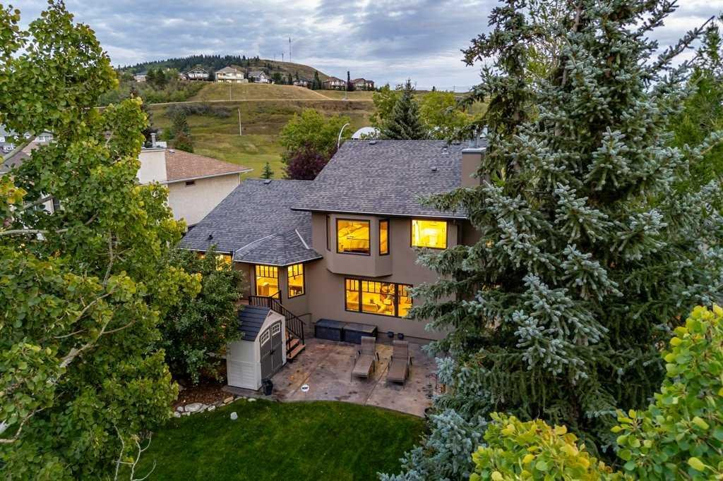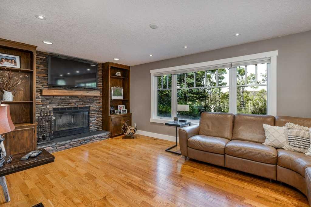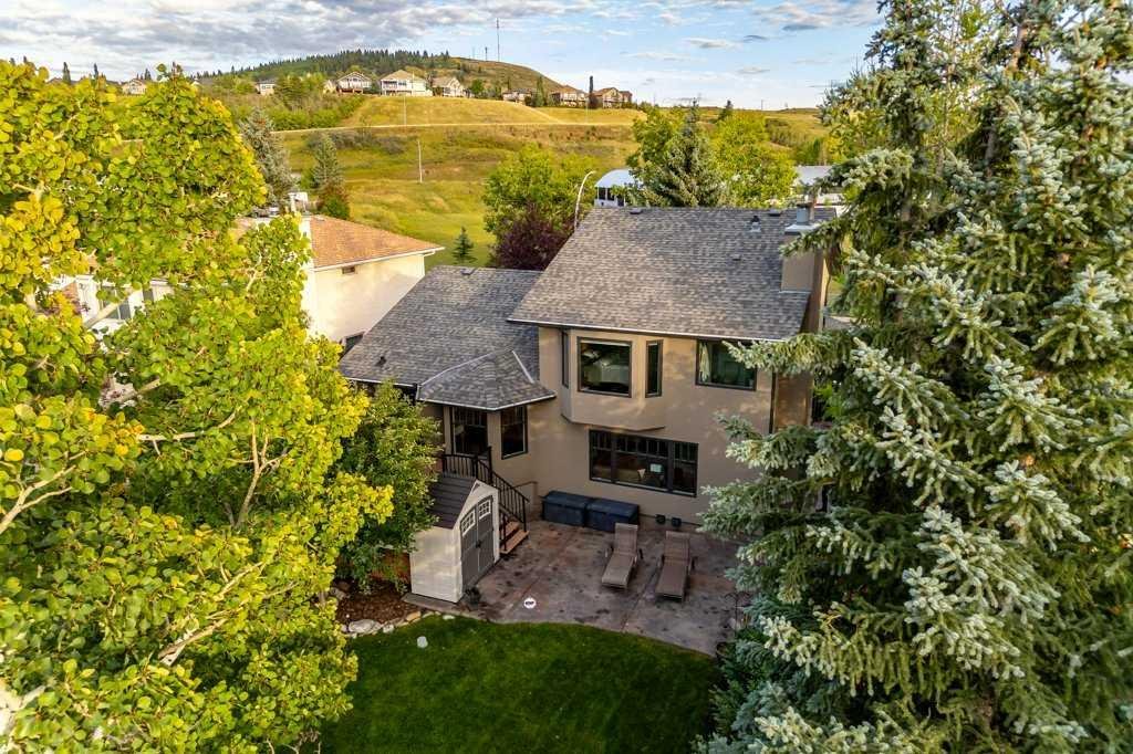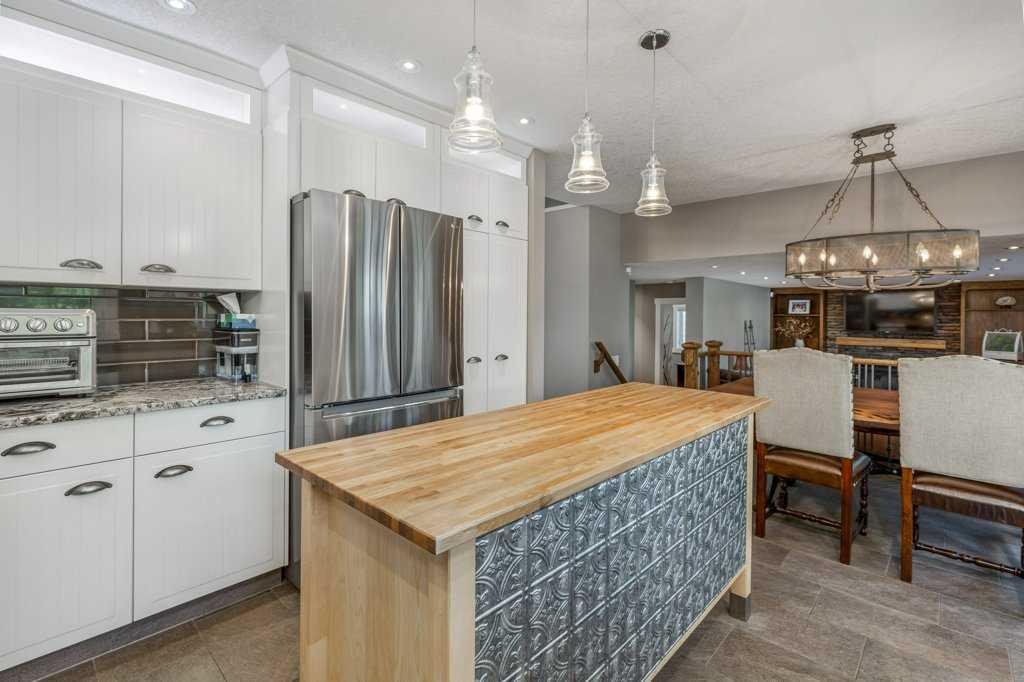 Discover a luxury lifestyle where quality, convenience and nature collide. This fully renovated family home is located directly across from the tri-schools and backs onto the historic Cochrane Ranche in the town's most sought-after community, Cochrane Heights. Exquisitely appointed, this home was completely transformed in 2014 and new shingles were just done in 2025. Its tasteful selections and high end finishes include a solid wood front door, oak hardwood and ceramic tile flooring throughout the main level. A vaulted ceiling spans the living room and formal dining area for a dramatic first impression. The kitchen boasts an upscale farmhouse esthetic with beaded panel shaker cabinets, a lit panel valence, granite perimeter counters, butcher block island with a vintage tin detail and a gorgeous apron front farm sink. There is a top of the line stainless appliance package including an induction stove and ample storage. A sunken family room is the perfect place to unwind in front of the wood burning fireplace (with gas assist) while taking in the beautiful views behind. Also on the main level is a cozy office with an elegant privacy window, while down the hall a practical powder room and laundry combo is appointed with tile wainscotting. Upstairs you will find three bedrooms, including the primary suite with its stunning mountain views, a walk-in closet and luxurious ensuite bathroom featuring a vintage inspired vanity, free standing shower, heated floors and incredible Victoria + Albert soaking tub. The main bathroom that serves the kids bedrooms includes granite counter top, subway tile around the bath/shower and heated tile floors. The basement is fully developed and includes fabulous built-ins and millwork including a pull down murphy bed. A generously sized 4th bedroom is ideal for guests who will love the exquisite bathroom with heated tile floors, a spacious steam shower with rain shower head and a bench seat. The outside of this home is equally as impressive with acrylic stucco and cedar accents, defining this home's presence and mountain inspired appeal. There is a fantastic exposed aggregate driveway with a poured concrete walkway that surrounds the house, providing both front and back patio areas to enjoy the birds singing and the rustling of the leaves in your yard. The heated garage has Swisstrax flooring and a man door to the side yard. This property is truly a gem offering an unparalleled level of privacy, access to recreation, schools and is walking distance to downtown. The extensive trail system behind the house connects all of Cochrane, through to the Big Hill Springs and a remarkable bird preserve area where nature lovers study this ecologically rich landscape. Don't miss your opportunity to own a move-in-ready home on one of Cochrane's most sought-after streets, thoughtfully designed for your family's enjoyment for years to come.