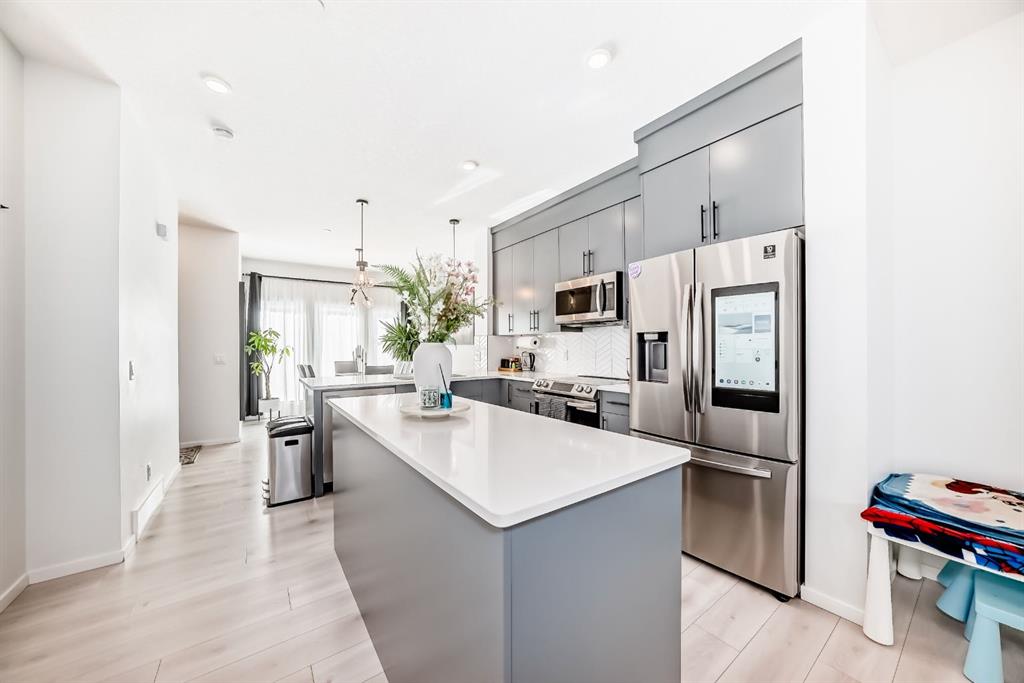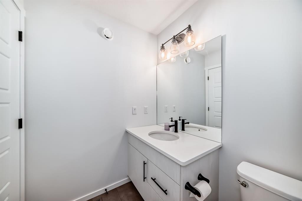 The home's exterior boasts attractive curb appeal with its modern architecture and striking siding. The private backyard is an oasis for relaxation and fun, featuring a well-maintained lawn, a back lane for easy access, and charming raised garden beds—perfect for a home gardener! A dedicated fire pit area makes it ideal for cool Calgary evenings and entertaining guests.