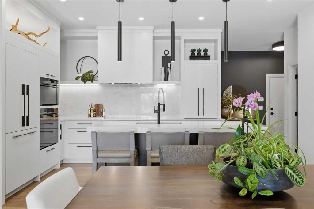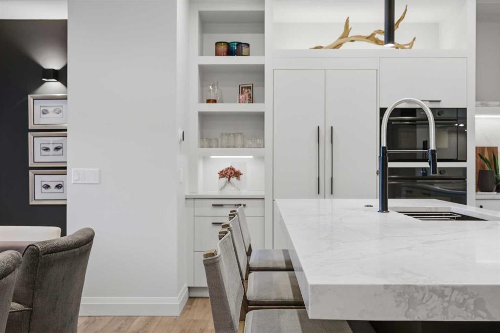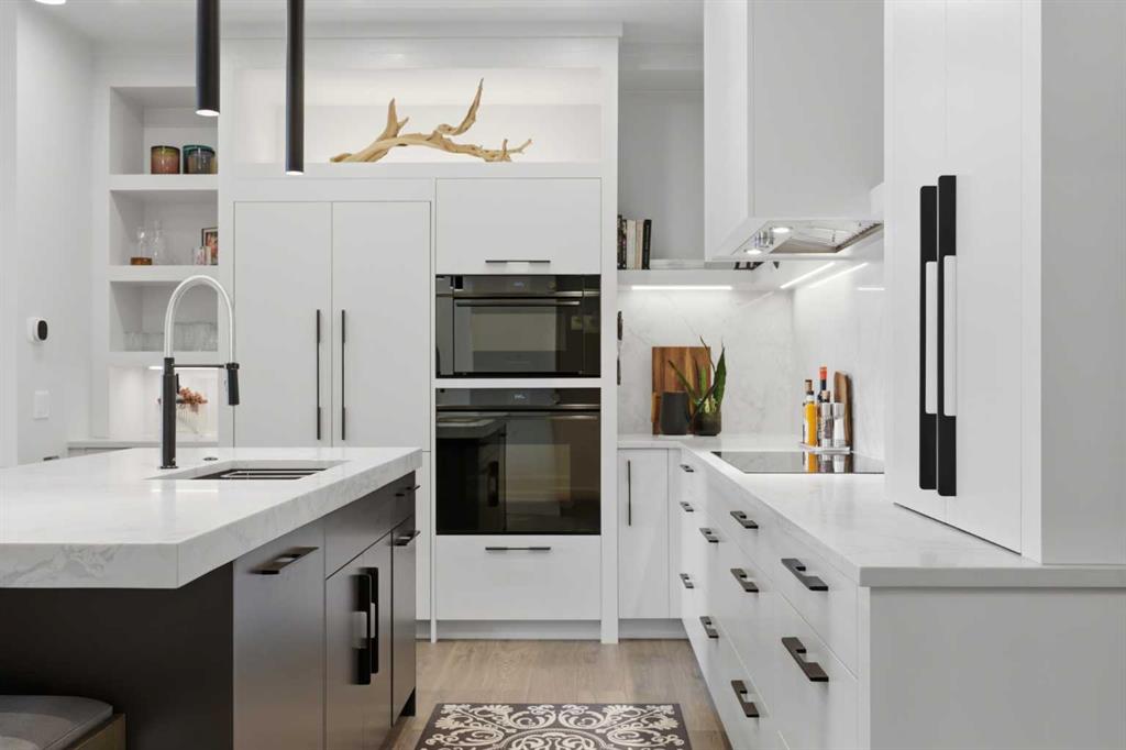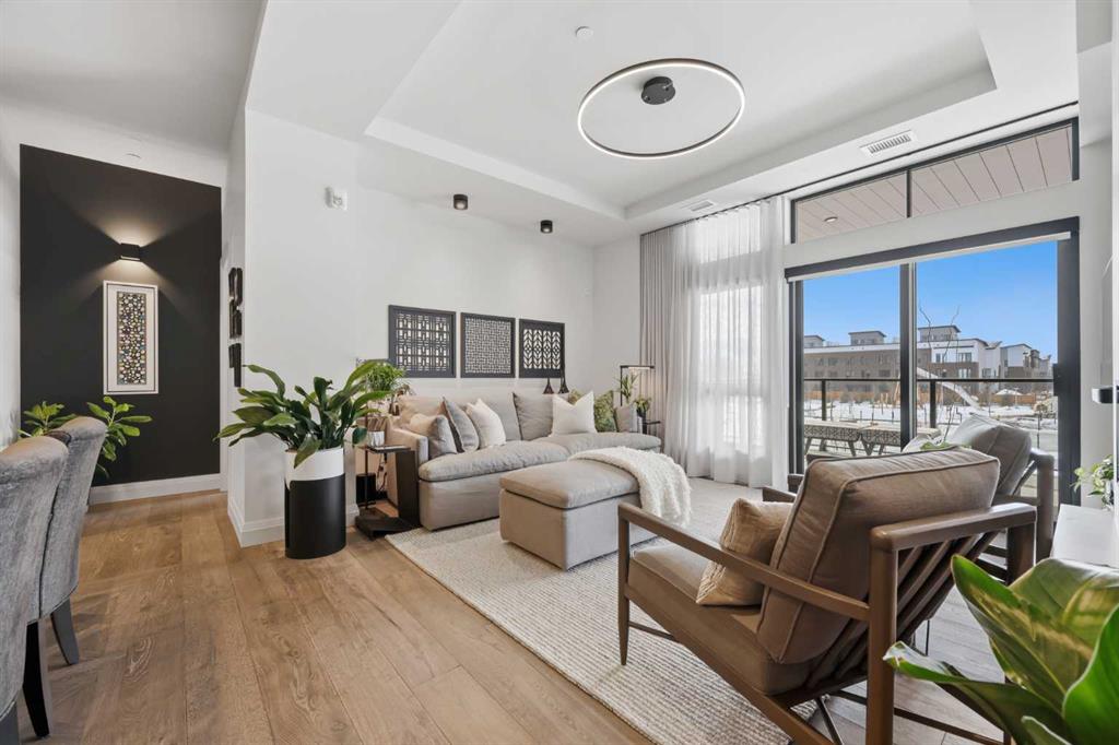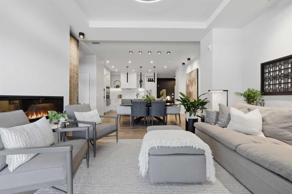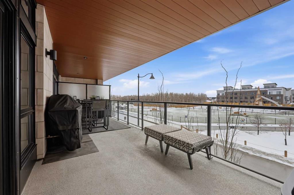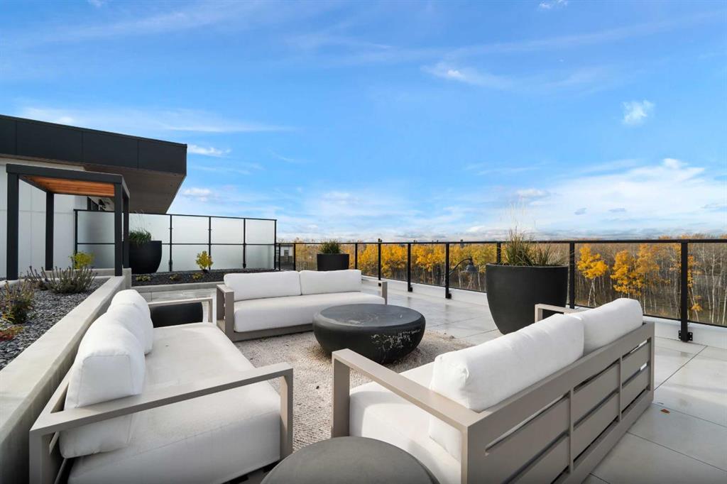 Discover the pinnacle of lock-and-leave living in Calgary's most sought-after luxury building. This meticulously reimagined, 2-bedroom, 2-bath residence demonstrates that nothing was spared in the pursuit of something truly exceptional. Step inside to unmistakable quality across 1,415 sq. ft. of elegance. The home features over $100,000 in distinctive upgrades and designer finishes. The original layout was thoughtfully redesigned before any materials were selected. The spacious entry welcomes you, anchored by a generous closet with built-in cabinetry and an impeccably finished powder room featuring seven-inch quartz countertops. Wide-plank French oak hardwood runs throughout, with a custom inlay in the dining area that adds a distinctive architectural feature. Every light fixture is upgraded, including gallery-style art lighting, pot lights, and refined wall sconces in the primary suite. Expansive 10-foot ceilings and floor-to-ceiling windows overlook Radio Park, flooding the space with natural light and unobstructed views. The chef’s kitchen is fully custom, starting with upgraded cabinetry, open shelving and extending to every appliance. The integrated refrigerator, induction cooktop, wall oven, and dishwasher demonstrate a commitment to quality. The walk-in pantry features a glass door, wraparound open shelving, a beverage fridge, a wine rack, and beautiful botanical-accented wallpaper that transforms how you live and entertain. The living room was extended beyond the standard plan to accommodate a larger footprint and features an elongated fireplace. Sheer drapery in the living area keeps the park views centre stage while maintaining an effortless, airy elegance throughout the day. Opening the sliding doors to your 37-foot uninterrupted covered terrace extends the living space for seamless entertaining, unmatched in the building. The primary suite is a true sanctuary, with a solid-core door, blackout drapes, and a sliding glass door that leads directly to the ensuite bathroom, evoking a boutique-hotel ambiance. The ensuite is truly spa-calibre, featuring dual vanities, premium quartz, a fully tiled shower with a quartz bench, a striking black-and-white soaker tub, and heated floors. Through the bathroom lies a dedicated laundry room with a worktop, a hanging rod, and built-in shelving. The walk-in closet features an extensive organizer, enough room for two! The second bedroom functions as an executive home office or guest room, and is served by a second full bath with the condo's signature matte-black fixtures and oversized penny tiles. Two titled parking stalls, positioned directly beside the elevator for maximum convenience, plus one titled storage unit on the third floor. Residents of Parkside enjoy exclusive access to a rooftop patio, an owner's lounge with entertainment kitchen, and a fully equipped fitness centre - all set above award-winning green space and steps from Calgary’s best dining and shops. Experience a lifestyle without compromise.