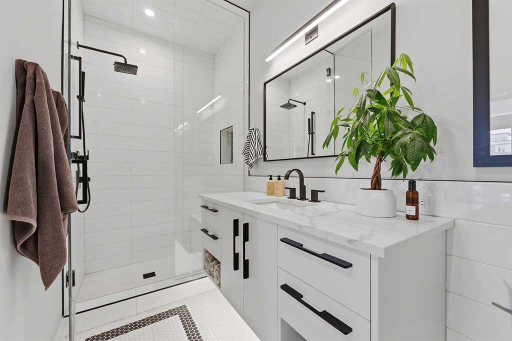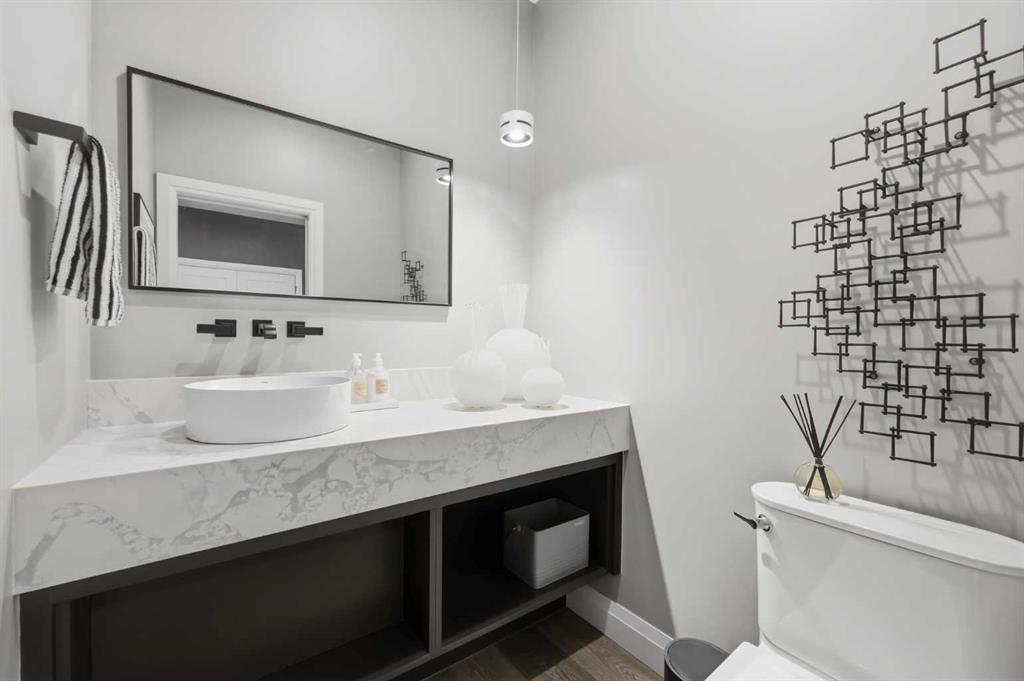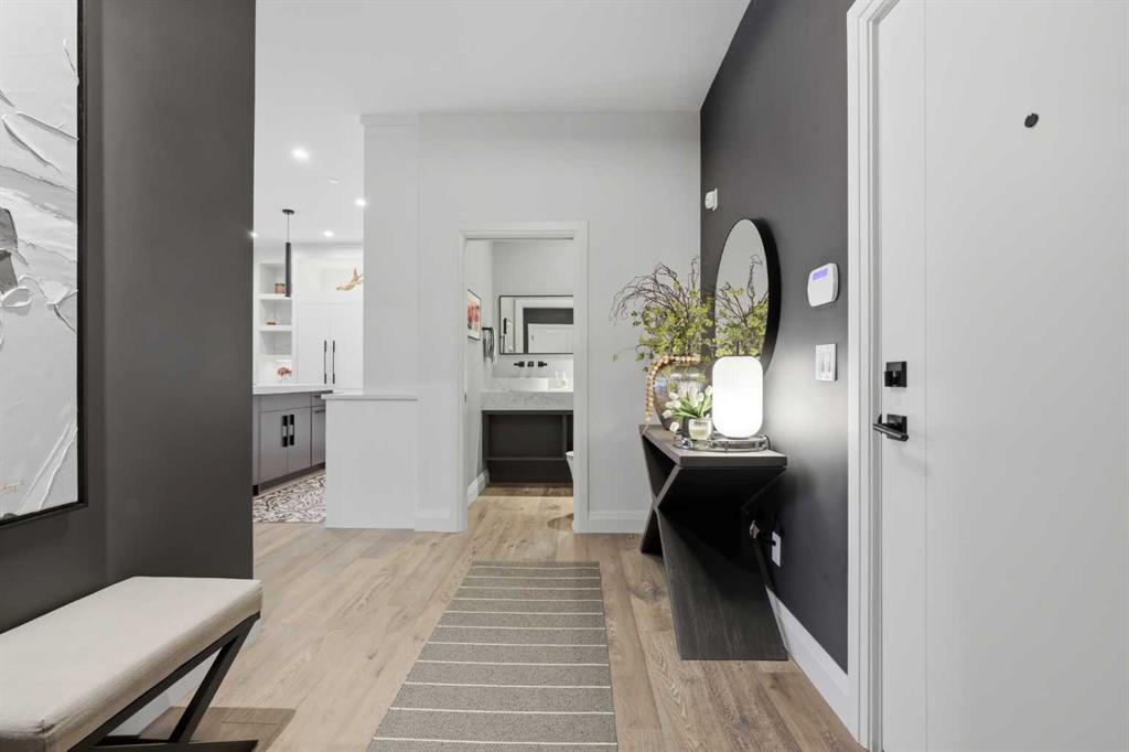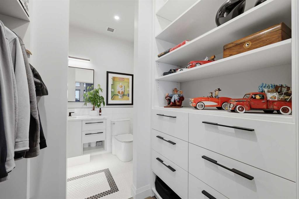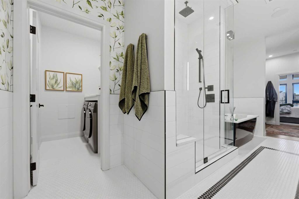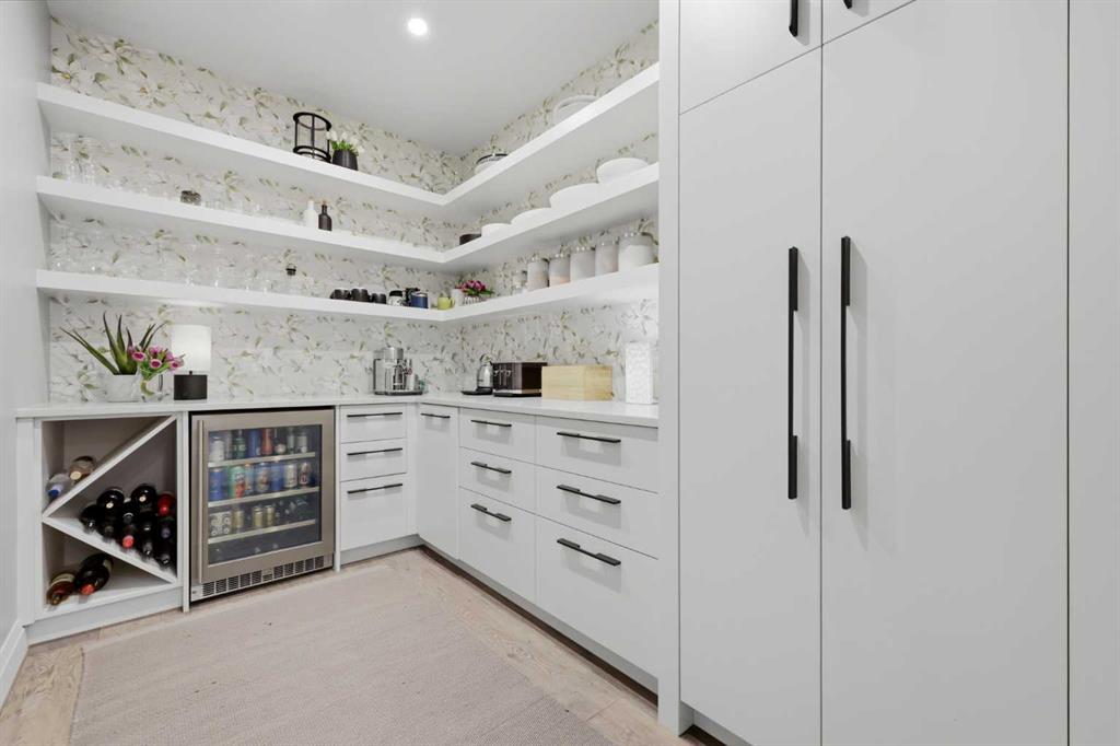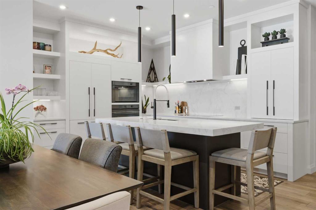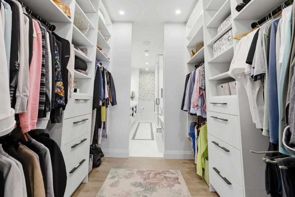 Discover the pinnacle of lock-and-leave living in Calgary's most sought-after luxury building. This meticulously reimagined, 2-bedroom, 2-bath residence demonstrates that nothing was spared in the pursuit of something truly exceptional. Step inside to unmistakable quality across 1,415 sq. ft. of elegance. The home features over $100,000 in distinctive upgrades and designer finishes. The original layout was thoughtfully redesigned before any materials were selected. The spacious entry welcomes you, anchored by a generous closet with built-in cabinetry and an impeccably finished powder room featuring seven-inch quartz countertops. Wide-plank French oak hardwood runs throughout, with a custom inlay in the dining area that adds a distinctive architectural feature. Every light fixture is upgraded, including gallery-style art lighting, pot lights, and refined wall sconces in the primary suite. Expansive 10-foot ceilings and floor-to-ceiling windows overlook Radio Park, flooding the space with natural light and unobstructed views. The chef’s kitchen is fully custom, starting with upgraded cabinetry, open shelving and extending to every appliance. The integrated refrigerator, induction cooktop, wall oven, and dishwasher demonstrate a commitment to quality. The walk-in pantry features a glass door, wraparound open shelving, a beverage fridge, a wine rack, and beautiful botanical-accented wallpaper that transforms how you live and entertain. The living room was extended beyond the standard plan to accommodate a larger footprint and features an elongated fireplace. Sheer drapery in the living area keeps the park views centre stage while maintaining an effortless, airy elegance throughout the day. Opening the sliding doors to your 37-foot uninterrupted covered terrace extends the living space for seamless entertaining, unmatched in the building. The primary suite is a true sanctuary, with a solid-core door, blackout drapes, and a sliding glass door that leads directly to the ensuite bathroom, evoking a boutique-hotel ambiance. The ensuite is truly spa-calibre, featuring dual vanities, premium quartz, a fully tiled shower with a quartz bench, a striking black-and-white soaker tub, and heated floors. Through the bathroom lies a dedicated laundry room with a worktop, a hanging rod, and built-in shelving. The walk-in closet features an extensive organizer, enough room for two! The second bedroom functions as an executive home office or guest room, and is served by a second full bath with the condo's signature matte-black fixtures and oversized penny tiles. Two titled parking stalls, positioned directly beside the elevator for maximum convenience, plus one titled storage unit on the third floor. Residents of Parkside enjoy exclusive access to a rooftop patio, an owner's lounge with entertainment kitchen, and a fully equipped fitness centre - all set above award-winning green space and steps from Calgary’s best dining and shops. Experience a lifestyle without compromise.
