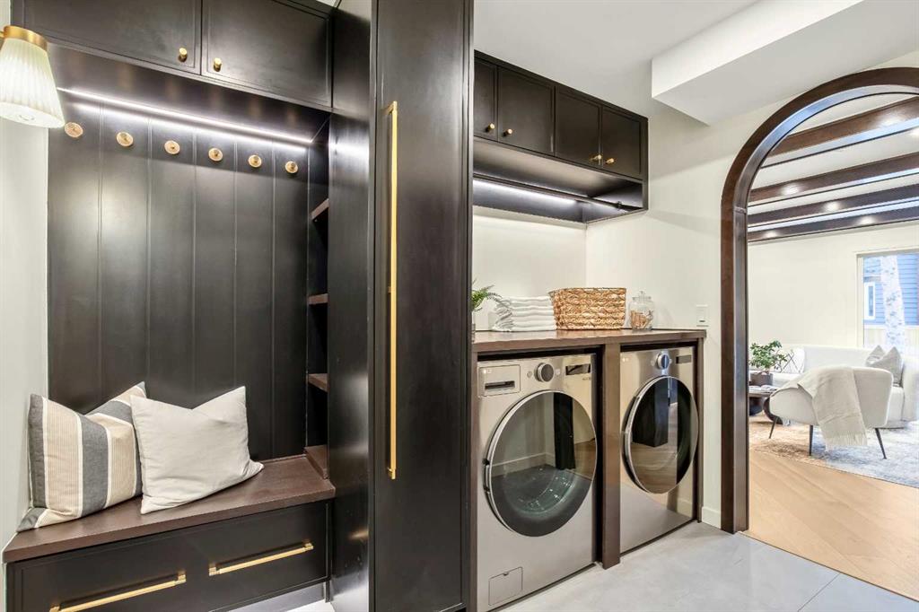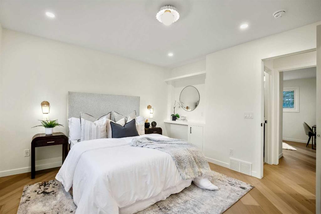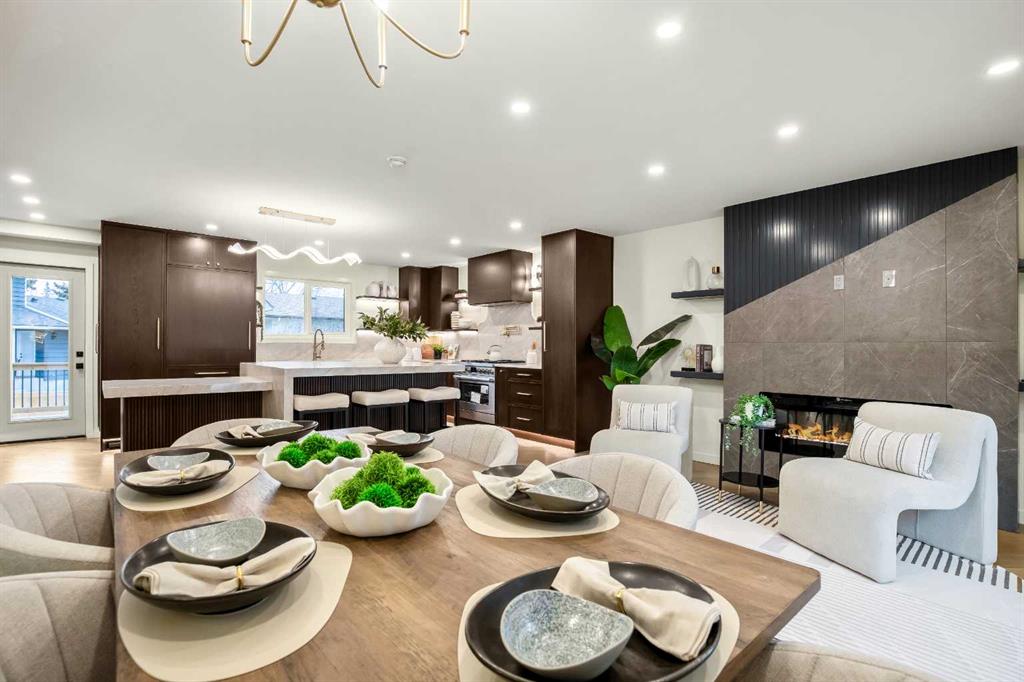 OPEN HOUSE: SATURDAY, MAR. 28th: 12-4 PM | Welcome to Eleanor—an elegant, elevated, and exceptionally well-crafted home in the sought-after community of Oakridge. A fully renovated down to the studs home with over $600,000+ INVESTED (including all-new plumbing, electrical, and HVAC runs completed with all required city permits). Nestled on a quiet, tree-lined street, this home offers four bedrooms, a dedicated office and 2,366+ sq ft of living space, and an additional 500+ sq ft of crawl-space storage (not included in total living space). Situated on an expansive ~7,000 sq ft lot, only minutes away from South Glenmore Park, scenic pathways, and steps from Louis Riel School, Oakridge Community Centre, Stoney Trail, and more. The exterior of the home is striking yet inviting, featuring Hardie and Smart Panel siding, stained cedar soffits, new roofing and eavestroughs, and meticulously designed landscaping. The entry is equally refined, with a cedar-covered patio, garden-ready planters, and a stunning entrance inviting you home. Inside, sunlight fills every room through new triple-pane windows, white oak floors, curved oak arches, columns, beams, and white-oak butcher block shelving throughout. The main level features a Nordic-inspired kitchen with Taj Mahal counters, chocolate coloured white oak cabinetry, dovetail drawers and fluted detailing, a ~10-foot island with drop-down seating, a built-in coffee bar, and a glass wine display. Built-in appliances include a Fisher & Paykel fridge, freezer, and dishwasher, a Bosch 6-burner range, ZLINE convection oven, and Silhouette dual-temp wine fridge. The kitchen connects to the rear deck, creating a seamless transition between indoor and outdoor living. On the same level is the formal dining room and first living area, centred around a striking fireplace feature wall. Steps down, the main living room boasts dark oak ceiling beams, a second fireplace framed by custom arched cabinetry, a refined wet bar, and access to the backyard patio. This level also includes a glass-enclosed office, powder room, laundry, mudroom, and access to the finished oversized double car garage with epoxy floors and EV and garage heater rough-ins. Upstairs, the primary is a serene retreat featuring a fluted soaker tub, oversized double shower, champagne bronze fixtures, a walk-in closet, and a built-in makeup vanity. Two additional well-sized bedrooms with built-in closets and a beautifully finished full bath complete the level. The basement includes a rec room/flex room, an additional fourth bedroom, a three-piece bath with spa-calibre shower, cedar sauna and ample storage. Heated floors and champagne bronze fixtures are featured in all bathrooms. There’s new batt and blow-in insulation, a tankless water heater, central A/C, sump pump, solid core doors, smart home features, camera CAT-6 roughed-in, new drywall and a BBQ gas line on the deck. Eleanor embodies refined design and understated luxury—a rare opportunity to make her your home!