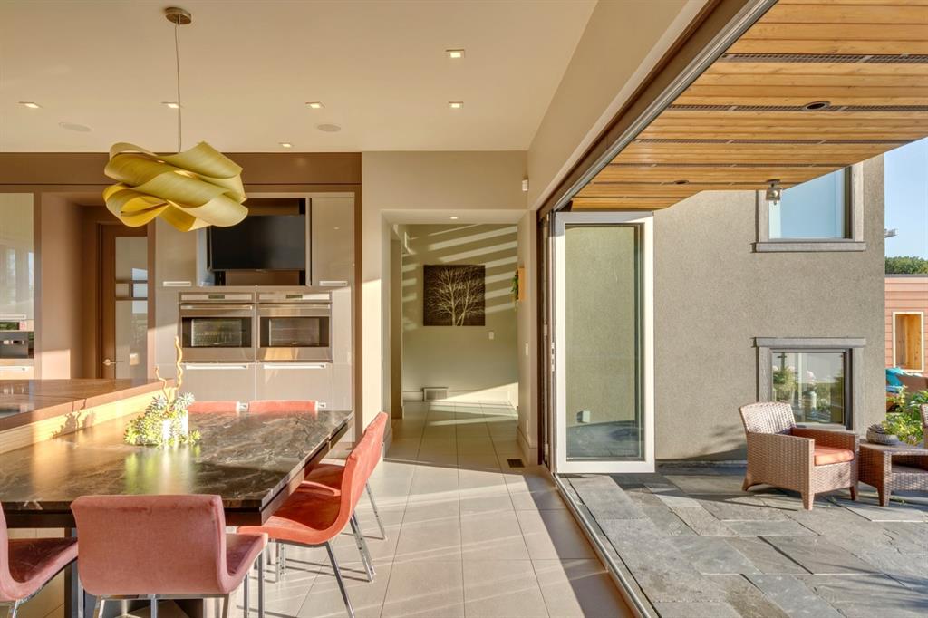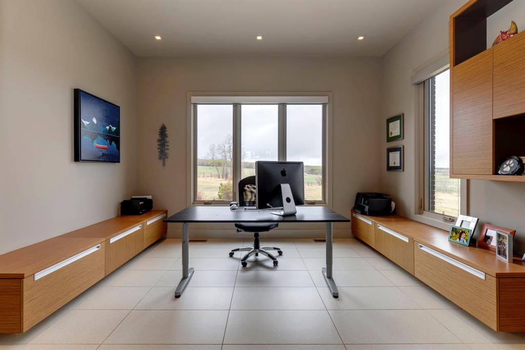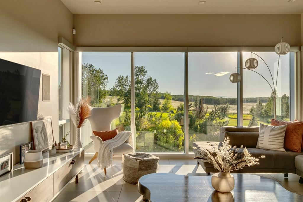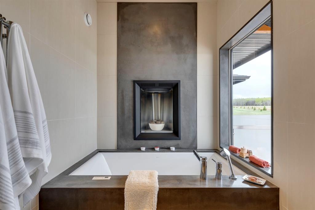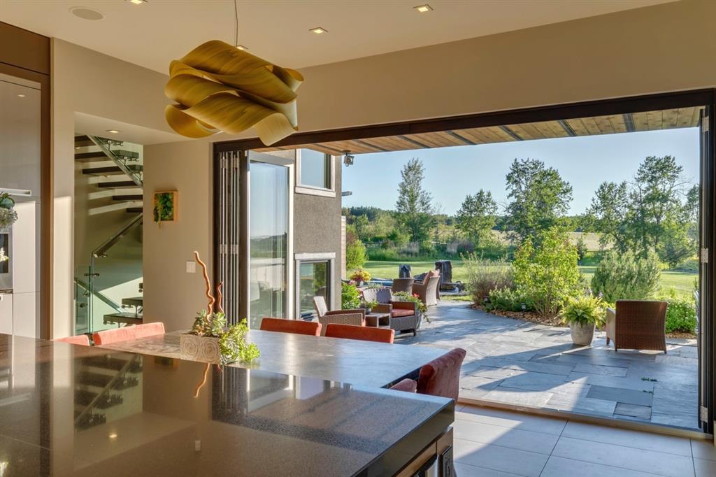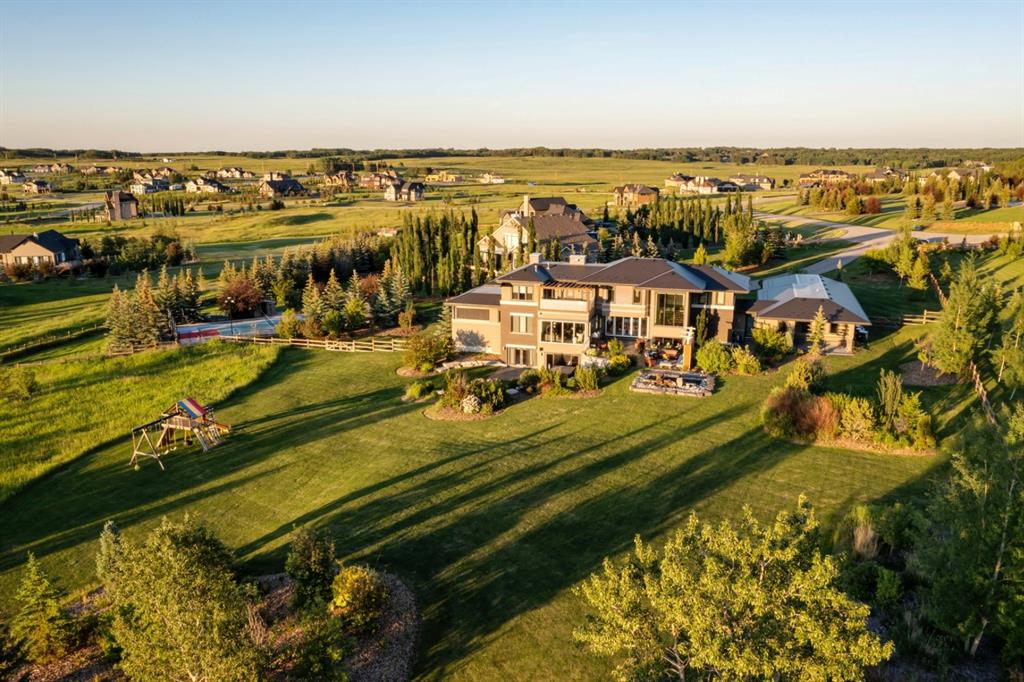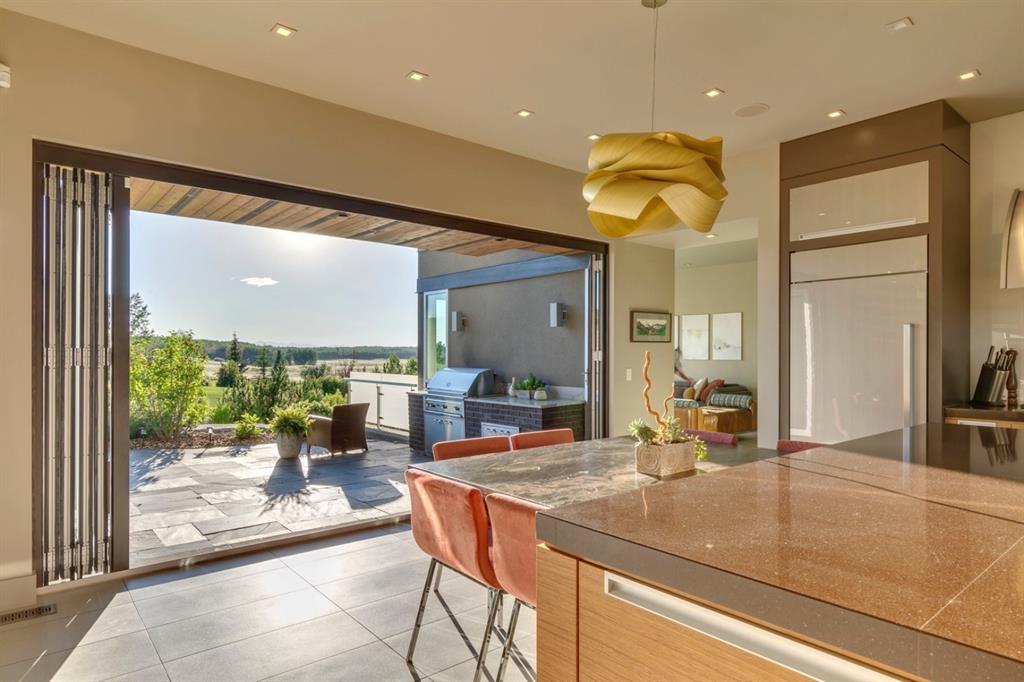 Architecturally inspired by Frank Lloyd Wright and designed to capture breathtaking west-facing views of the Rocky Mountains, this Built Green & Gold Certified, energy efficient estate is one of the most exceptional homes in Bearspaw. Thoughtfully curated on 2.91 pristine acres at the end of a quiet cul-de-sac, this 5 bedroom, 7 bath residence offers over 6,200 sq ft of developed living space, all warmed & cooled via advanced geothermal technology with in-floor heating. Striking floor-to-ceiling commercial grade windows frame the dramatic mountain vistas throughout the home. The chef’s kitchen is impeccably appointed with full Sub-Zero fridge & freezer, six-burner Wolf cooktop, custom hood fan, dual Wolf convection wall ovens, Wolf warming drawer, & Miele dishwasher & coffee station. A substantial quartz island provides abundant prep space, while the built-in kitchen table finished in Capolavoro honed granite adds warmth & texture. Entertain effortlessly as a 15.5-ft NanaWall opens to the spectacular backyard oasis, featuring a built-in Lynx BBQ, custom water feature, natural gas fireplace, & professionally designed landscaping with automated irrigation. The seamless indoor-outdoor flow is ideal for hosting gatherings large &/or small. The main level is completed by a spacious living area with dual-sided fireplace, a west-facing home office filled with natural light, formal dining room well suited for large gatherings, & a well-designed mudroom with extensive built-ins, laundry facilities, & a second floor laundry chute. A covered courtyard with motorized screens, sound system, & natural gas fire table creates an inviting outdoor lounge experience. A bright breezeway connects to the heated 4+ car garage, complete with dog wash & EV charging. The upper level hosts four generous bedrooms. The primary suite & fourth bedroom each feature private ensuites, while the second & third bedrooms share a Jack & Jill bath. The primary retreat rivals a six-star hotel, showcasing a custom built-in king bed & a Holt Renfrew-inspired walk-in dressing room. A thoughtfully designed kids’ media area completes this level. The walkout lower level is equally impressive, offering guest quarters, a media room with blackout blinds, custom banquet seating, wine room, wet bar, & a fitness studio with direct access to the private salt water hot tub. The spa-inspired bathroom features a rainfall steam shower & large infrared sauna, creating the perfect space for healthy detox & rejuvenation. A full Control4 smart home system provides advanced automation (lighting, audio video, temperature, blinds, irrigation, + security) all accessible via your smartphone. The property also has a radon mitigation system & reverse osmosis water throughout. Ideally located with quick access to the mountains, the airport, & the downtown core, this remarkable property offers a rare blend of architectural distinction, cutting-edge technology, & serene natural beauty, call for more information!