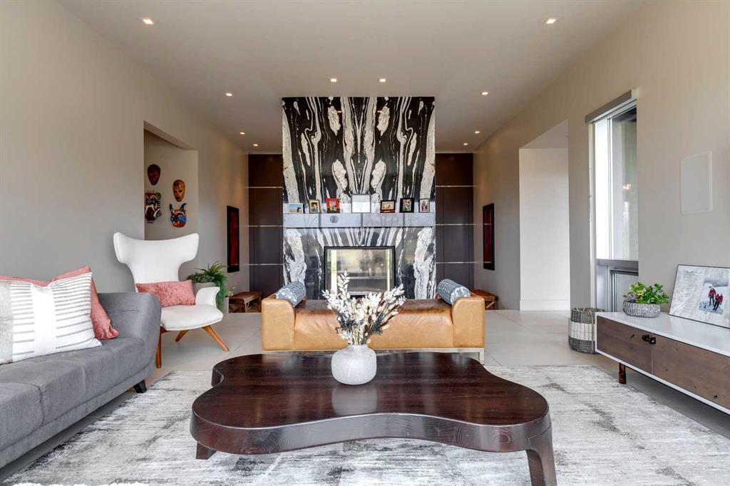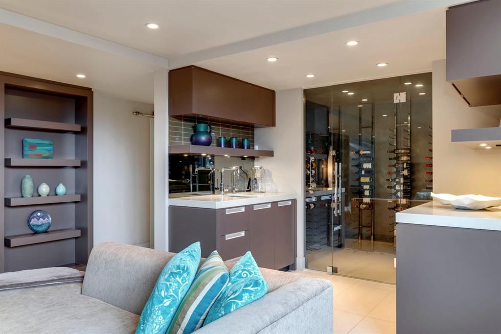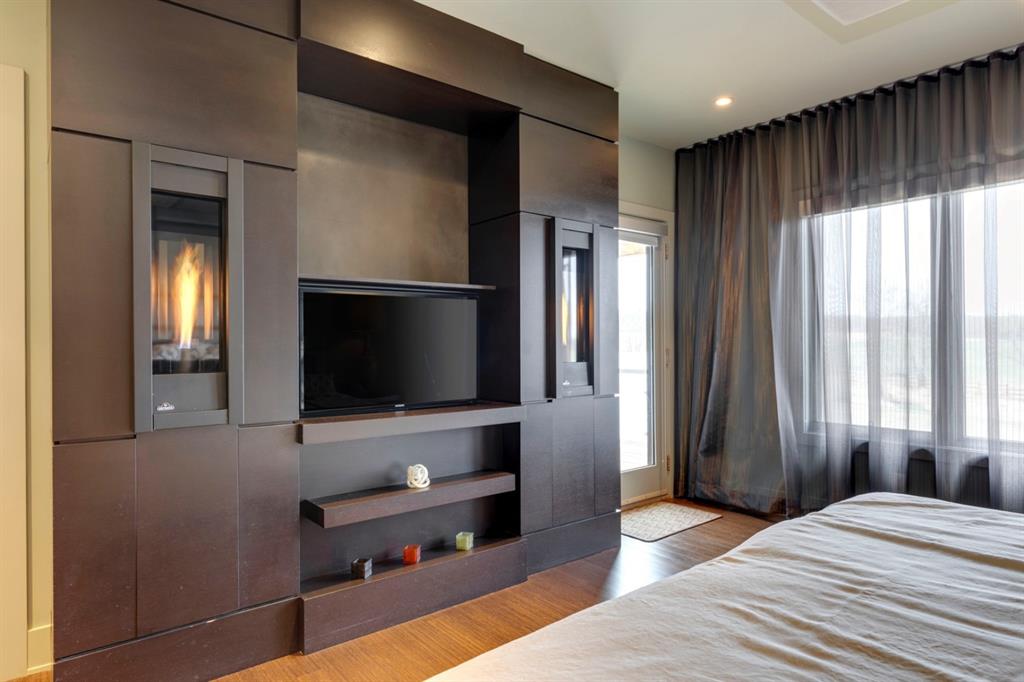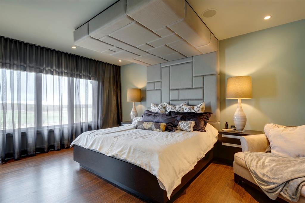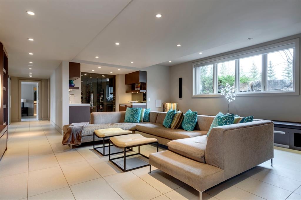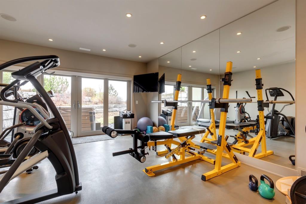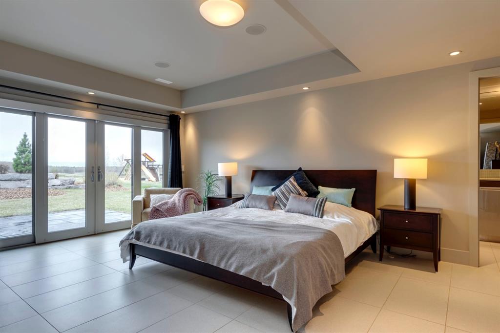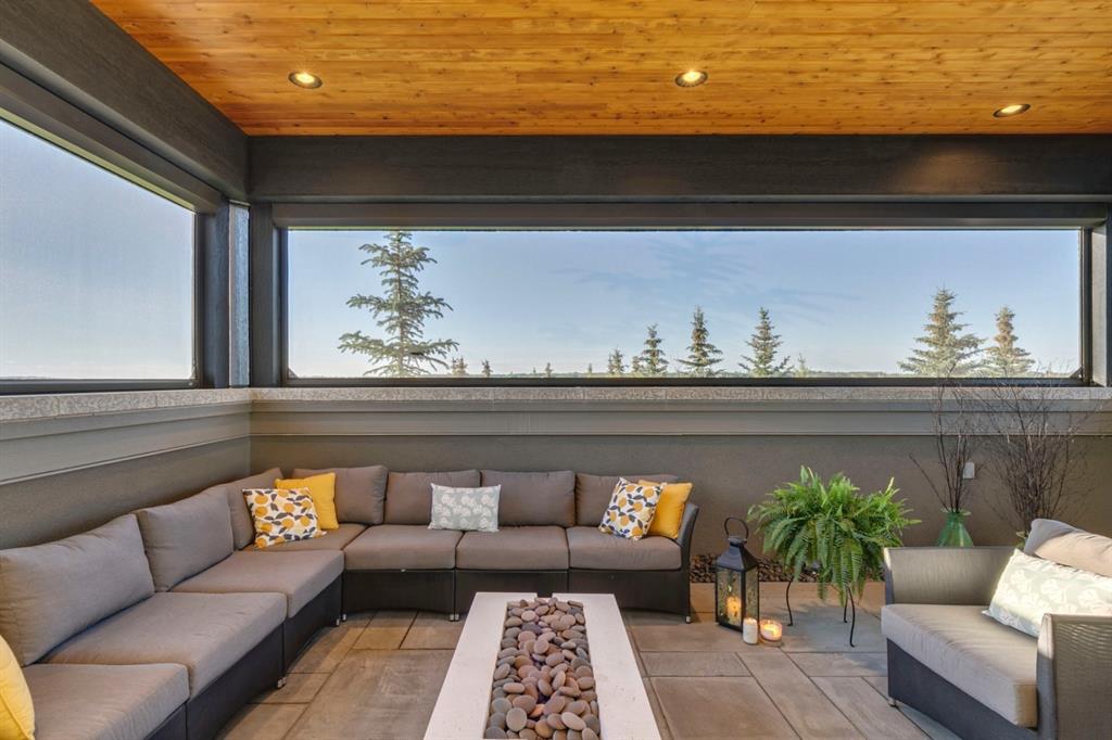 Architecturally inspired by Frank Lloyd Wright and designed to capture breathtaking west-facing views of the Rocky Mountains, this Built Green & Gold Certified, energy efficient estate is one of the most exceptional homes in Bearspaw. Thoughtfully curated on 2.91 pristine acres at the end of a quiet cul-de-sac, this 5 bedroom, 7 bath residence offers over 6,200 sq ft of developed living space, all warmed & cooled via advanced geothermal technology with in-floor heating. Striking floor-to-ceiling commercial grade windows frame the dramatic mountain vistas throughout the home. The chef’s kitchen is impeccably appointed with full Sub-Zero fridge & freezer, six-burner Wolf cooktop, custom hood fan, dual Wolf convection wall ovens, Wolf warming drawer, & Miele dishwasher & coffee station. A substantial quartz island provides abundant prep space, while the built-in kitchen table finished in Capolavoro honed granite adds warmth & texture. Entertain effortlessly as a 15.5-ft NanaWall opens to the spectacular backyard oasis, featuring a built-in Lynx BBQ, custom water feature, natural gas fireplace, & professionally designed landscaping with automated irrigation. The seamless indoor-outdoor flow is ideal for hosting gatherings large &/or small. The main level is completed by a spacious living area with dual-sided fireplace, a west-facing home office filled with natural light, formal dining room well suited for large gatherings, & a well-designed mudroom with extensive built-ins, laundry facilities, & a second floor laundry chute. A covered courtyard with motorized screens, sound system, & natural gas fire table creates an inviting outdoor lounge experience. A bright breezeway connects to the heated 4+ car garage, complete with dog wash & EV charging. The upper level hosts four generous bedrooms. The primary suite & fourth bedroom each feature private ensuites, while the second & third bedrooms share a Jack & Jill bath. The primary retreat rivals a six-star hotel, showcasing a custom built-in king bed & a Holt Renfrew-inspired walk-in dressing room. A thoughtfully designed kids’ media area completes this level. The walkout lower level is equally impressive, offering guest quarters, a media room with blackout blinds, custom banquet seating, wine room, wet bar, & a fitness studio with direct access to the private salt water hot tub. The spa-inspired bathroom features a rainfall steam shower & large infrared sauna, creating the perfect space for healthy detox & rejuvenation. A full Control4 smart home system provides advanced automation (lighting, audio video, temperature, blinds, irrigation, + security) all accessible via your smartphone. The property also has a radon mitigation system & reverse osmosis water throughout. Ideally located with quick access to the mountains, the airport, & the downtown core, this remarkable property offers a rare blend of architectural distinction, cutting-edge technology, & serene natural beauty, call for more information!