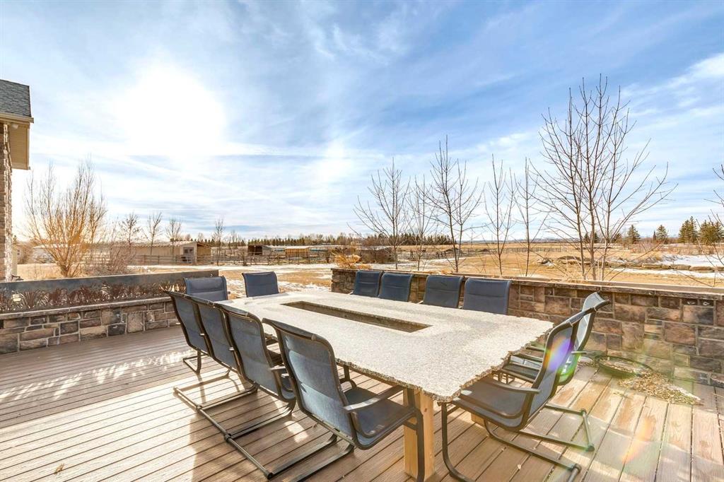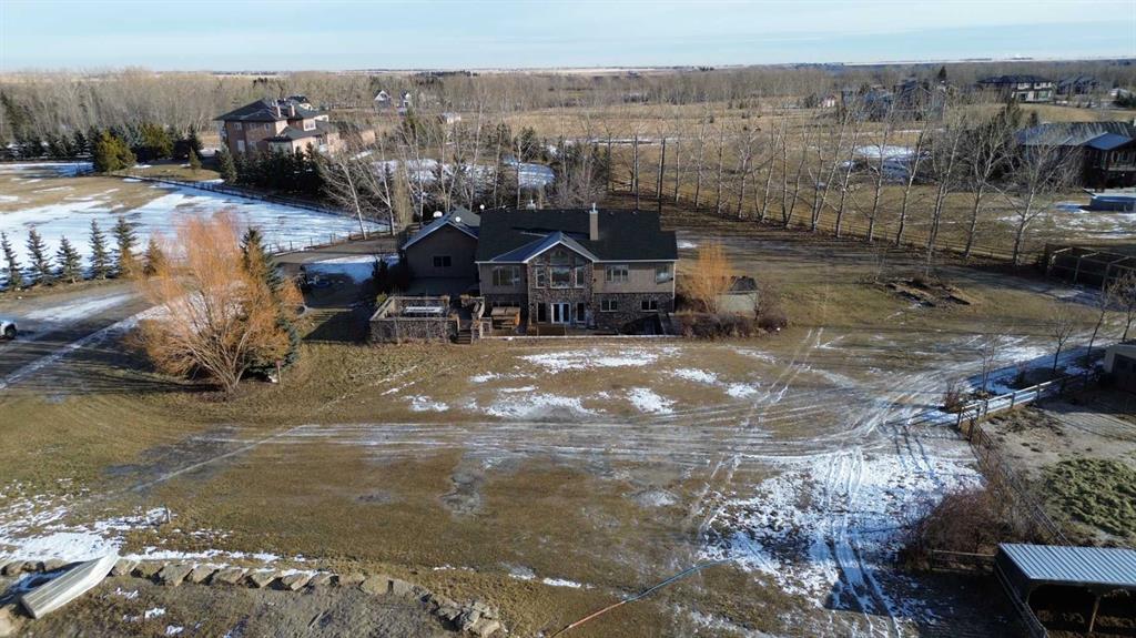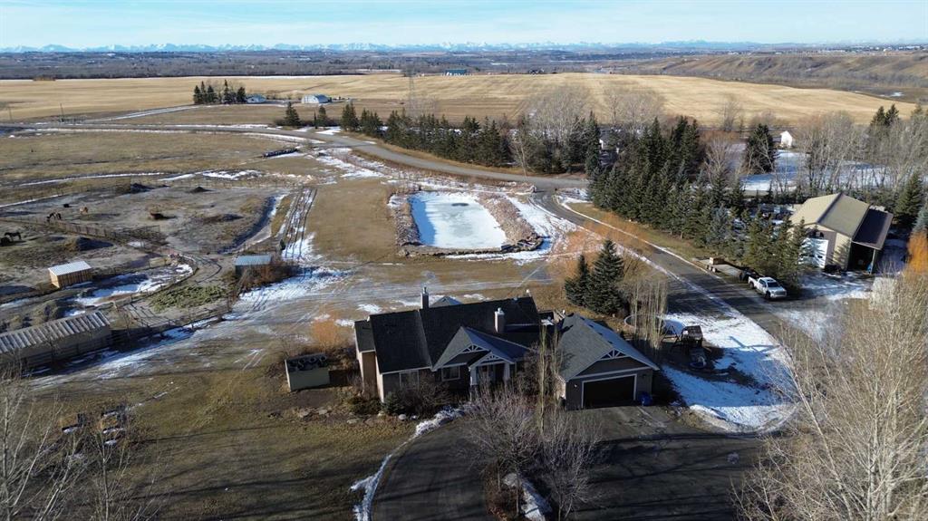 Step outside to your private oasis: a very unique stocked trout pond with sandy beach (perfect for summer swims), cross-fenced pastures with animal shelters, and mature trees adorning the grounds. The garden beds are ready for planting, and the outdoor entertaining spaces are unparalleled—three levels of low-maintenance decking, custom high-end gas fireplaces, and panoramic views. For the hobbyist, professional, or car enthusiast, the impressive 3000+ sq ft Steel framed, insulated and heated professional shop is a standout feature. Complete with an 600 sq ft mezzanine/ office/ man cave, it's ideal for any home business use or endless projects.This impeccably maintained, move-in-ready home boasts great schools nearby, quick access to Calgary or Okotoks, and proximity to everything you need. Whether you're seeking a peaceful family sanctuary, equestrian setup potential, or simply the ultimate acreage lifestyle with mountain vistas, this property delivers it all.