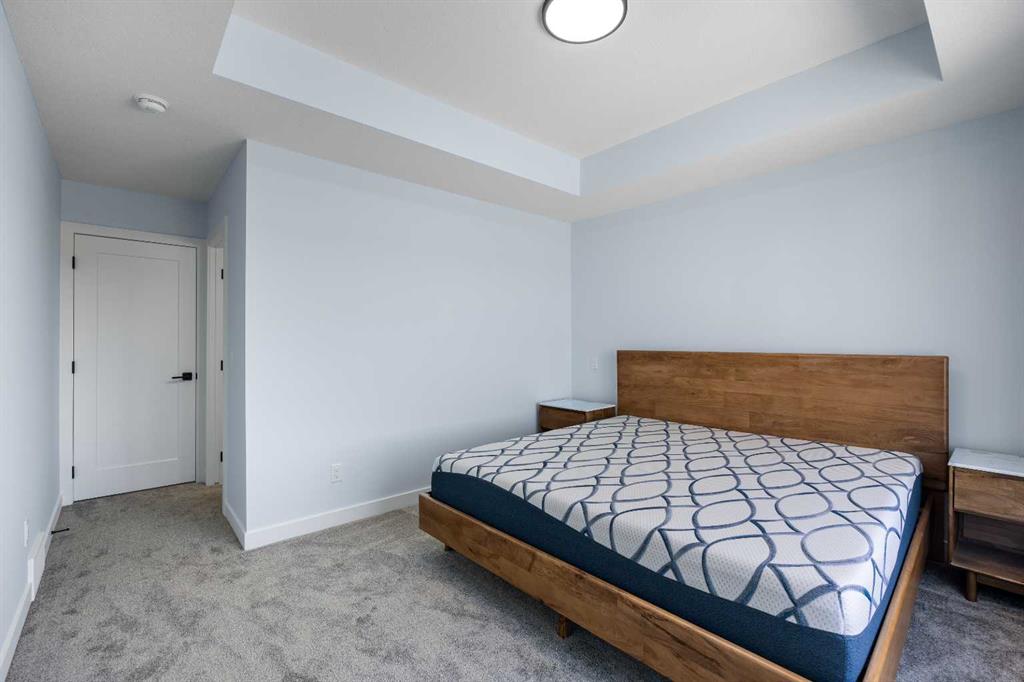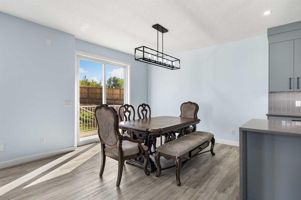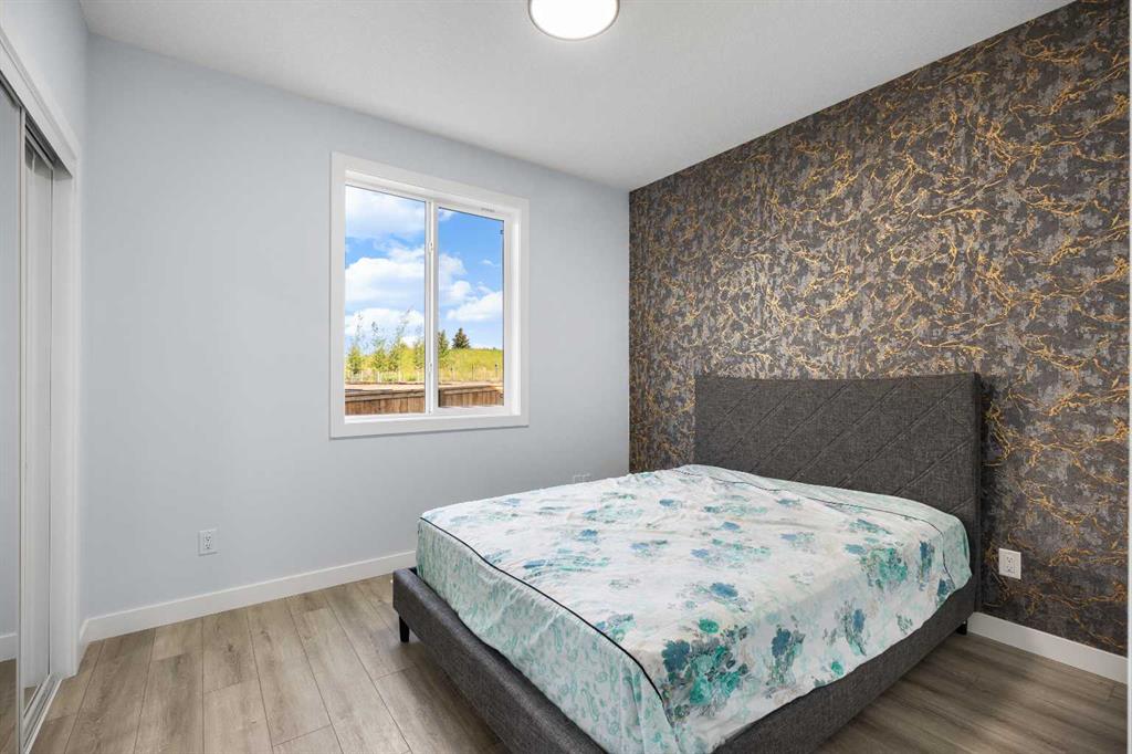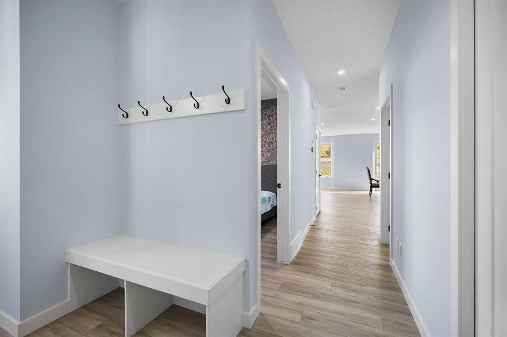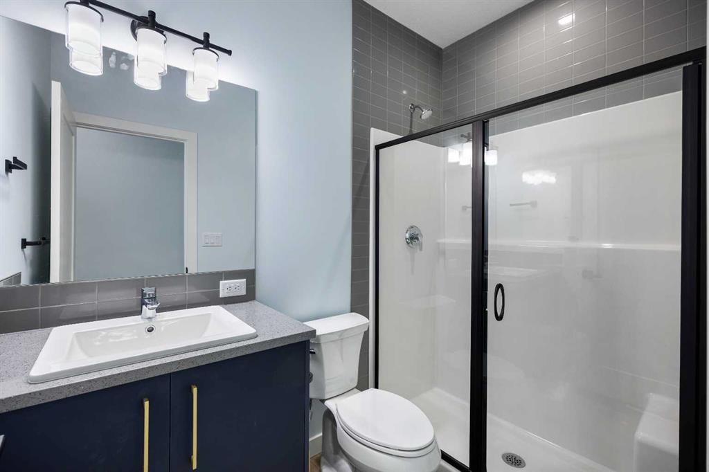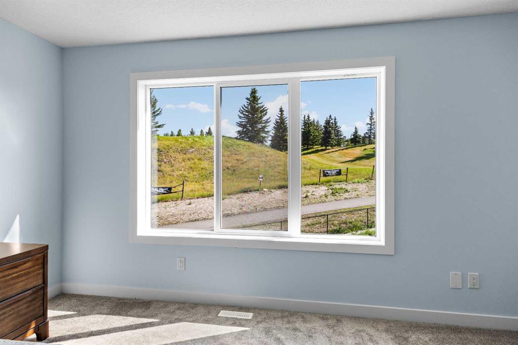 Adjacent to the kitchen, the south-facing Dining and Living Room are bathed in natural light. The Living Room is anchored by a floor-to-ceiling tile accented wall with a modern electric fireplace. From the Dining Room, sliding doors open to a deck overlooking the Lynx Ridge Golf Course - perfect for relaxing or hosting BBQs. A main level bedroom and a 3-piece bath with a walk-in shower offer flexibility for guests or multi-generational living. To complete this level is a well-organized mudroom off the double attached garage which includes custom built-in storage.