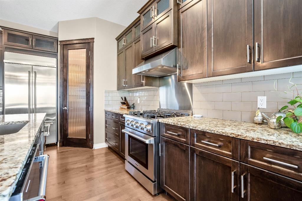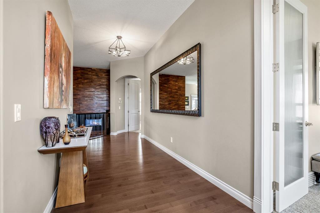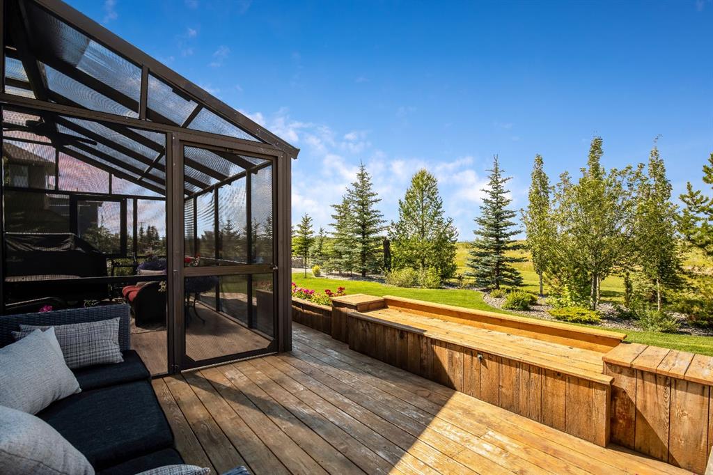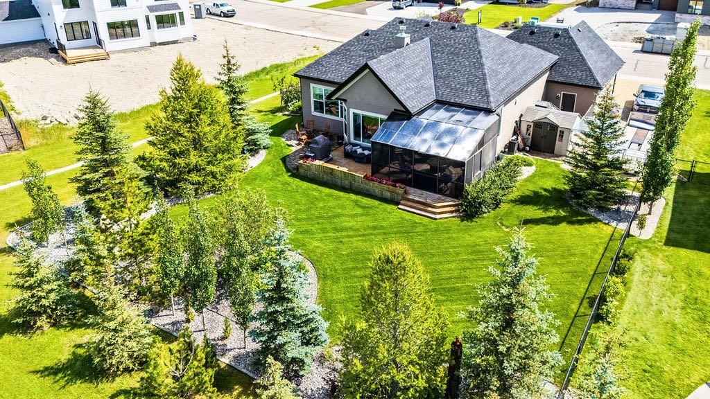 ** OPEN HOUSE, Saturday November 1st, 2-4 PM ** This fully finished bungalow in the prestigious community of Monterra combines elegance, comfort, and thoughtful upgrades on a beautifully landscaped quarter-acre lot with breathtaking north and west views. The oversized, heated triple garage offers a large commercial sink, 220 V power, and additional parking, while the outdoors offers an expansive sunroom, tiered deck with gas line and hot tub power, surrounded by your own forest of trees, creating the perfect private retreat. Inside, soaring 10’ ceilings, a grand spiral staircase, and a stunning two-way gas fireplace with custom walnut wall set the tone for the open, light-filled main floor, where a gourmet kitchen with granite countertops, walk-through pantry, premium Thor gas range, commercial KitchenAid refrigerator, built-in microwave/second oven, and reverse osmosis water filtration flows seamlessly into the dining and living areas with custom built-ins. The primary suite features double door entry, a walk-in closet, and a spa-inspired 5-piece ensuite with soaker tub, tiled shower, and dual sinks, while a front office or additional bedroom, full bath, and laundry/mudroom complete the level. The fully finished lower level offers a large recreation space with a virtually new pool table, wet bar, and games area, a cozy media room, three generous bedrooms, and a 5-piece bathroom. Recent upgrades include central air conditioning, a main floor home speaker system, a new roof with fascia and eavestroughs (2025), new front and garage doors, Hunter Douglas Silhouette blinds, and a dog run. Located on a quiet street just minutes from Cochrane and a short drive to Canmore and Banff, this exceptional home offers luxury, functionality, and the best of city and country living in one stunning package.