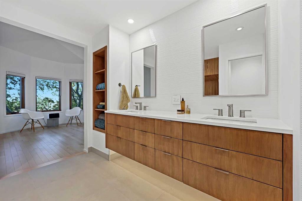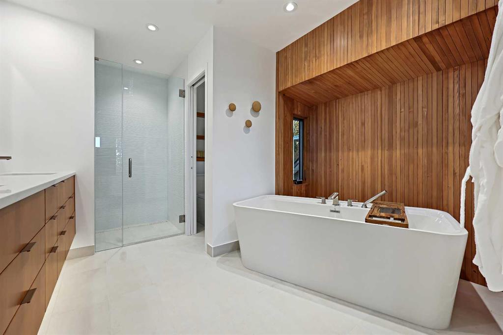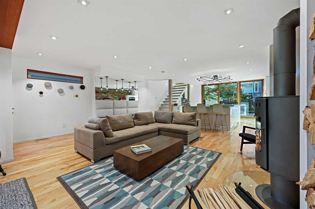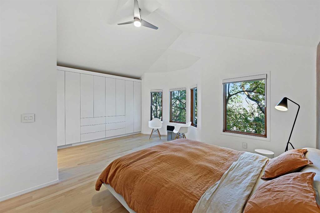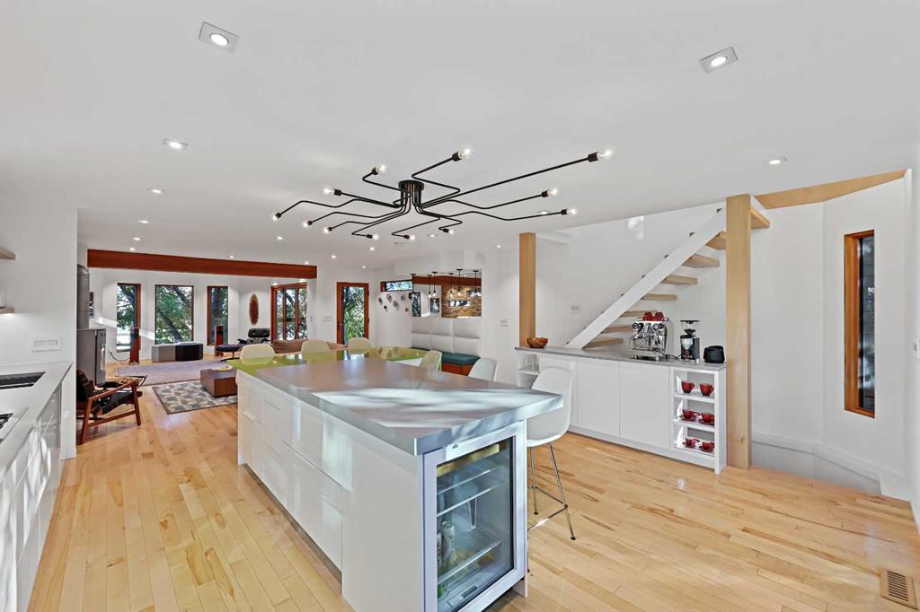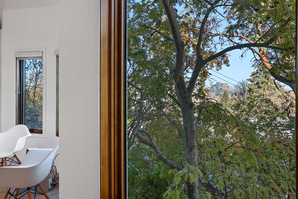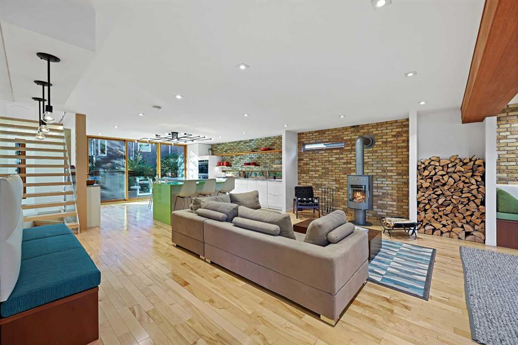 Welcome to 2211 19 Street SW, an extraordinary, fully redesigned and reimagined detached residence in the sought-after inner-city community of Richmond (formerly Knob Hill). This home embodies architectural precision, Scandinavian-inspired design, and exceptional craftsmanship. Gutted to the studs and rebuilt from the ground up, it’s a rare fusion of artistry and engineering that rivals Calgary’s finest custom homes. Step inside and be captivated by a wide bi-folding custom door framed by engineered metal header beams for flawless function and enduring strength. The open-concept main floor flows seamlessly beneath gleaming birch hardwood, centered around an engineered maple-and-metal floating staircase that defines the home’s light-filled, structural grace. Expansive south- and east-facing patio doors flood the interior with sunlight, while custom millwork and curated wood details create warmth and depth — from floating shelves with underlighting to Frank Lloyd Wright–inspired built-in bench seating with electronic drawers. The chef’s kitchen combines style and performance, featuring dual in-wall Fisher & Paykel ovens, double-stacked dishwashers, a five-burner flush-mounted cooktop with Miele downdraft venting, Sub-Zero undercounter fridges and freezer, beverage chiller, Insinkerator pro disposer, and on-demand hot water dispenser — all set within Silestone countertops imported from Spain. Every element was chosen for quality, innovation, and timeless appeal. A sculptural RAIS Scandinavian wood-burning fireplace, mounted on tempered glass, anchors the living space — an elegant centrepiece for cozy evenings or entertaining. Beyond, your professionally designed outdoor retreat awaits, featuring Indonesian hardwood decking, dual concrete lounge areas, a built-in gas fireplace, and architectural lighting that highlights every detail. Upstairs, the primary suite is a tranquil sanctuary with vaulted ceilings, downtown skyline views, and lush treetop privacy. A Swedish-imported feature wall and custom closet system elevate the sense of calm luxury. The ensuite evokes a Nordic spa, complete with heated floors, dual floating vanities, a wood-accented soaker tub, and a curb-less glass shower with dual heads. Two additional bedrooms — each with custom wardrobes, one with its own ensuite — plus a beautifully redesigned full bath and AEG European laundry system complete the upper level. Every system and surface has been meticulously updated: electrical, heating, and plumbing (2023–2025); triple-pane hardwood-matched windows; EIFS Armour woodpecker-proof stucco; and engineered structural beams throughout. The oversized double garage features spray-foam insulation, keeping upper rooms temperate, along with glass and aluminum doors. The custom-finished lower level includes under-stair organizers, an Indonesian hardwood corner bench, and designer lighting throughout. More than a renovation, this is a complete reinvention of light, space, and craftsmanship.
