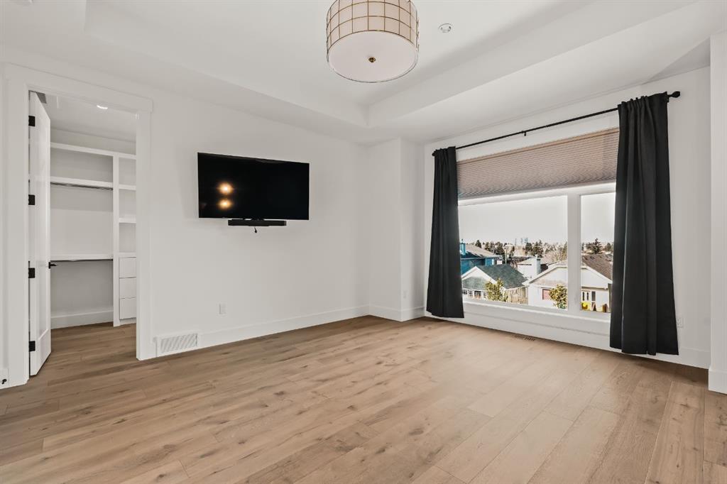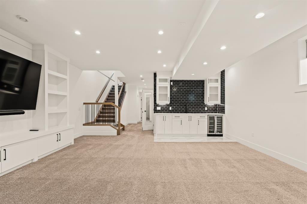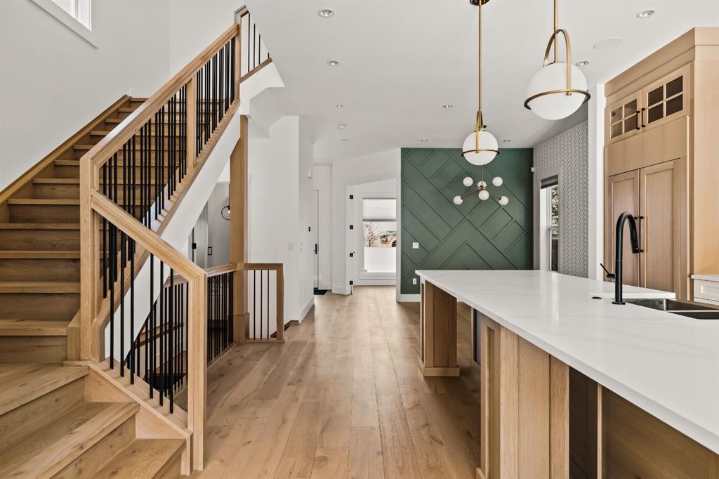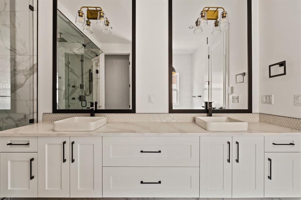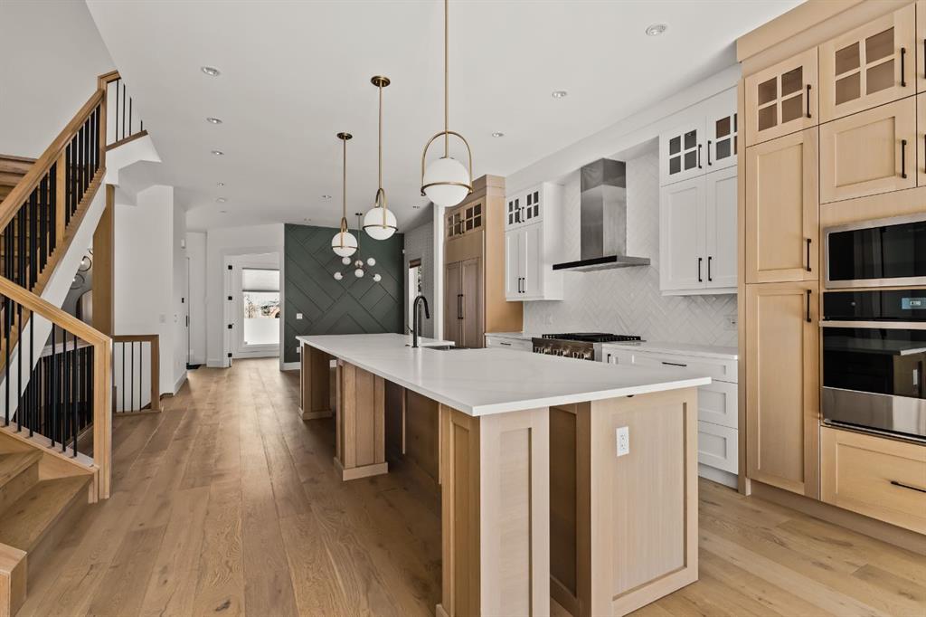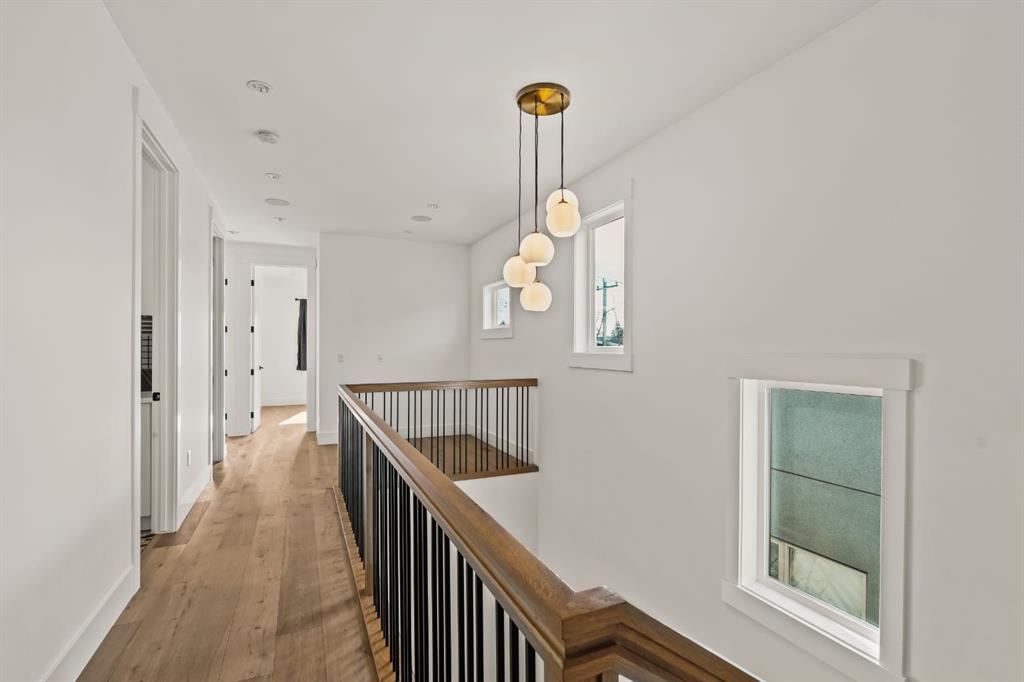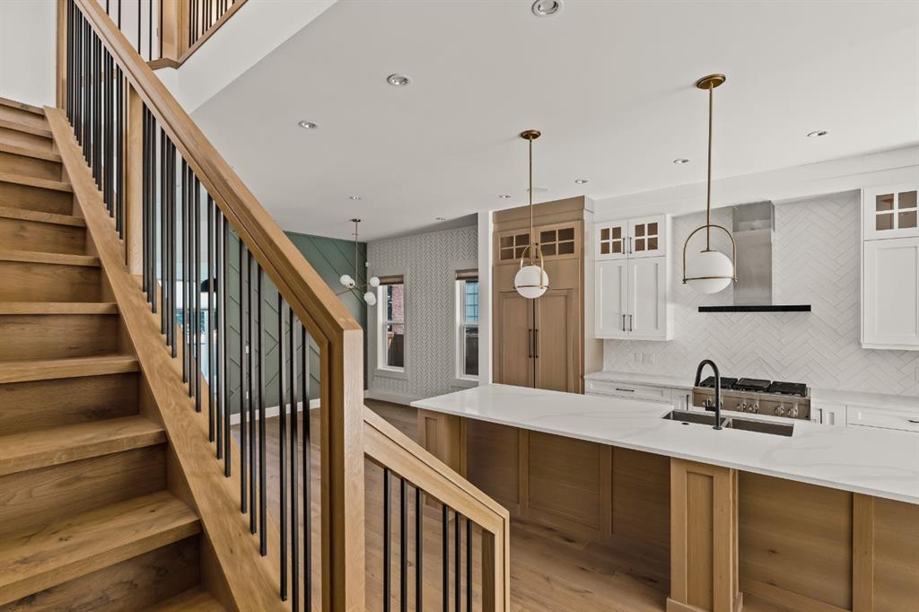 Welcome to this exceptional detached luxury infill offering over 3,500 sq.ft. of beautifully developed living space in the sought-after inner-city community of Richmond. Thoughtfully designed and impeccably finished, this residence sits on a rare 30’ wide lot and showcases timeless architecture paired with elevated modern design. The main level is defined by soaring 10-foot ceilings, wide plank hardwood flooring, and sophisticated custom millwork, creating an atmosphere that feels both refined and inviting. At the heart of the home is a stunning chef-inspired kitchen, complete with a large quartz island, striking two-tone custom cabinetry, and premium JennAir appliances. A well-appointed butler’s pantry adds both convenience and additional storage, making entertaining effortless. The elegant dining area seamlessly connects to the sun-filled great room, where a gas fireplace framed by custom built-ins creates a warm focal point for gatherings. Expansive dual sliding doors open to the south-facing backyard and patio, offering the perfect extension of the living space for outdoor entertaining and quiet summer evenings. A private main floor den provides an ideal setting for a home office or study, while a thoughtfully designed mudroom ensures everyday functionality. Upstairs, the serene primary retreat offers a true sense of escape, complete with a spa-inspired ensuite featuring heated floors, a fully tiled walk-in shower, deep soaker tub, and elegant dual vanities. Two additional bedrooms, a beautifully finished main bath, convenient upper laundry, and a versatile loft area complete the upper level. The fully developed lower level is designed with entertaining in mind, featuring a spacious recreation room with custom built-in media storage, a wet bar with wine cooler, and ample room to host family and friends. An additional bedroom, full bathroom, and flexible bonus room—perfect as a home gym, studio, or office—enhance the home’s functionality. Additional features include Hunter Douglas blinds, integrated smart home lighting and thermostat controls, central air conditioning, HRV system, high-efficiency furnace, and upgraded mechanical systems. ALL TV's, Mounts and SONOS Soundbars INCLUDED. The property is completed by a fully insulated and heated detached garage and paved rear lane. Ideally located on a quiet street just minutes from Marda Loop, River Park, top-rated schools, shopping, and downtown, this beautifully crafted home delivers the perfect balance of luxury, comfort, and inner-city convenience. Immediate possession available!