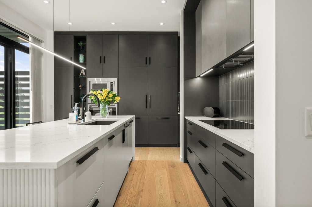 A modern masterpiece overlooking The Winston Golf Club! Clean lines, big windows + captivating views wrapped in a sleek architectural design. This nearly brand new, custom walk-out haven by West Ridge Fine Homes will impress throughout every level. Take in the nearly 3,200 sqft of finished interior space along with two additional exterior patios. Calling all entertainers: the amalgamated kitchen + living areas are designed for mingling, but built for memories. Enjoy the warm wood flooring, open + effortless layout, clear sight lines, tiled fireplace feature wall, picturesque windows + open riser stairs. Sit up to the sexy, curved quartz counter with extended waterfall feature. Moody two tone cabinetry along with drop-in range, stylish backsplash, exposed shelving and fully equipped butler's area discreetly positioned behind. Sit down with the entire family in the designated dining area - fully capable to host 10-12 guests. Head out to the extended patio to unwind with a beverage in hand, while tending to the BBQ and appreciating those private view points. Peer out to holes 16, 17 + 18 on the golf course or venture out the back gate to the off-leash dog trails. Get some quality work done in the large front office, providing views out front to watch for any arriving colleagues or clients. Up the stairs you will find the primary retreat complete with space for a king bed, a walk-in closet and spa inspired 5 piece bathroom consisting of a walk-in shower, soaker tub and dual vanities. Two other spacious bedrooms along with a sophisticated guest bathroom again smartly showcasing dual vanities. Don't miss the upper level laundry room along with a flex space, capable of providing another office or workout area. Let's finish up down on the walk-out level, which also has access to the double garage. This is a perfect area for movie nights, to build out that home gym or even host guests as a potential 4th bedroom. Rounding out the additional upgrades are air conditioning, full landscaping, recently installed fencing along with an entire window treatment package of $60K! This is your opportunity to live within nature in the heart of the city. This section of the community has seen many changes in recent years including a big investment by the city of Calgary into Midfield Heights, a 24 acre mixed use project off 16th Avenue. Secondly, The Winston Golf Club is full steam ahead on their brand new clubhouse project, which will provide an amazing $14M facility by summer of 2026. An irreplaceable location where glamorous meets the green and one where it feels like you can tee off from the backyard.