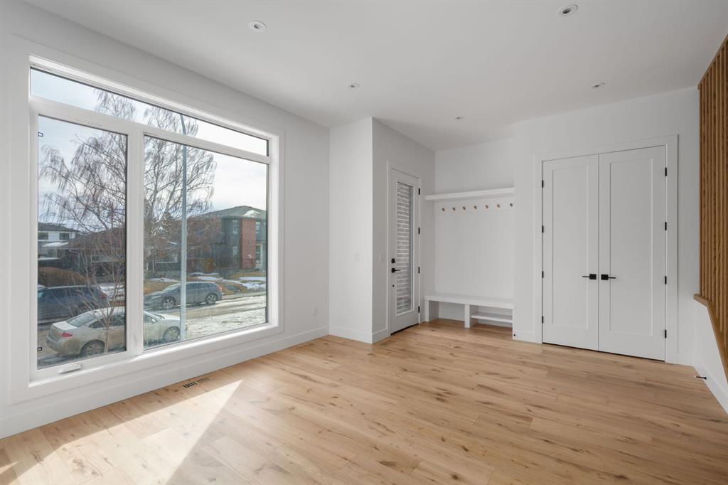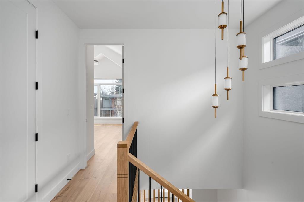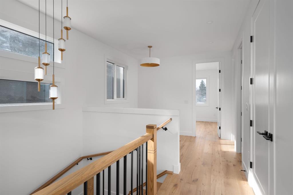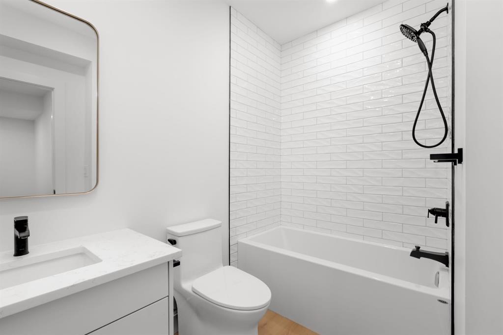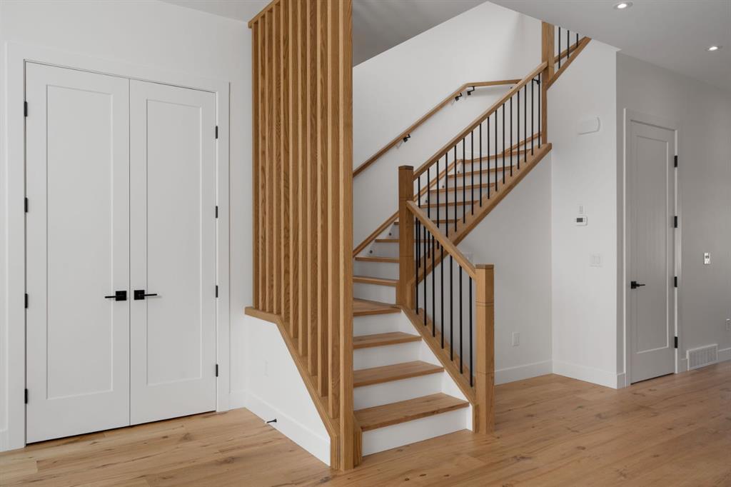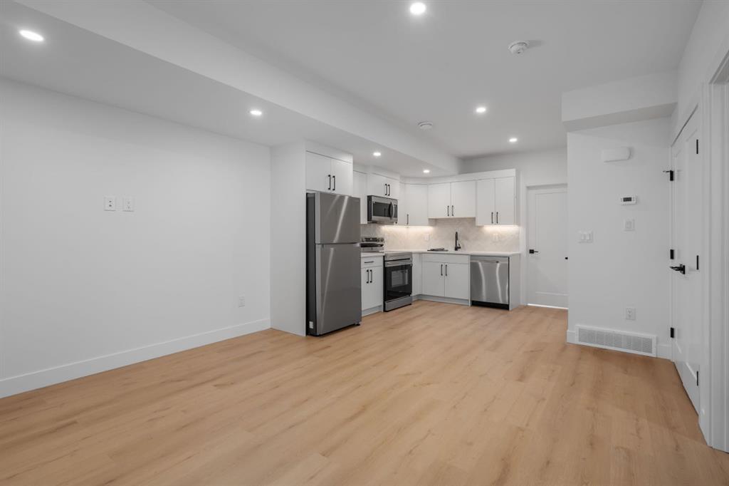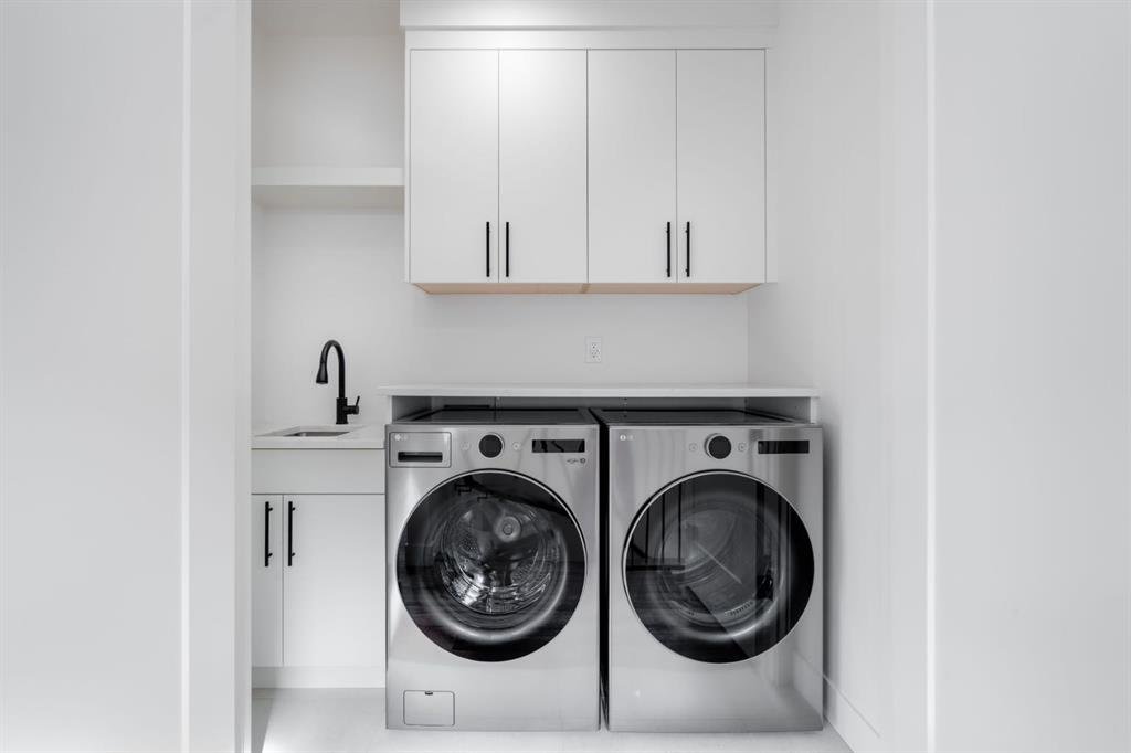 | Show Suite Open House Saturday March 14th and Sunday March 15th from 12:00pm-3:30pm | Welcome to The Killarney Collection in SW Calgary—thoughtfully crafted on a quiet street, this fully upgraded duplex infill offers a refined balance of scale, texture, and modern comfort. From the moment you arrive, the home makes a striking first impression with its sleek, contemporary exterior, pairing oversized triple-pane windows for abundant natural light with warm natural tones of true brick detailing and stucco accenting stands out. Inside, 10-foot main floor ceilings create a grand sense of arrival, setting the tone for the interior designer–curated colour palette carried throughout the home. Every detail has been intentionally explored, with the heart of the main floor anchored by a chef-inspired gourmet kitchen. Featuring a premium Bosch appliance package, fully custom-painted cabinetry, and an oversized waterfall granite island, the space effortlessly blends luxury with everyday functionality. A dedicated central dining off the kitchen offers a warm setting for gatherings, while the front living room provides a more intimate retreat, both areas are anchored by the full feature-wall gas fireplace—perfect for evenings spent unwinding. Thoughtful storage solutions are seamlessly integrated, including built-ins at the entry and a fully custom mudroom at the rear, ensuring every inch of space is maximized. Ascending to the upper level, subtle design moments continue to impress, with a full wood feature wall, custom stair lighting, and luxury wide-plank hardwood flooring flowing continuously throughout both the main and upper levels for a seamless transition.The oversized primary bedroom is a true sanctuary, showcasing a vaulted and peaked ceiling design with expansive windows that welcome morning light. The spa-inspired ensuite features a dual vanity, an expansive full-tile shower, and a calming, private retreat. Two additional bedrooms offer generous proportions, each complete with custom closet built-ins. The upper-level laundry room maintains the home’s commitment to efficiency and design, offering full cabinetry, a folding counter, side-by-side washer and dryer, and a laundry sink. A versatile work-from-home alcove completes the upper floor, easily functioning as a den or secondary living space.The lower level further extends the home’s flexibility with an oversized 2-bedroom, 1-bath legal suite (900+SQFT), centered around a spacious open kitchen—ideal for rental income, guests, or multi-generational living. A separate full laundry room, understair storage, and built-ins throughout each closet to ensure the same level of thoughtful design continues below.Perfectly positioned close to inner-city Calgary, recreation centres, shopping, and public transit, this Killarney residence offers a timeless blend of form and function—designed to live beautifully today and adapt effortlessly for tomorrow.